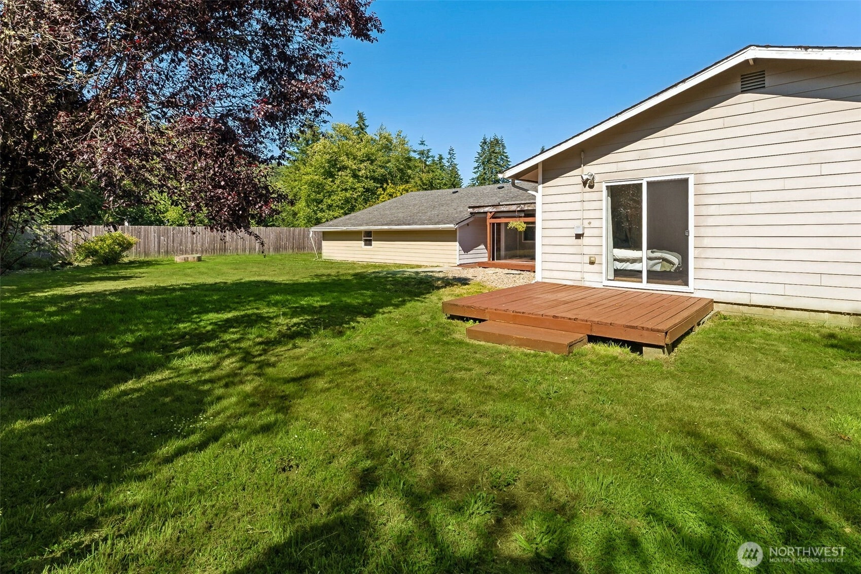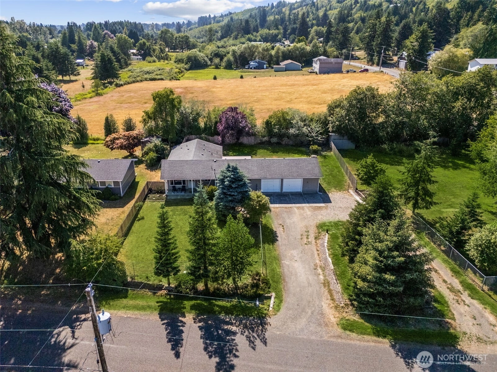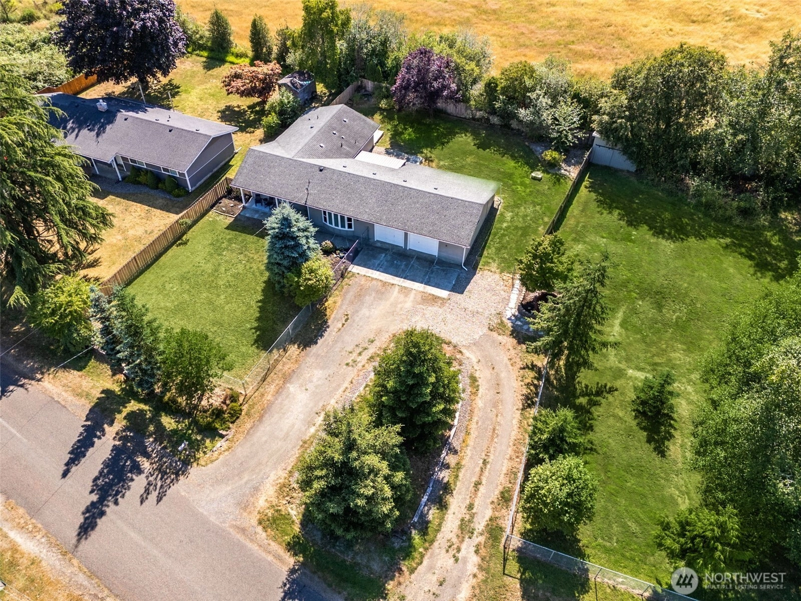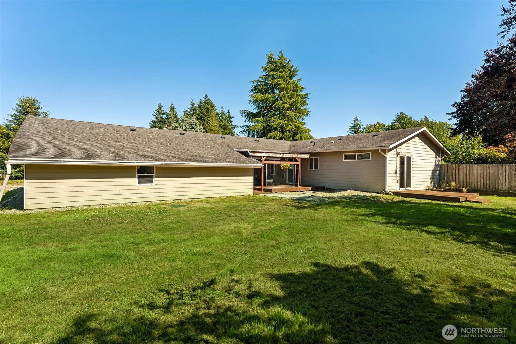 Welcome to this charming Montesano rambler in a desirable neighborhood, situated on a spacious double lot just under an acre. This single-story home features 2 bathrooms & 2–3 bedrooms, with a flexible floor plan that includes a fully finished oversized bonus room, perfect as a third bedroom, game room, media space, or hobby area. The open kitchen offers an island with bar seating, ideal for entertaining. Recent updates include fresh interior paint, a newly stained deck, and bathroom improvements. You'll find a 2-car garage with a separate storage room, as well as an outbuilding suited for a workshop, studio, or extra storage. Located near beautiful Lake Sylvia, hiking trails, and just a short drive to coastal beaches.