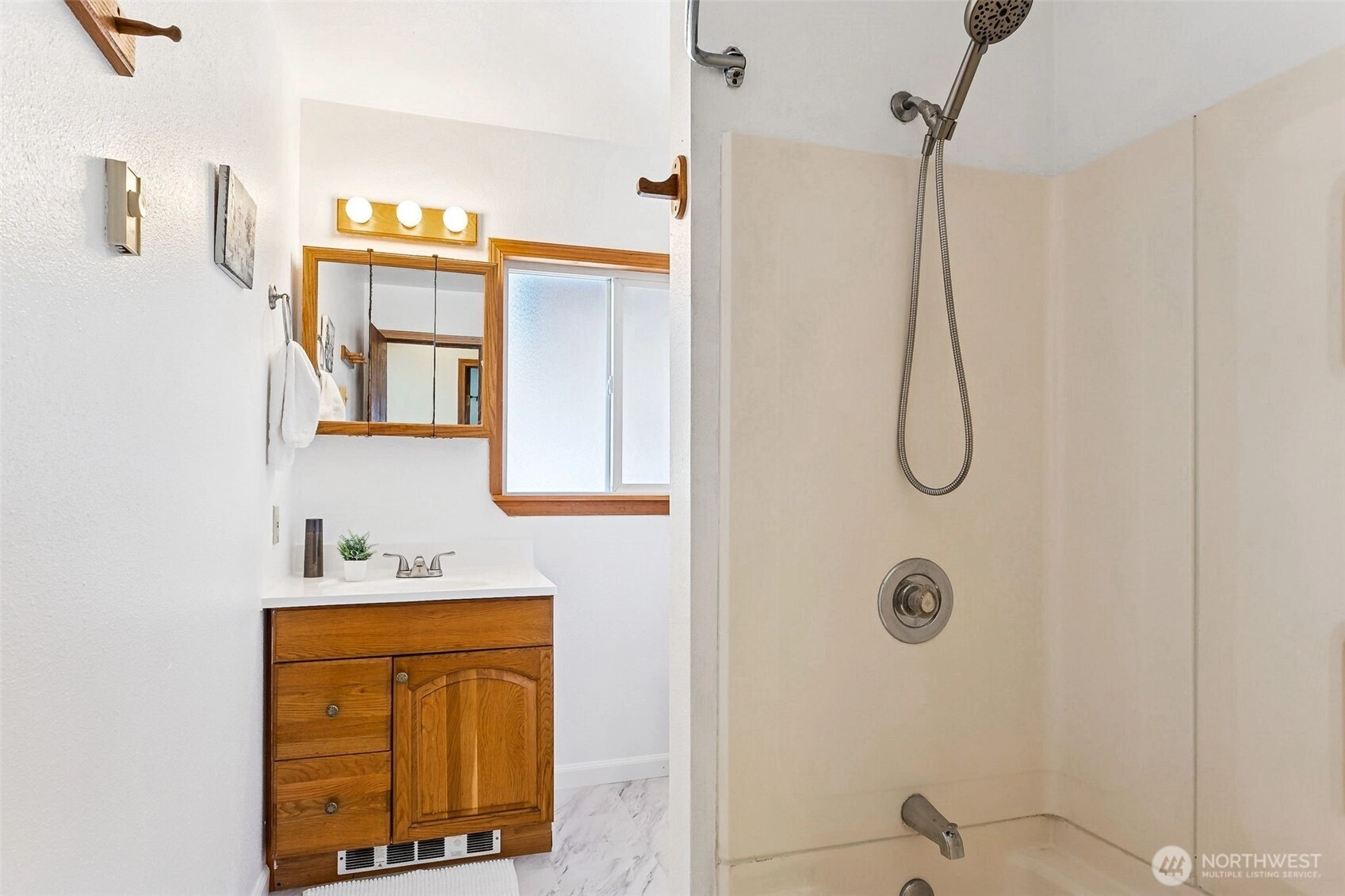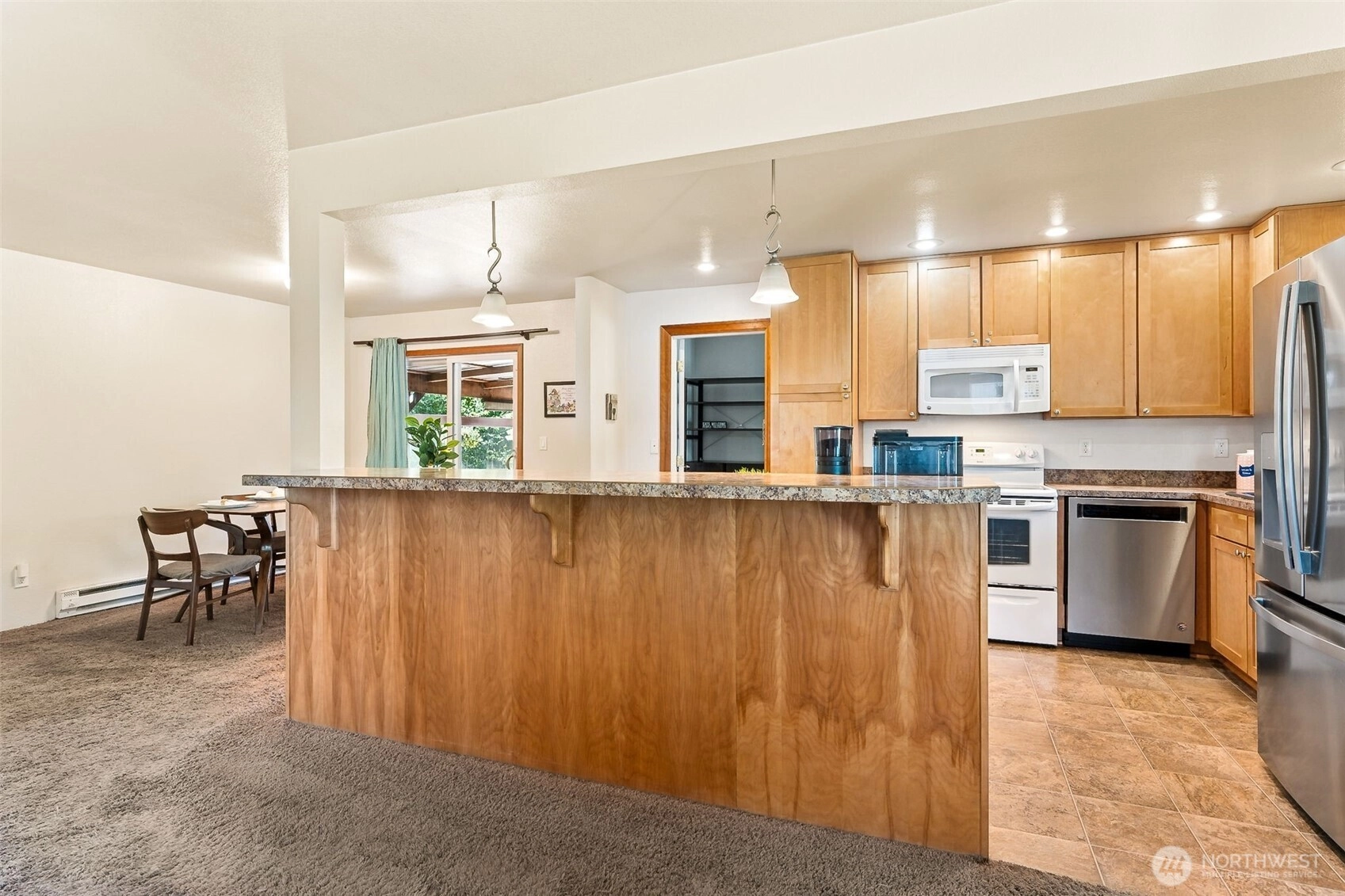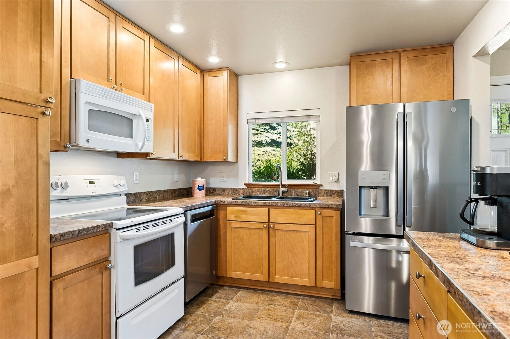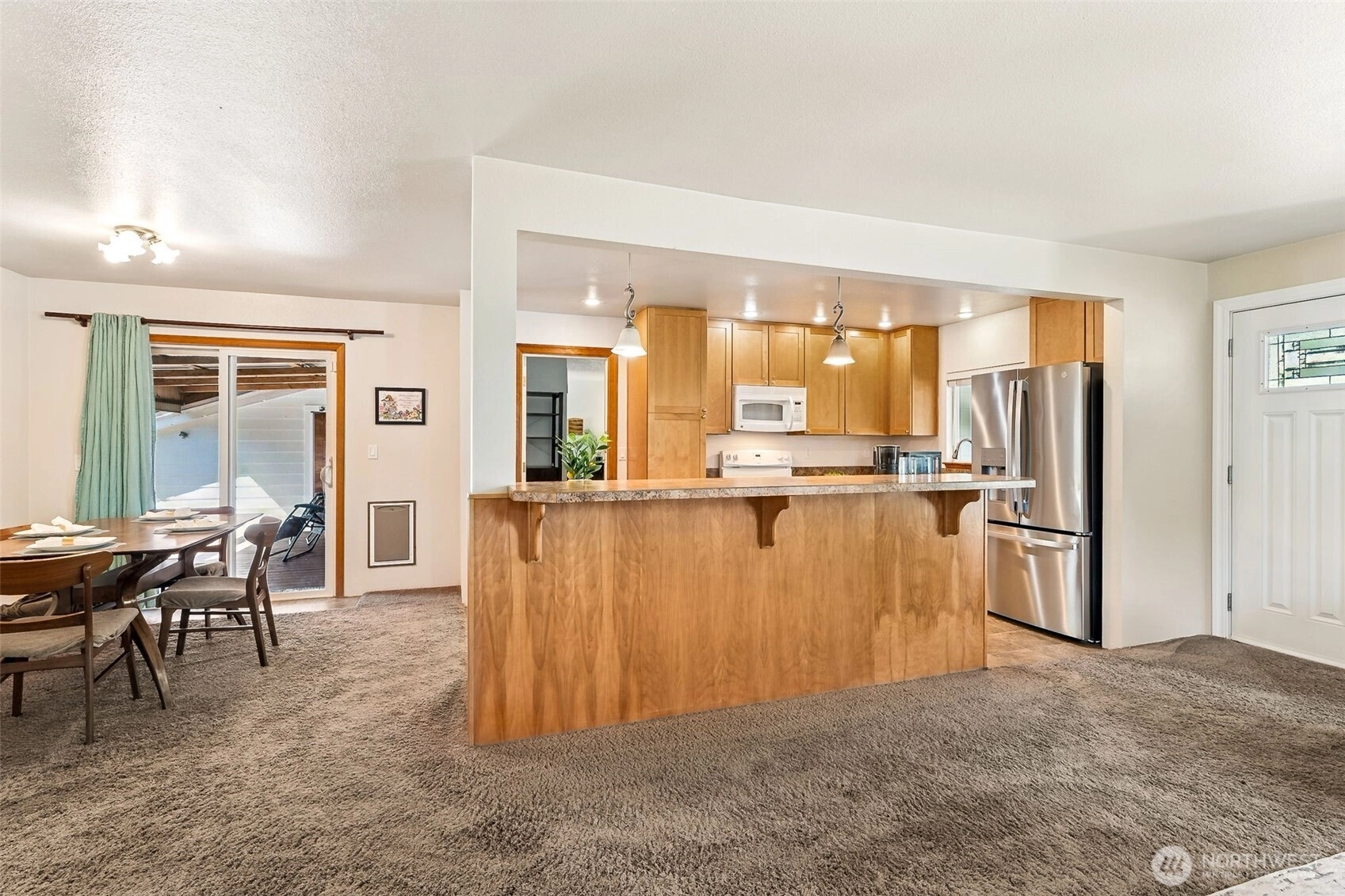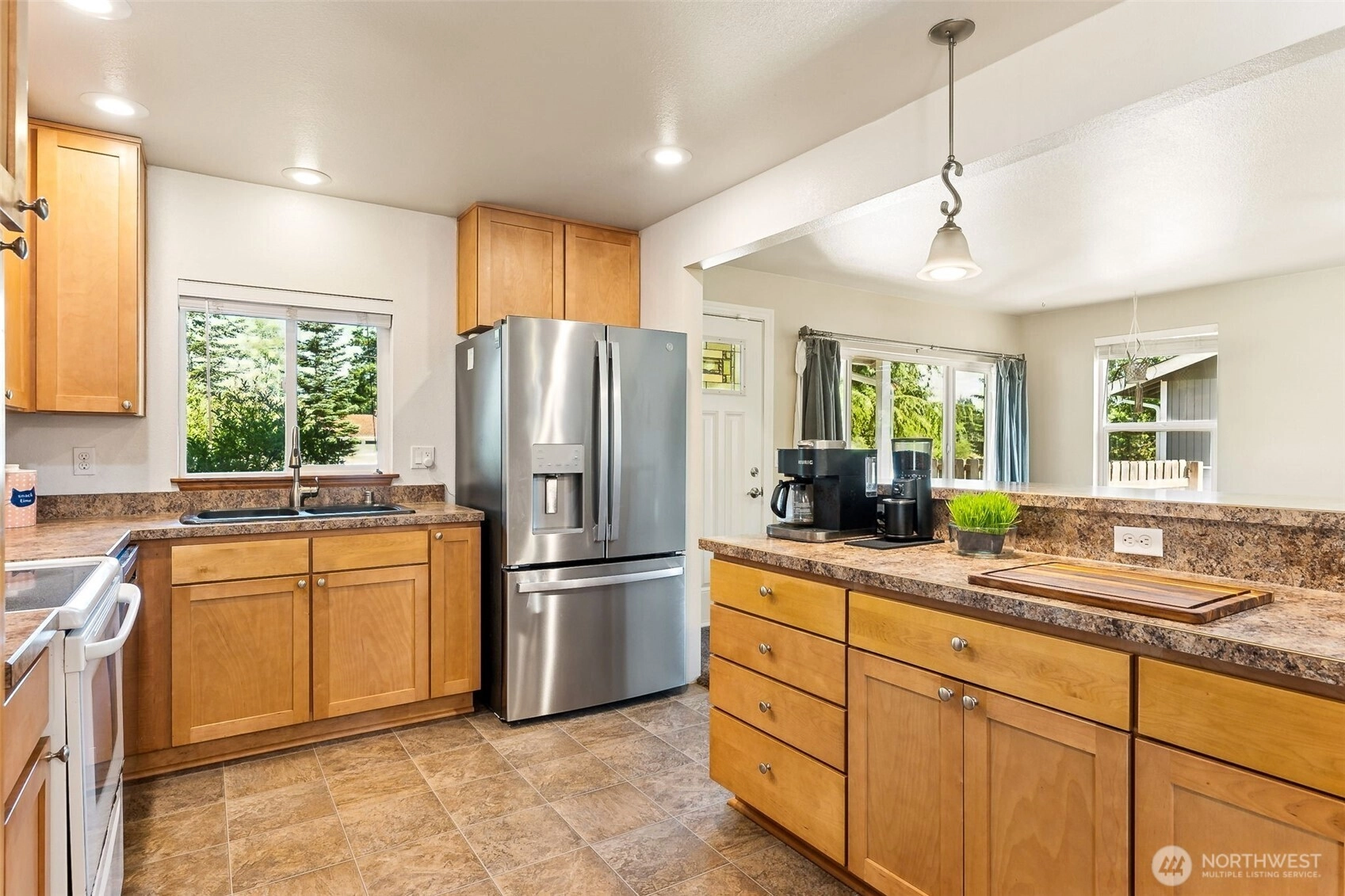 Welcome to this charming Montesano rambler in a desirable neighborhood, situated on a spacious double lot just under an acre. This single-story home features 2 bathrooms & 2–3 bedrooms, with a flexible floor plan that includes a fully finished oversized bonus room, perfect as a third bedroom, game room, media space, or hobby area. The open kitchen offers an island with bar seating, ideal for entertaining. Recent updates include fresh interior paint, a newly stained deck, and bathroom improvements. You'll find a 2-car garage with a separate storage room, as well as an outbuilding suited for a workshop, studio, or extra storage. Located near beautiful Lake Sylvia, hiking trails, and just a short drive to coastal beaches.