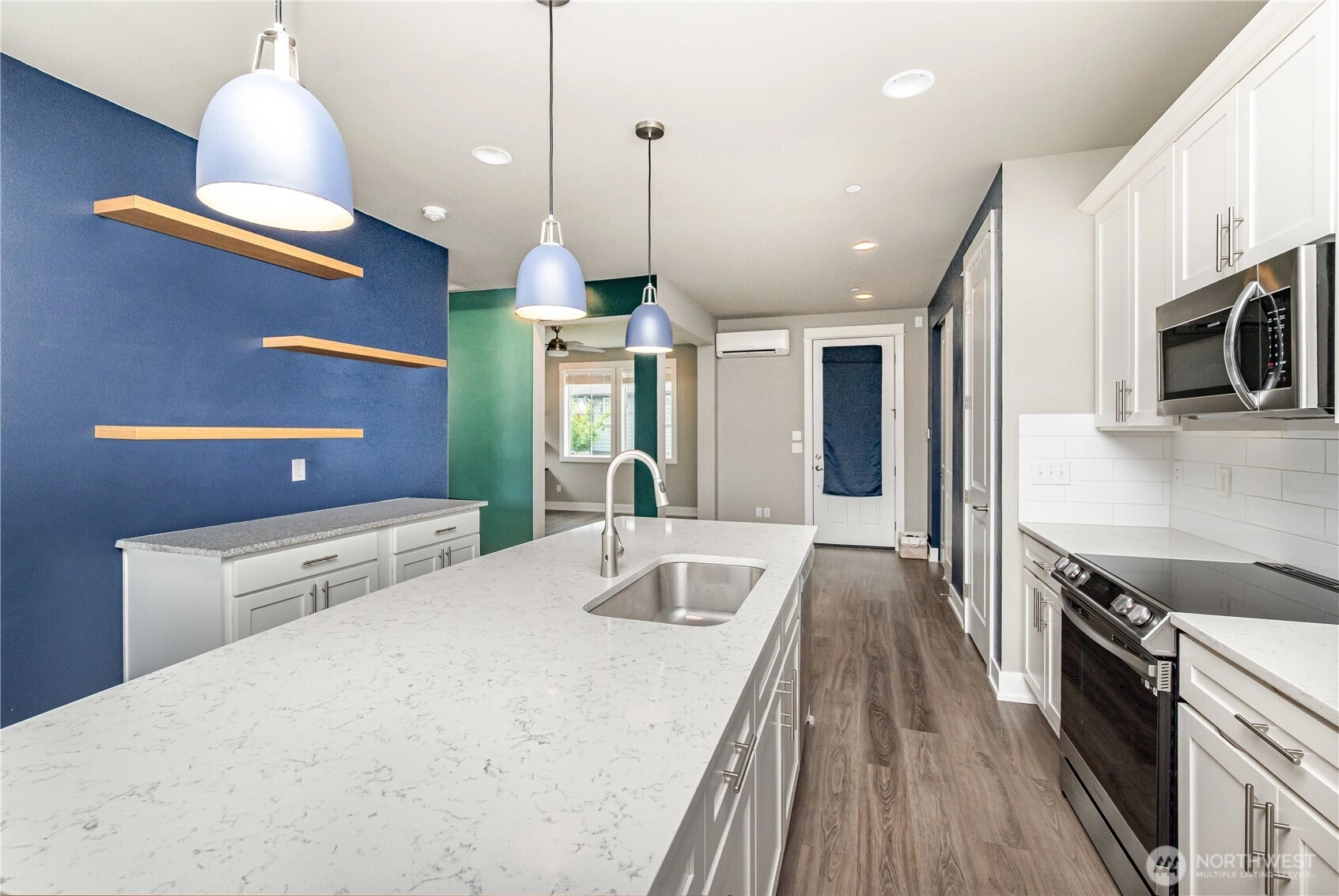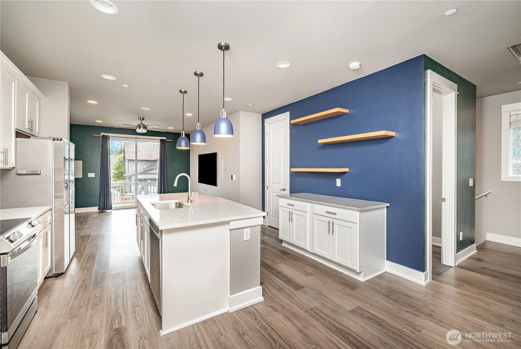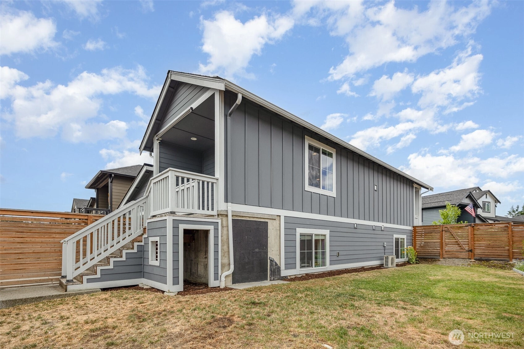 Welcome to this stylish 3-bedroom, 2.5-bath home in the desirable Tehaleh community, thoughtfully crafted by Azure NW. Feeling like new, it boasts a smart layout, quartz countertops, and large windows that flood the home with light. Enjoy built-in shelving throughout, including a 3-desk office setup, a home theater with in-wall speakers, and a covered back patio with a built-in playhouse/storage space. The fully fenced yard has locking gates, and the extra-wide driveway provides a second parking spot. Nestled in a vibrant community with scenic trails and parks—and located in the sought-after Sumner School District. This home offers the perfect blend of comfort, charm, and modern convenience. Don’t miss your chance at the Tehaleh lifestyle!