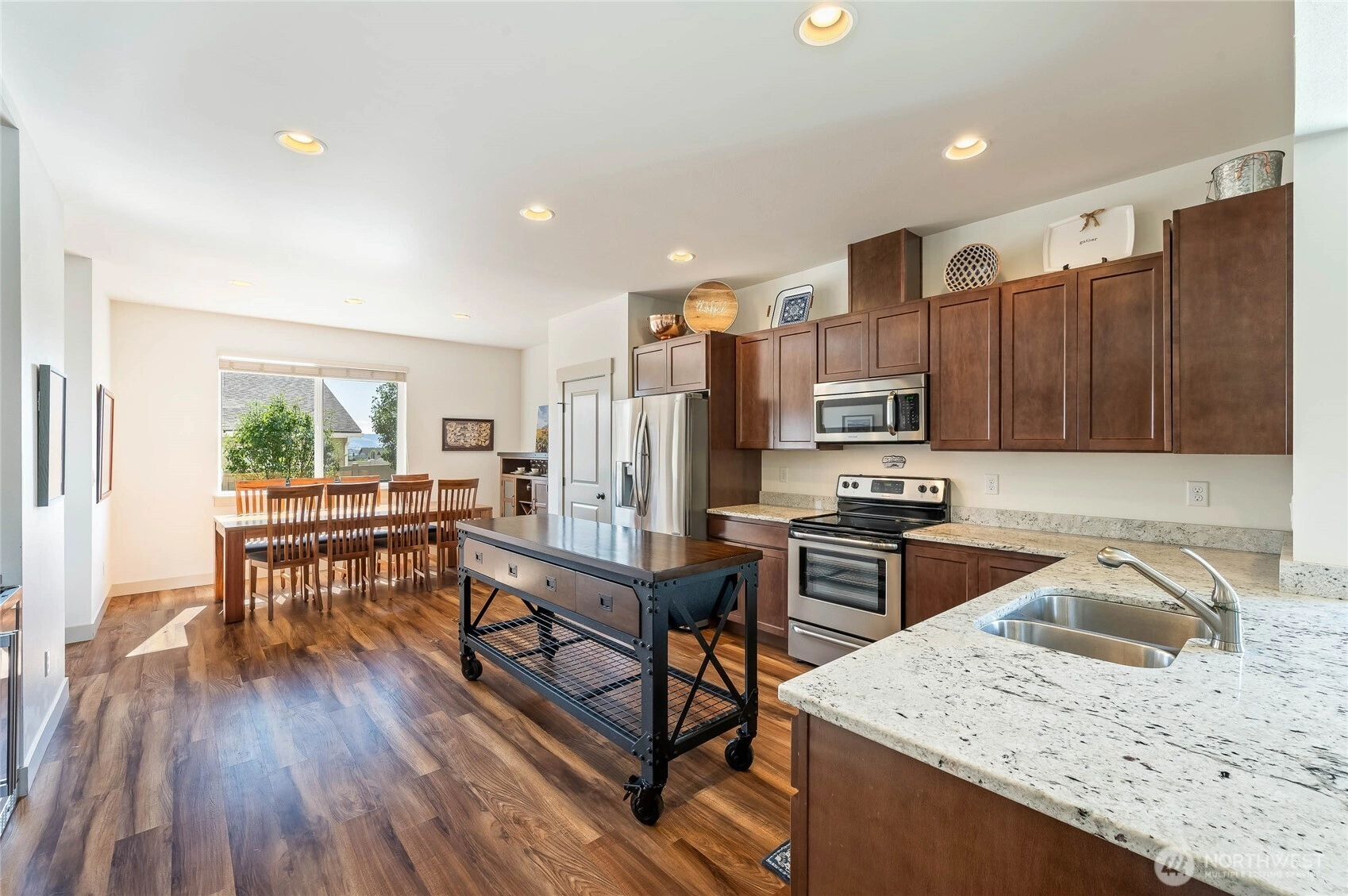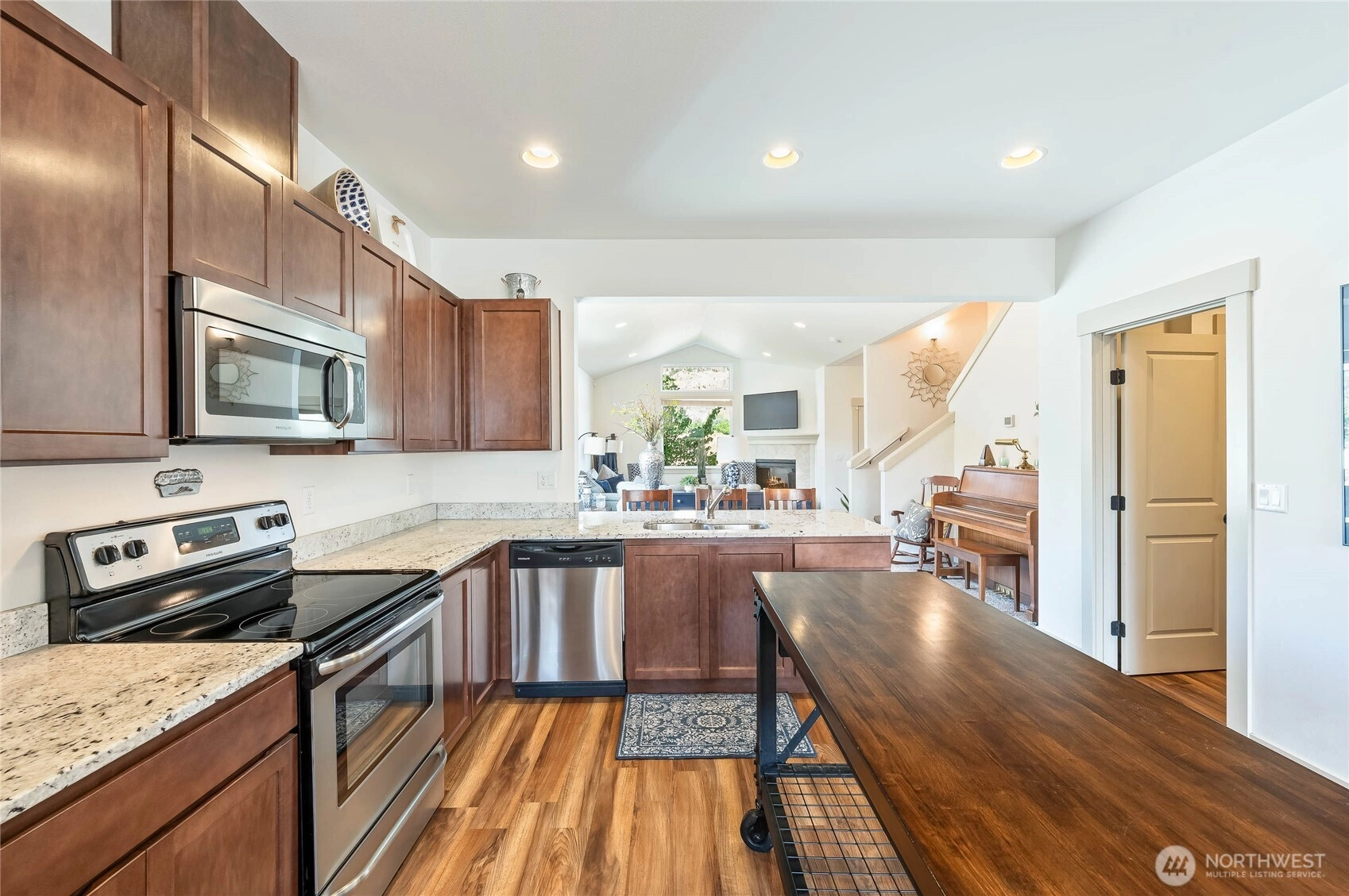 Nestled on a quiet corner lot in Wenatchee’s coveted south end, this 4-bed, 2.5-bath home offers 2,213 sq ft of light-filled living space. Vaulted ceilings, large windows, and an open-concept layout create an airy feel throughout. The kitchen features granite counters, stainless steel appliances, and a spacious island—perfect for entertaining. The main-level primary suite adds comfort and convenience. Cozy up by the fireplace or relax on the patio with views of surrounding hills. Built in 2017 and move-in ready with a fully fenced backyard and 2-car garage.