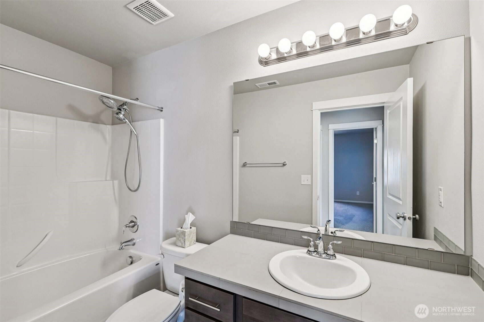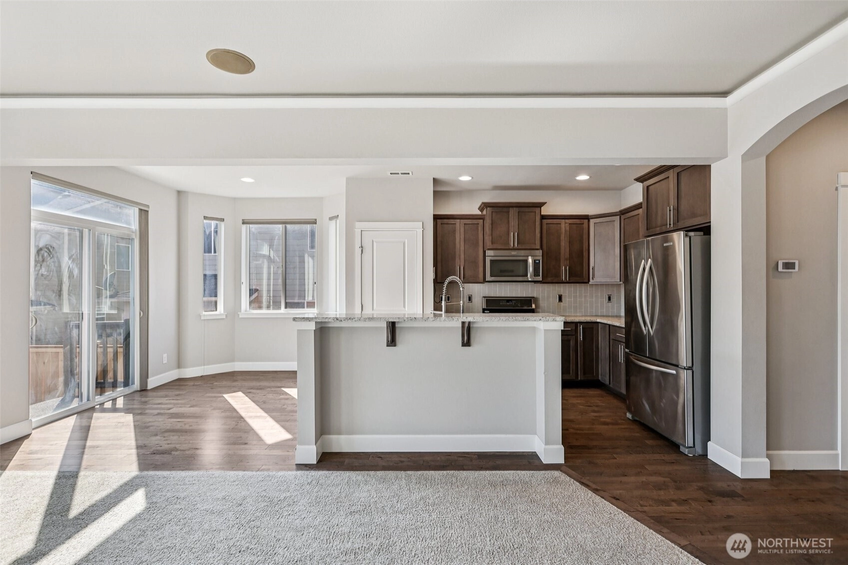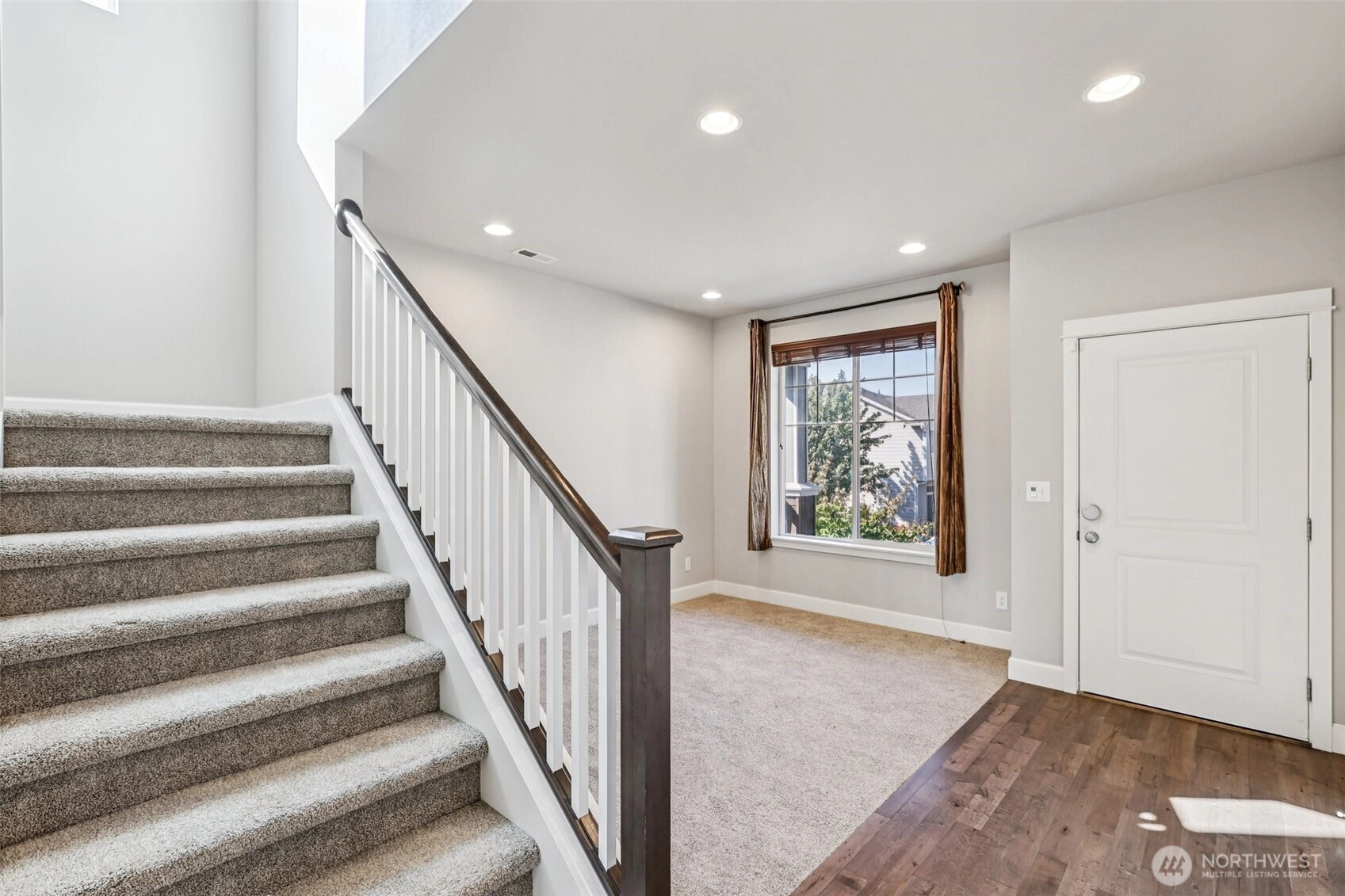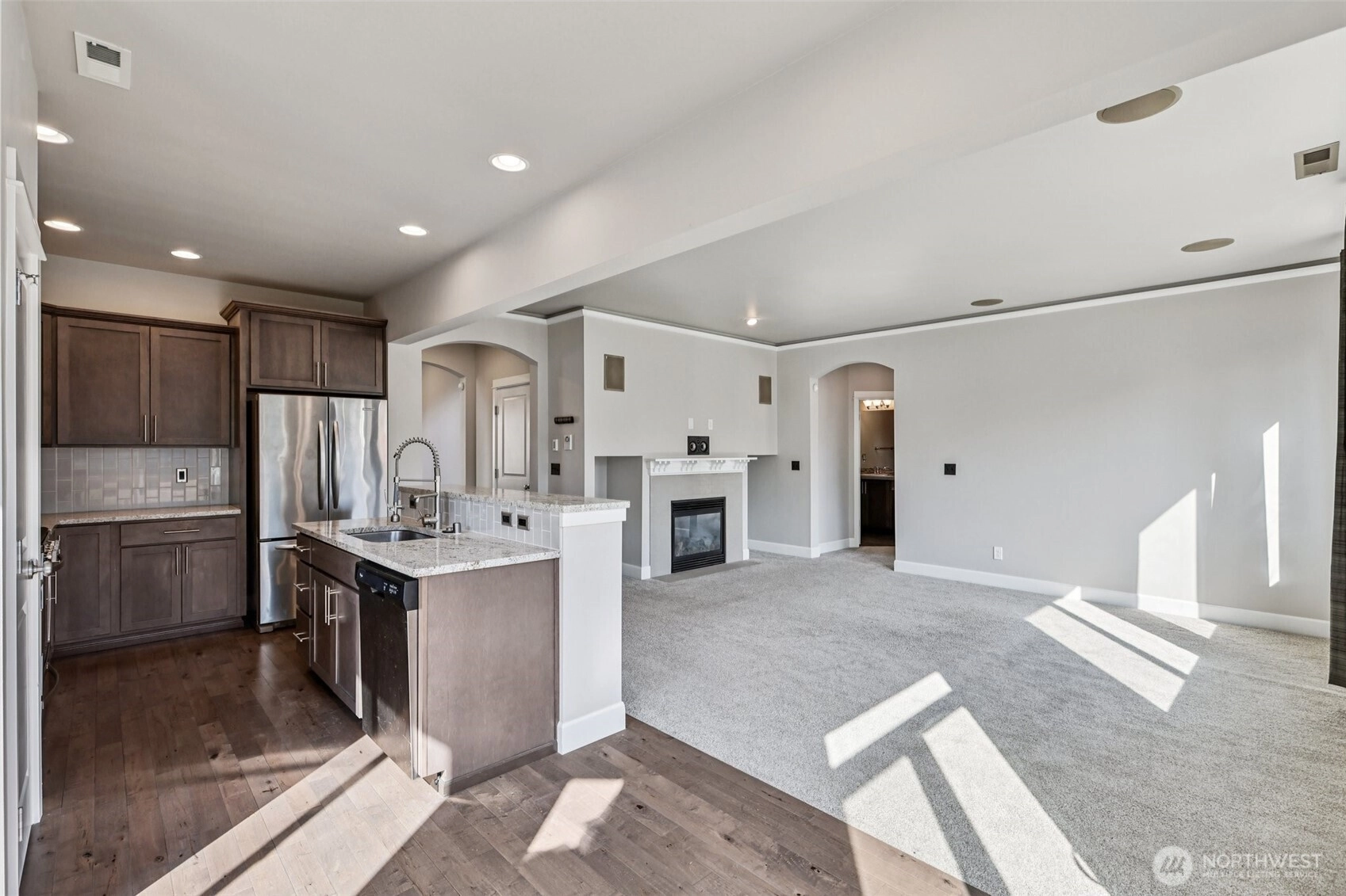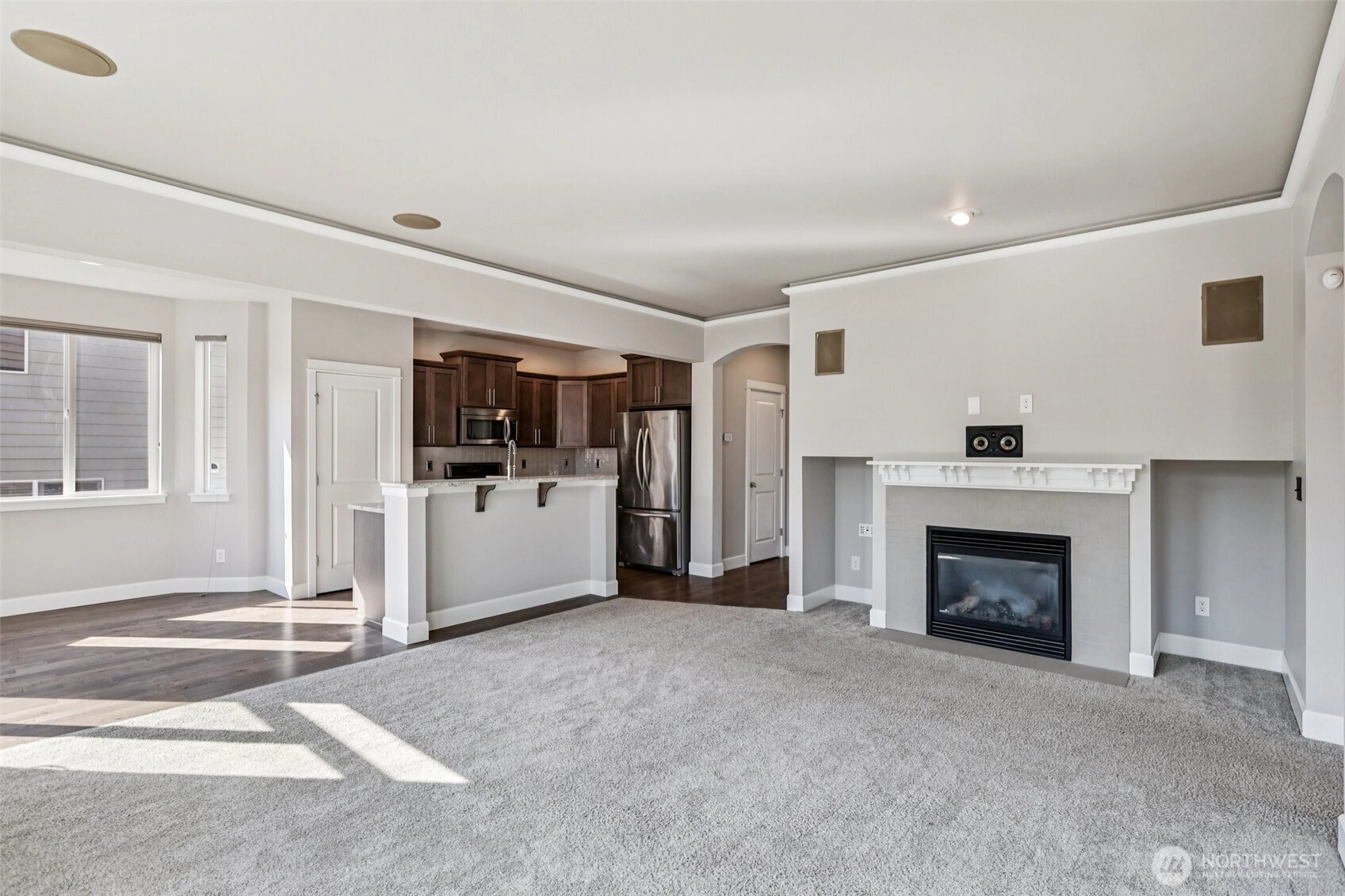 This Star Lake neighborhood home of Madeline Meadows offers a refined blend of comfort and style with fresh finishes and a luxurious feel. Crown molding adds a touch of elegance throughout, while the open-concept living room and kitchen create an inviting setting perfect for gatherings and entertaining. The kitchen features stainless steel appliances and a functional layout ideal for any home chef. Immerse yourself in your own home theater-ready speaker system on the main floor before heading upstairs, where you'll find the spacious primary suite that boasts a luxurious 5-piece ensuite bath along with two other bedrooms and a full bathroom. Don't miss the newly installed fence!