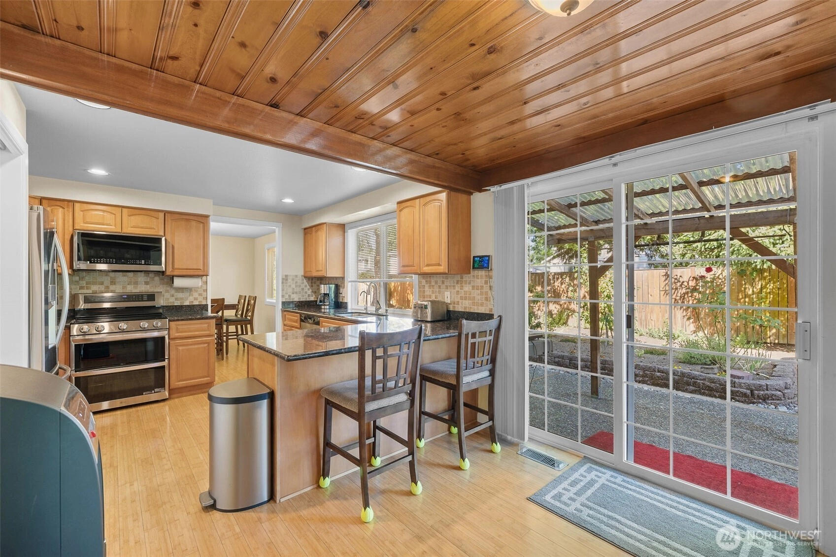$60,000 Price Reduction! Welcome to this beautifully updated home offering privacy & convenience in a tranquil neighborhood minutes from I-405, Totem Lake, and Juanita Beach. Features 2290 sq ft w/4 spacious BR and 2 BA upstairs, including a Master w/French doors separating sleep/work areas. Remodeled 5-piece bath with soaking tub, shower, and walk-in closet. Main floor offers chef’s kitchen w/SS appliances, granite counters, tile backsplash, and pantry, plus formal dining, powder bath, vaulted living room, and cozy family room w/bay window, and fireplace. Upgrades include remodeled kitchen and baths, new hardwood floors, carpet, entrance door, windows, and fresh paint. A/C. Fully fenced backyard w/covered patio, garden, and fruit trees.