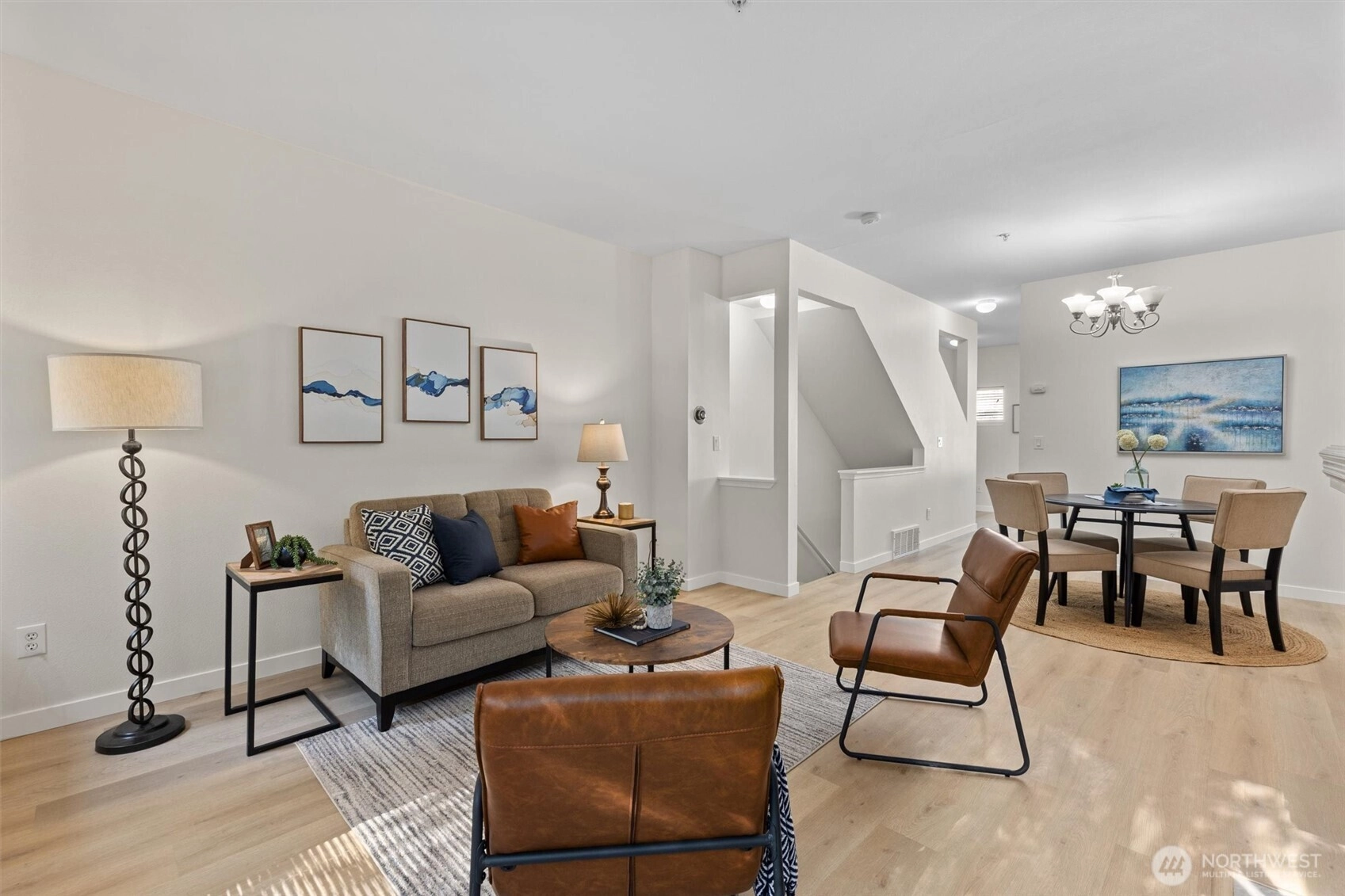 Welcome to this impeccably maintained townhouse located in the highly desirable Rivendale community in Mill Creek. This stunning home offers a perfect blend of comfort, style, and convenience. Step inside to discover a spacious, light-filled interior featuring a generous living room with a cozy fireplace—ideal for relaxing or entertaining. The huge kitchen is a true highlight, boasting ample counter space, abundant cabinetry, and a large eating area perfect for gatherings. Upstairs, you’ll find well-appointed bedrooms and baths designed for modern living. Move-in ready. Moments away from scenic parks, top-rated schools, and the vibrant Mill Creek Town Center, offering dining, shopping, and entertainment options.