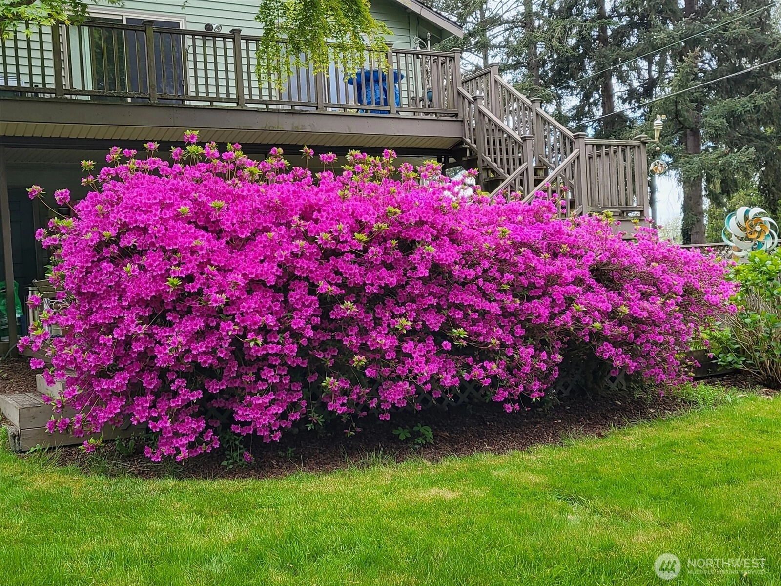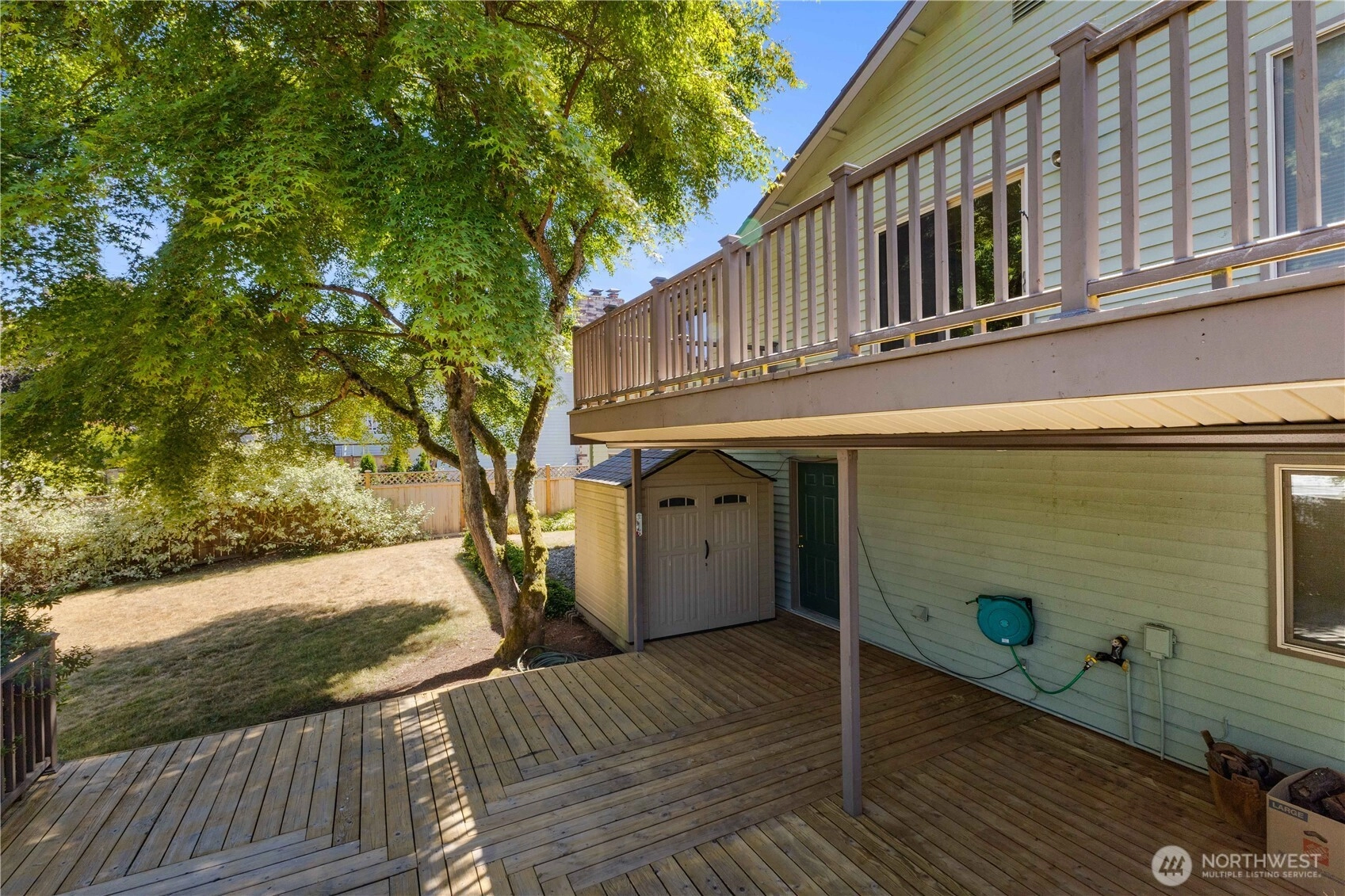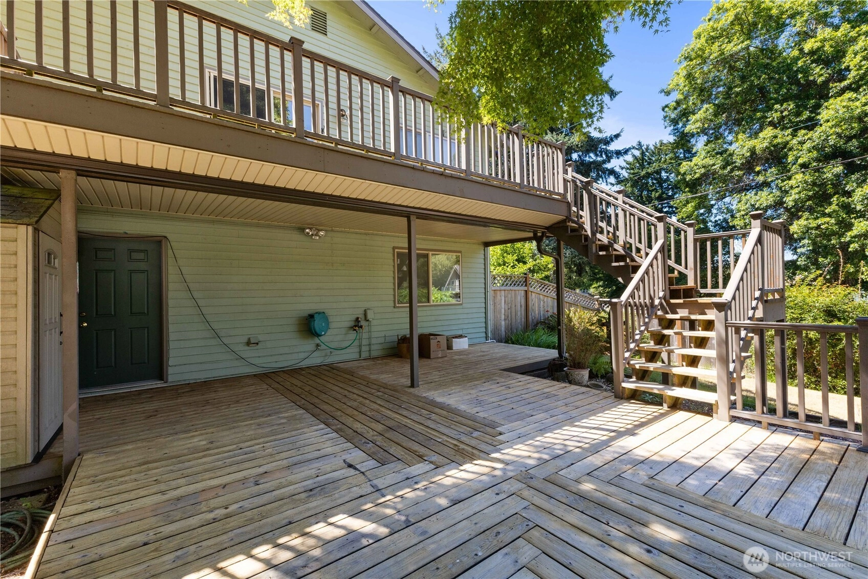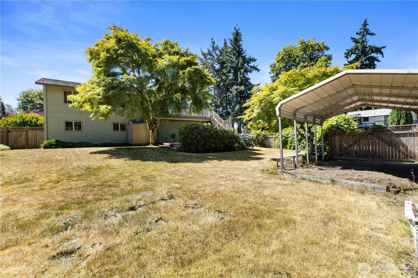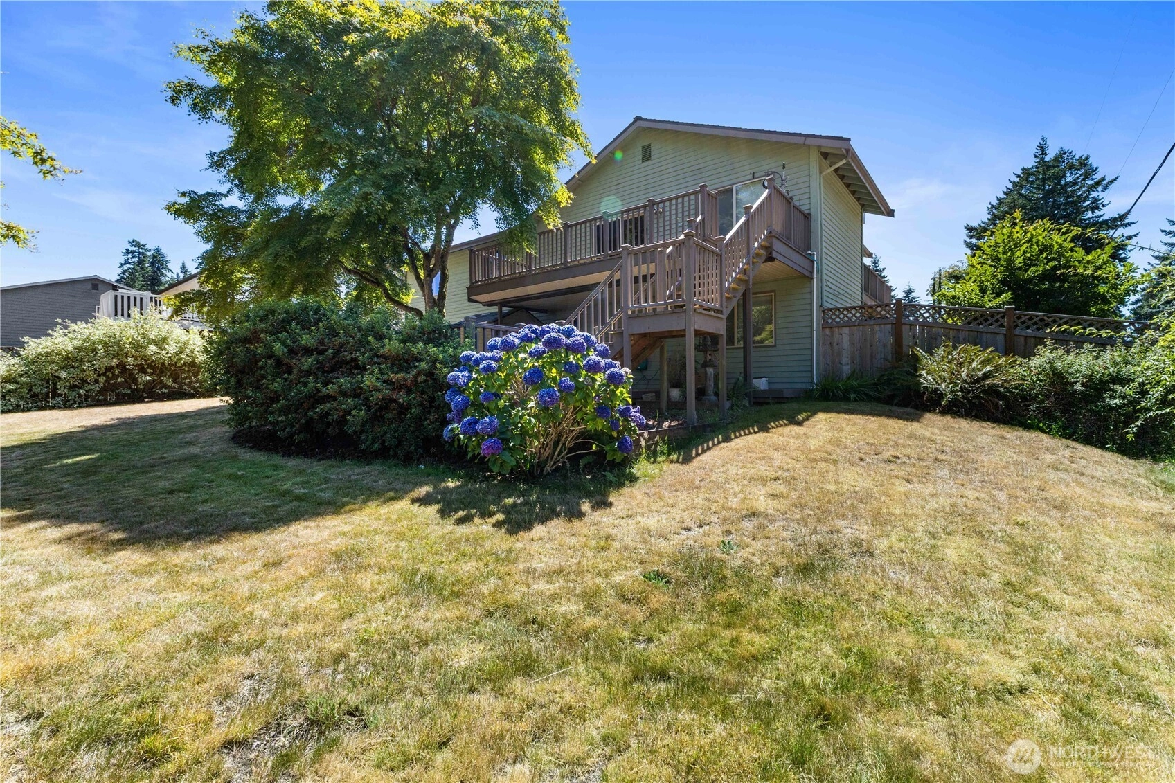 Nestled in a highly desirable neighborhood with partial sound view, this 4 bedroom home offers ample comfortable living space with thoughtful touches throughout. The main level features a sunlit primary bedroom with an ensuite and charming bay window. Enjoy cooking and entertaining in open spaces highlighted by new interior paint, fresh carpet, and luxury plank flooring. Downstairs, a fully finished daylight basement provides extra living area, laundry, and potential multi generation home or office space, etc. The fenced backyard is perfect for relaxing under mature shade trees or tending raised garden beds and grapevines. Plus, there's room for your RV or boat, a two-car garage with extra shop space, and is even wired for generator hookup!