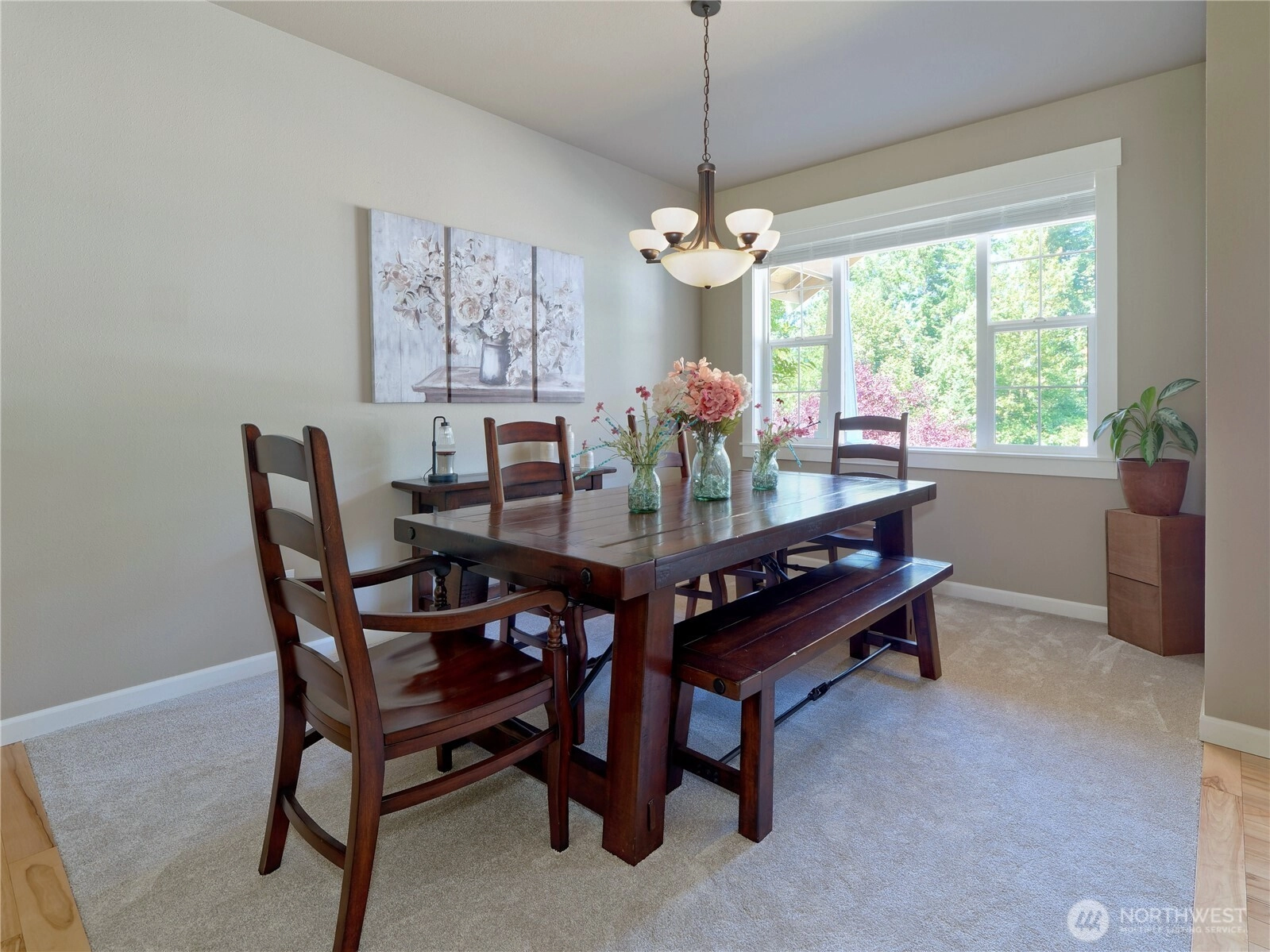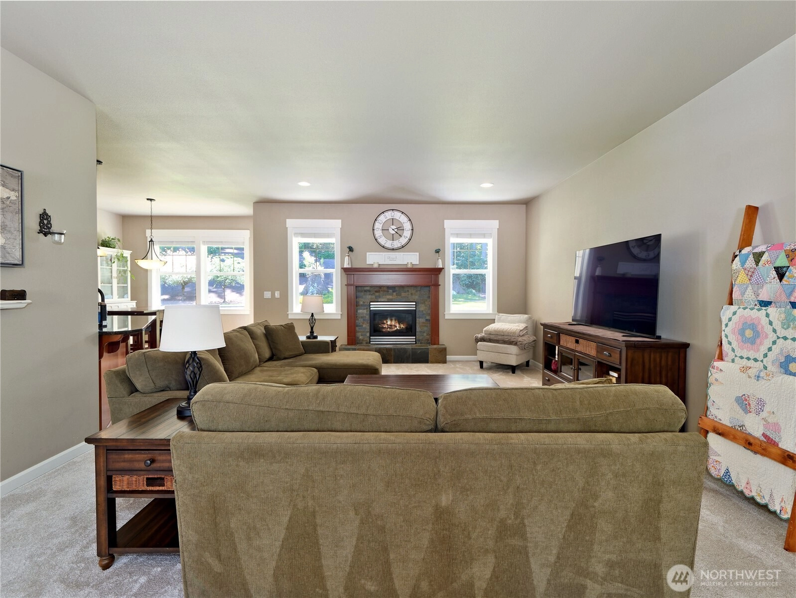 Welcome to this beautiful 1,871 sq. ft. rambler nestled in the sought-after Rainbow Run neighborhood. This 3-bedroom, 2-bath home offers a warm, inviting layout featuring rich maple hardwood floors, solid granite countertops, white painted millwork, and stainless steel appliances. The spacious kitchen boasts an abundance of counter space, a large pantry, and flows seamlessly into the dining nook and family room — perfect for everyday living and entertaining. Enjoy evenings by the elegant gas fireplace with raised hearth and mantle, or take the gathering outdoors to the covered rear patio under the stars. Bonus: New carpet, furnace and water heater! This home is your perfect blend of comfort, function, and Northwest charm. Welcome home!