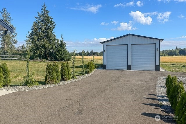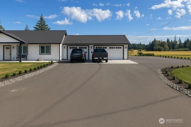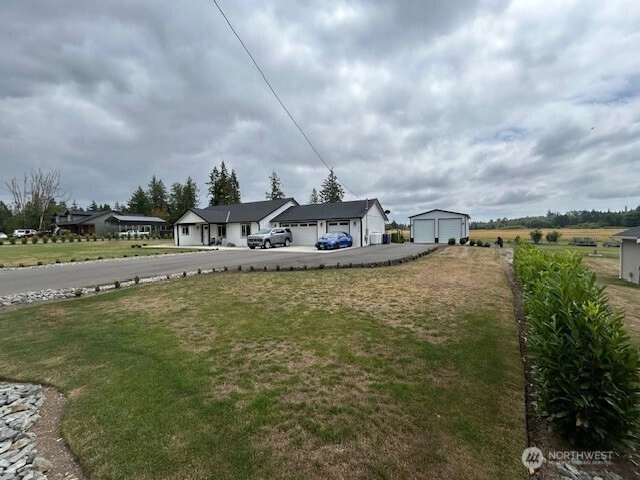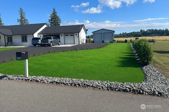 Welcome to this 3 year old home with MASSIVE SHOP, 9-ft walls, vaulted ceilings & no stairs! Set on over an acre, it offers space for gardening, recreation, or expansion—enhancing both privacy & potential. Open layout features a spacious living room w/fireplace, kitchen, dining area & walk-in pantry. Stay comfortable year-round w/air conditioning & tankless water heater and wired for generator. Concrete walkway around permiter of house. One bay of the attached garage is converted into a bonus room, bedroom or climate-controlled car storage. Outside is a 30x50x16 shop w/220v/50amp power, 14-ft doors & extra-wide driveway. RV parking w/hookups. Easy I-5 access! Enjoy peaceful country living just minutes from town, schools & amenities.