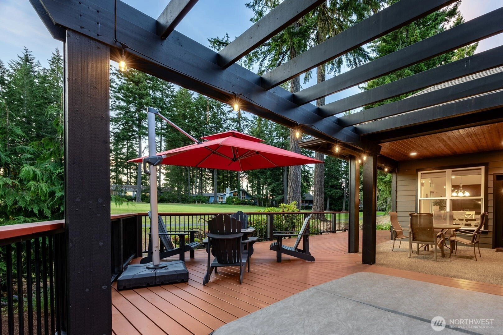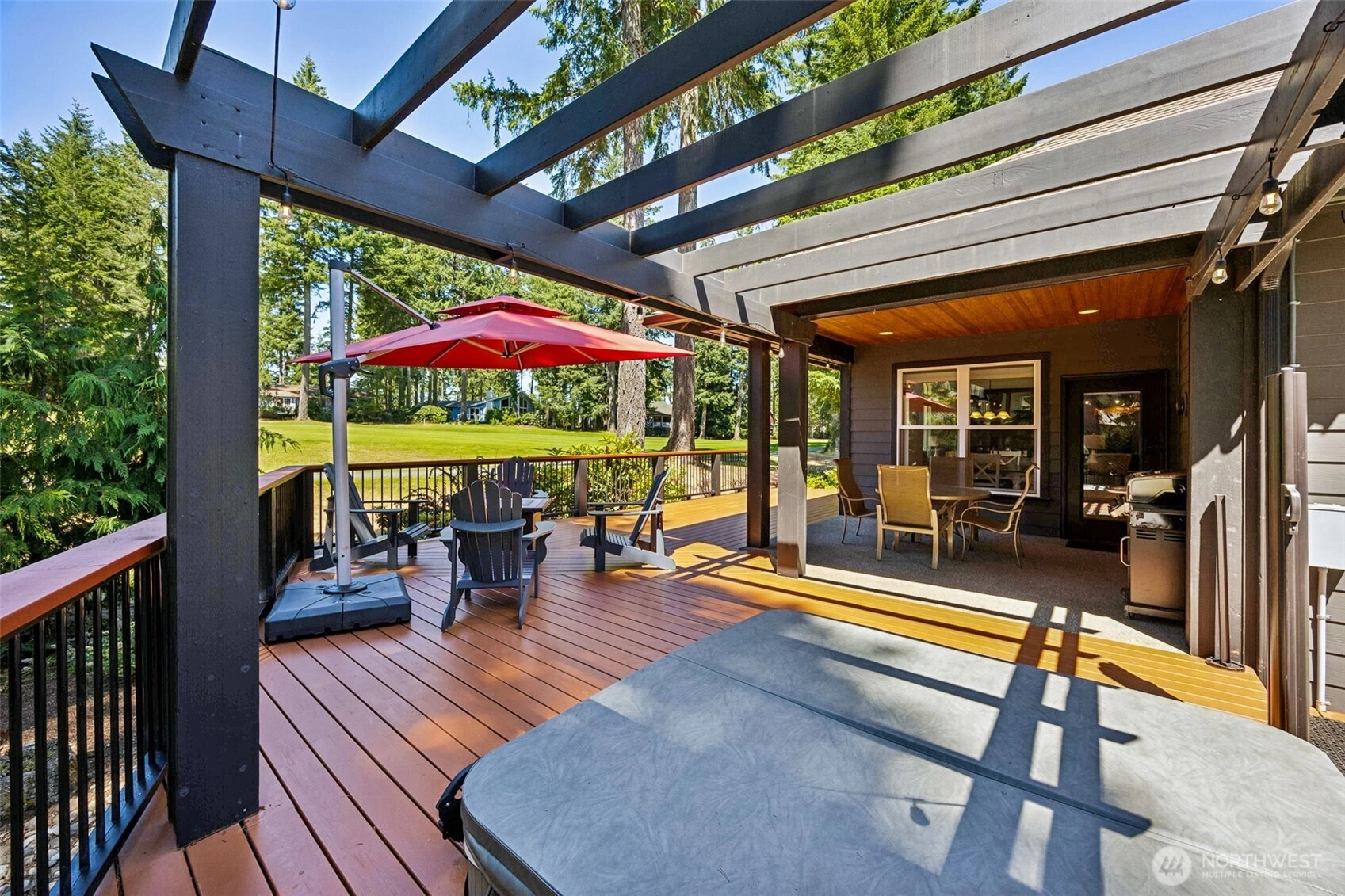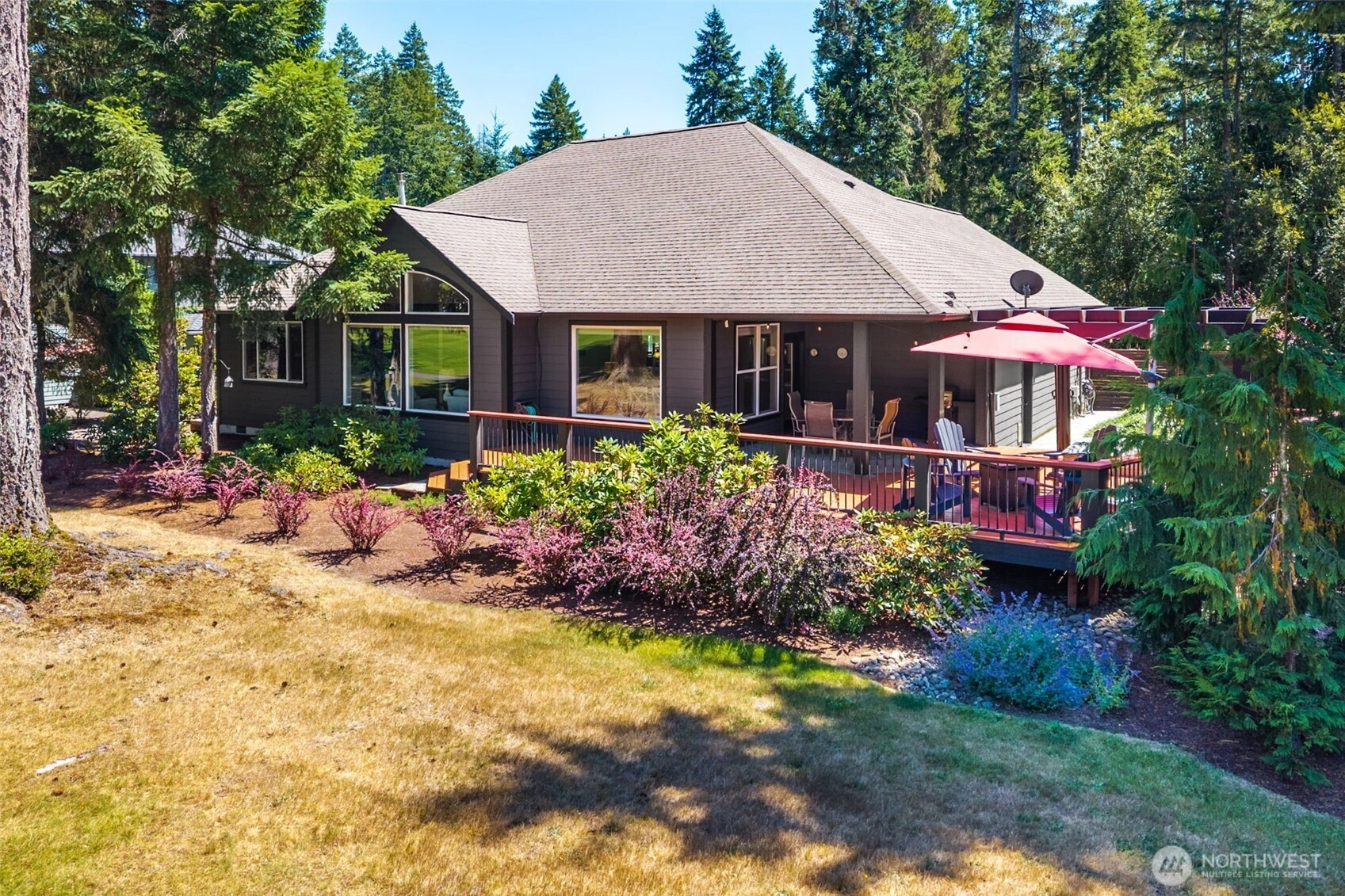 Perfectly positioned, midway on the 17th fairway, the Alderbrook Golf & Yacht Club home you’ve waited for. Beautifully designed for entertaining in any season, this 2 BR/1.75 BA 1-level has a spacious, vaulted great room--mingle between the lg. dining area, covered patio, and spacious 700+ SF deck w/hot tub overlooking the course. You’ll love the lg. windows and natural light thru, chef’s kitchen w/maple cabinets, easy-care SS counters, and newer LVP flooring. Primary BR has lg. 5-piece tiled bath w/walk-in closet, and the ¾ bath and utility rooms are also fully tiled. Work from the private den off the entry, there’s a 600+ SF garage w/room for a golf cart, and HOA fee covers unlimited golf for owners on this award-winning course!