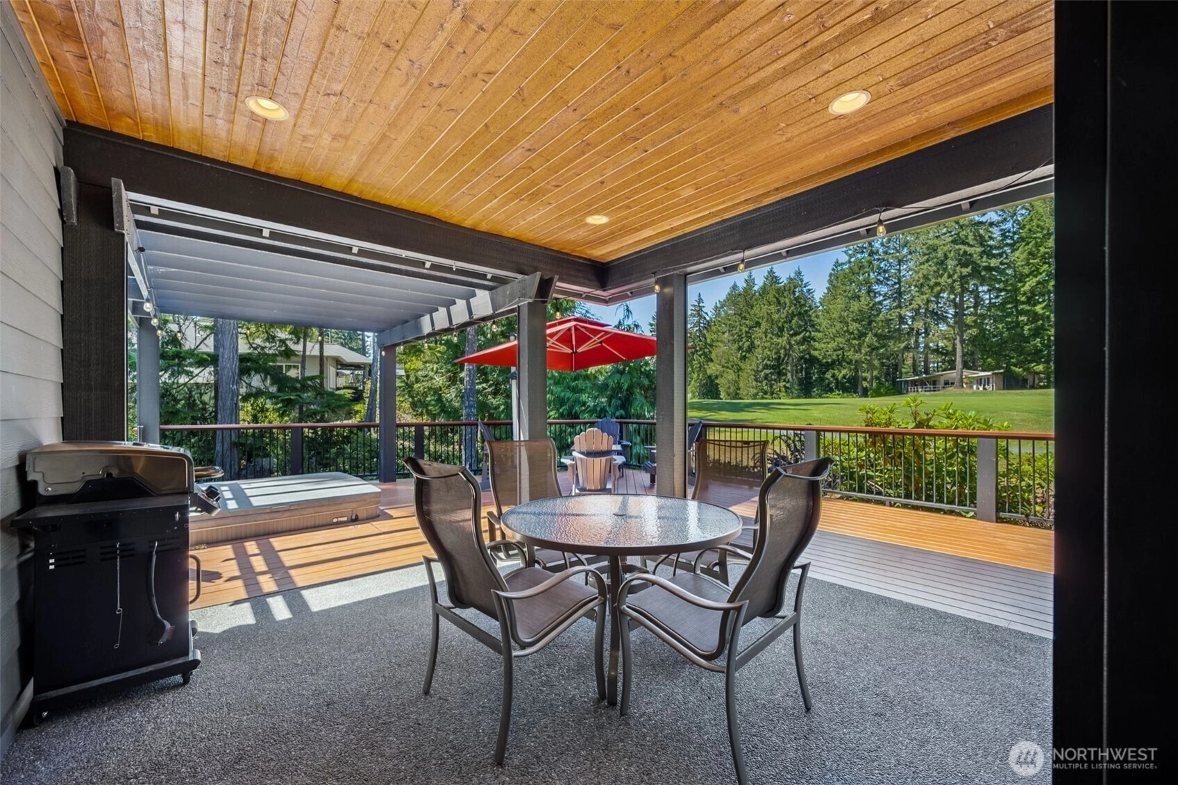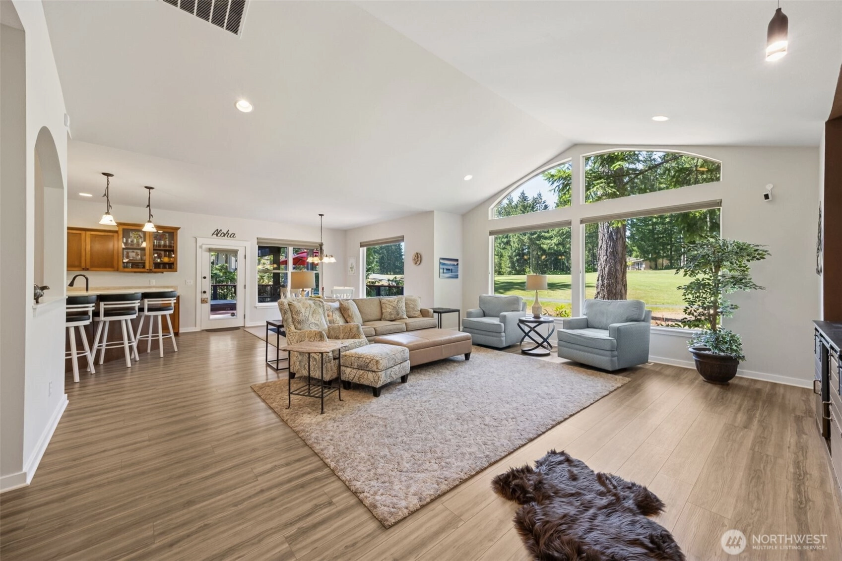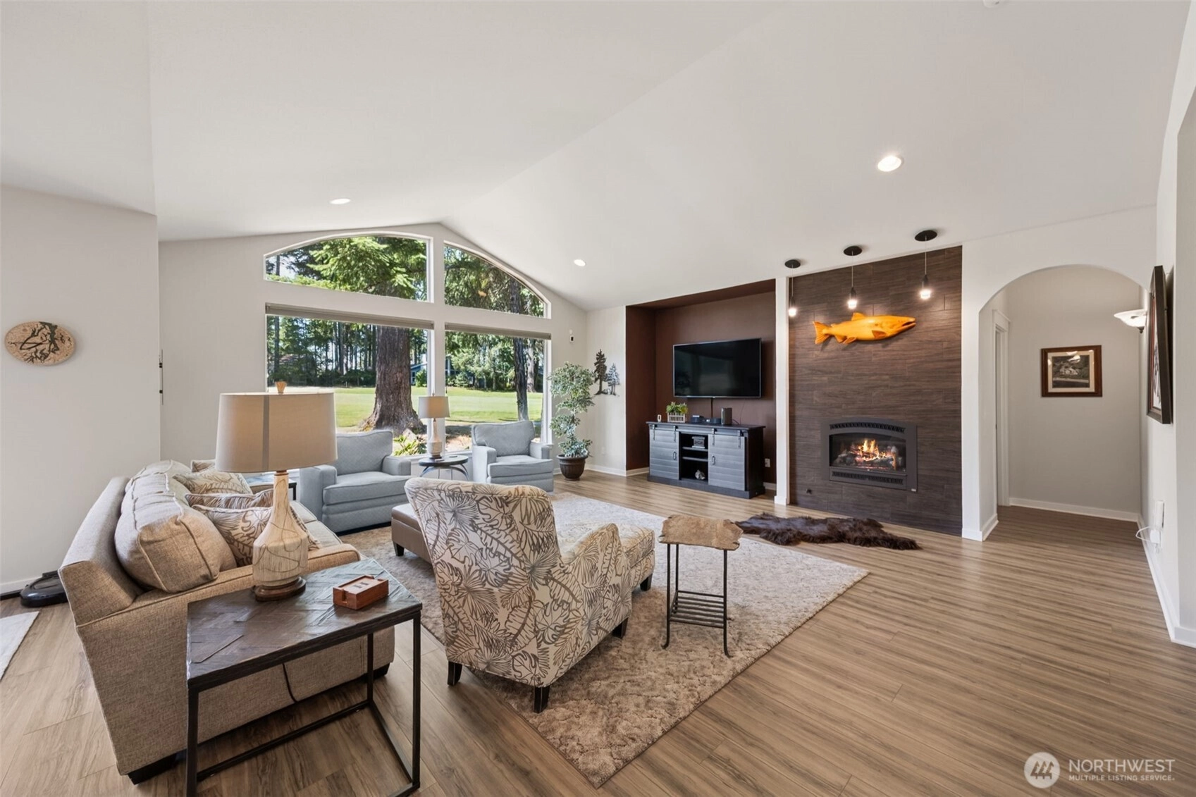 Perfectly positioned, midway on the 17th fairway, the Alderbrook Golf & Yacht Club home you’ve waited for. Beautifully designed for entertaining in any season, this 2 BR/1.75 BA 1-level has a spacious, vaulted great room--mingle between the lg. dining area, covered patio, and spacious 700+ SF deck w/hot tub overlooking the course. You’ll love the lg. windows and natural light thru, chef’s kitchen w/maple cabinets, easy-care SS counters, and newer LVP flooring. Primary BR has lg. 5-piece tiled bath w/walk-in closet, and the ¾ bath and utility rooms are also fully tiled. Work from the private den off the entry, there’s a 600+ SF garage w/room for a golf cart, and HOA fee covers unlimited golf for owners on this award-winning course!