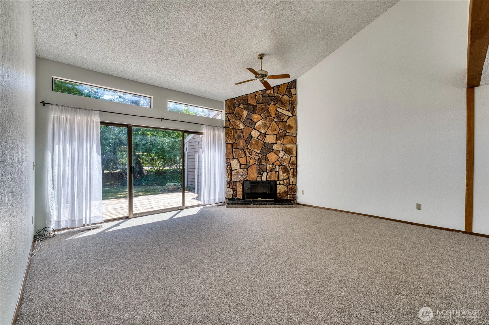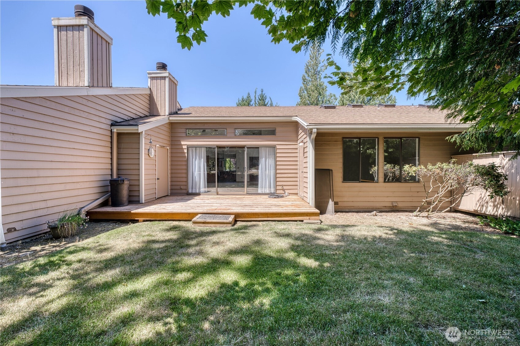 Located in the serene Cedar Downs Village sits a light and bright townhome with vaulted ceilings in the great room that leads to a quite spacious deck to entertain on or just relax. Enjoy the wood burning fireplace on cooler nights. Nicely updated kitchen with new cabinets including glass fronts for displaying, stainless appliances are all included and tile floors. Two generous bedrooms. Primary bedroom has dual closets and second bedroom has slider to a courtyard patio. Washer and dryer are also included. Additional features are economical gas furnace and water tank. Fresh paint and new carpet throughout. ONE YEAR HOME WARRANTY INCLUDED. Grounds maintenance, exterior building maintenance, and garbage service is included in the HOA fee.