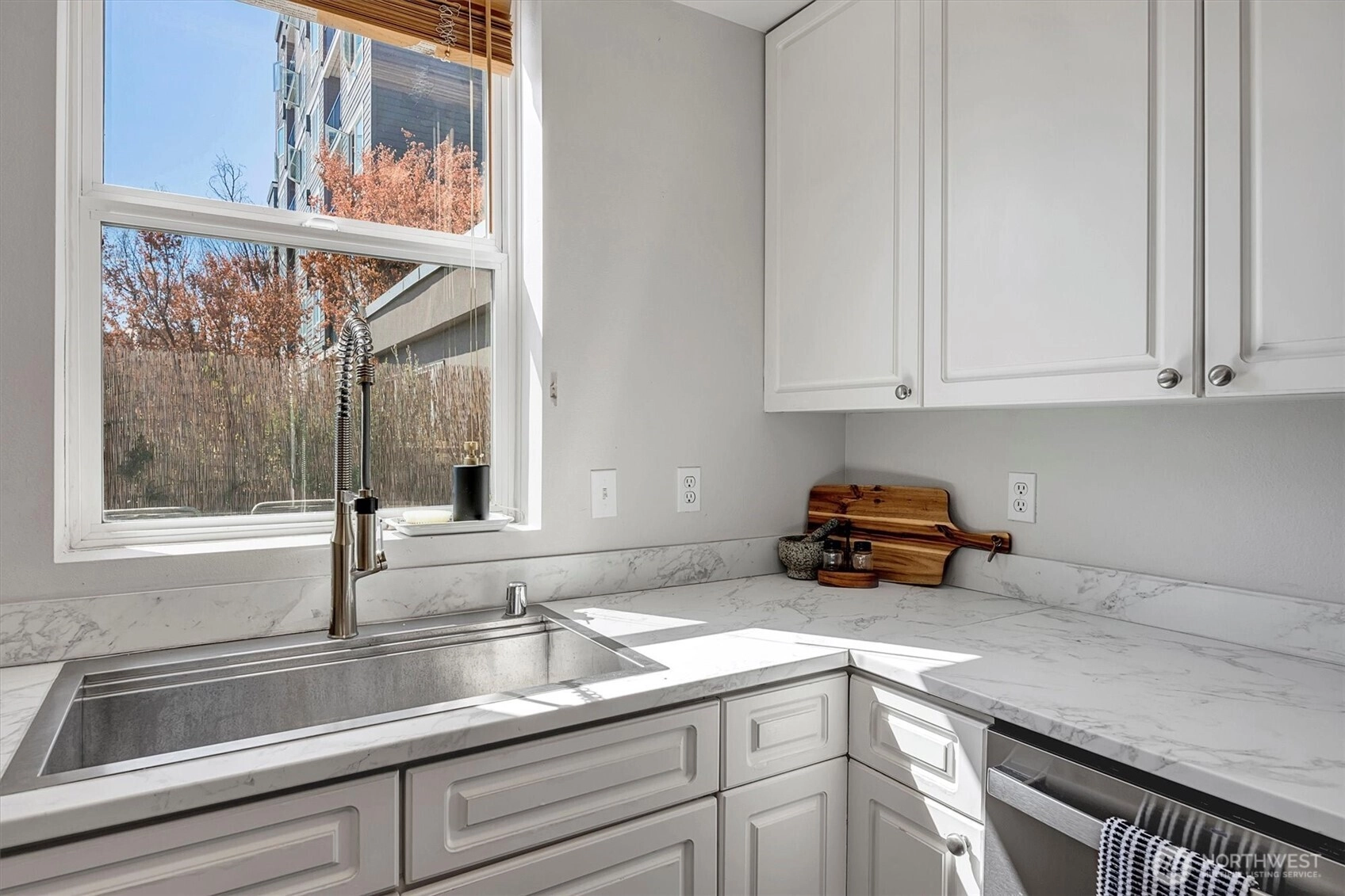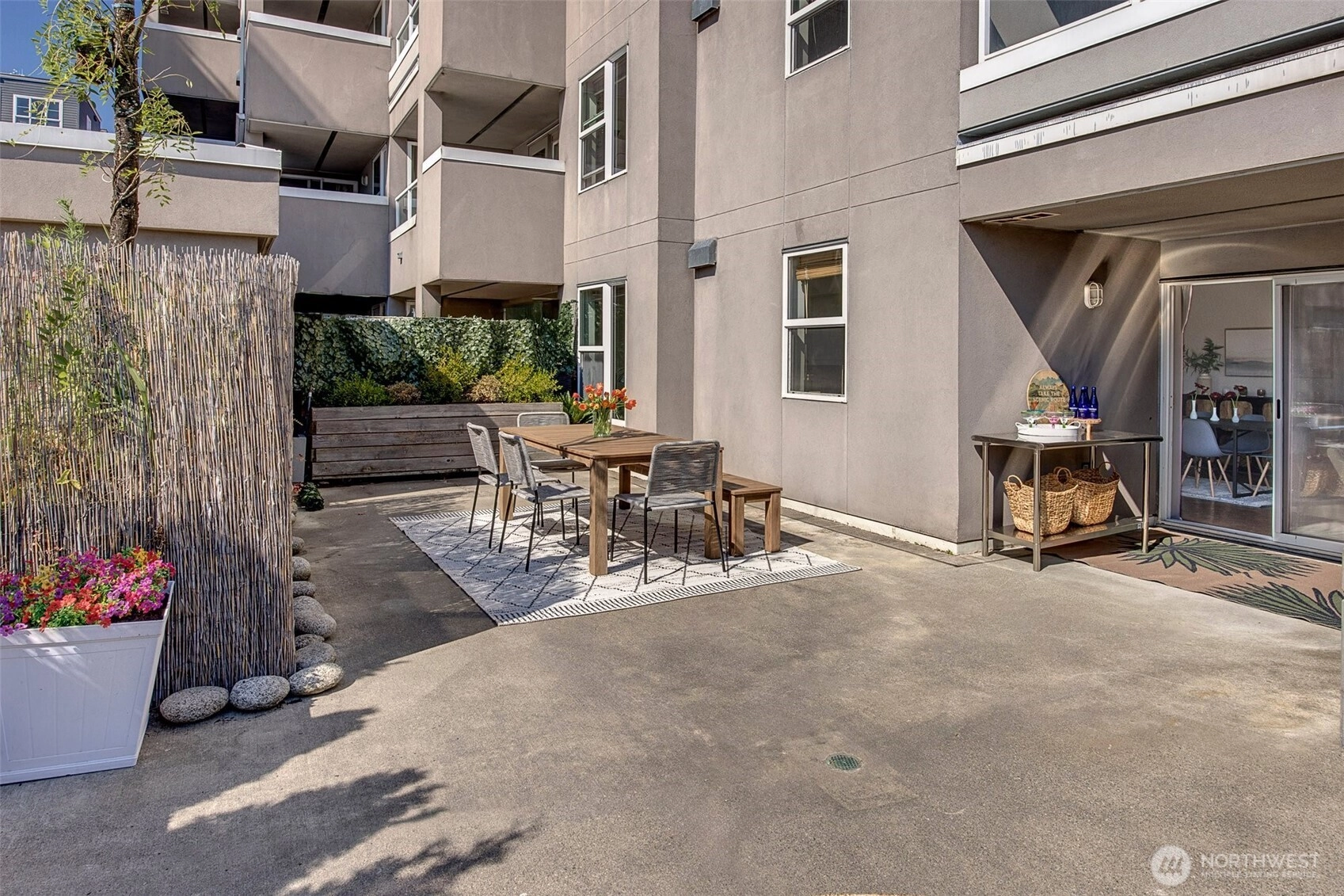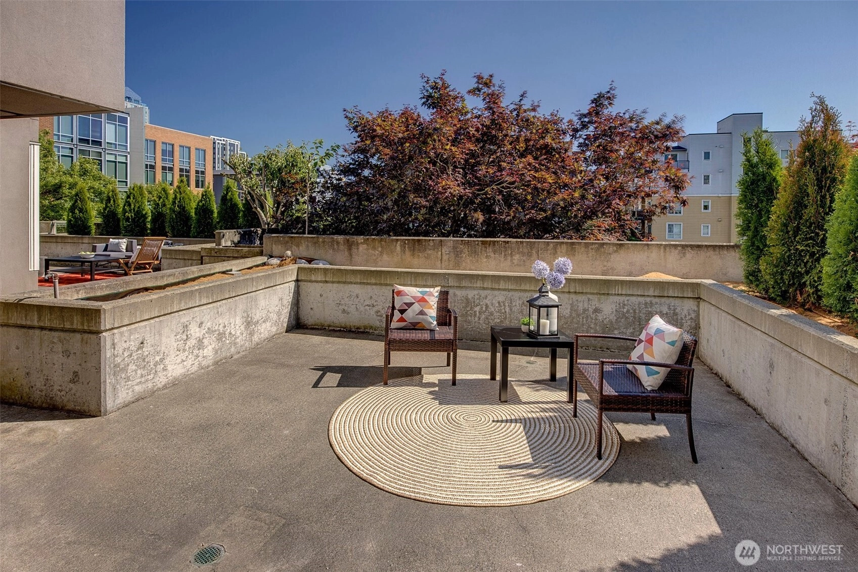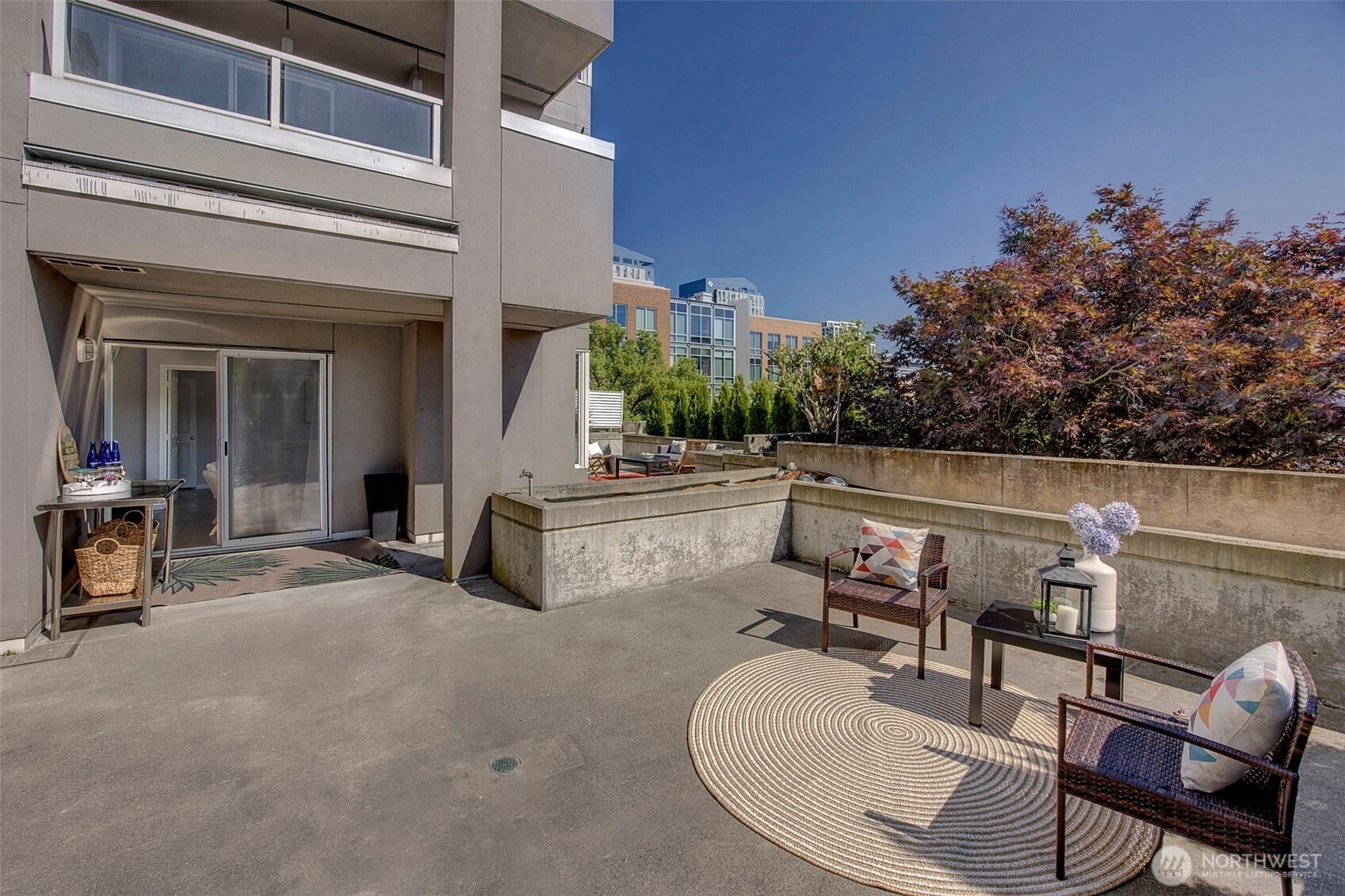 The most exceptional unit at La Terrazza is here. One-of-a-kind blend of space, style, and unbeatable location. With over 1,000 sq ft of private patio space in the heart of the University District. This updated 2-bed, 2-bath condo features soaring ceilings, a light-filled open layout, and all new appliances. Enjoy your morning coffee with views of nature, not traffic or entertain guests as the sun sets just over your patio. This peaceful area offers the perfect balance of comfort, privacy, and convenience. Two secure indoor garage spaces, extra storage, pet-friendly policies, and no rental cap. You'll love the easy access to I-5, 520, light rail, UW and all things Seattle.