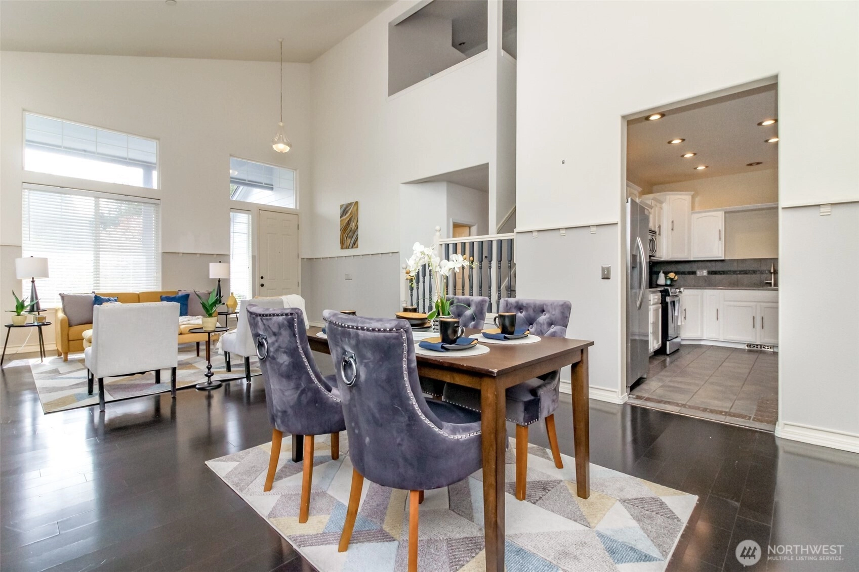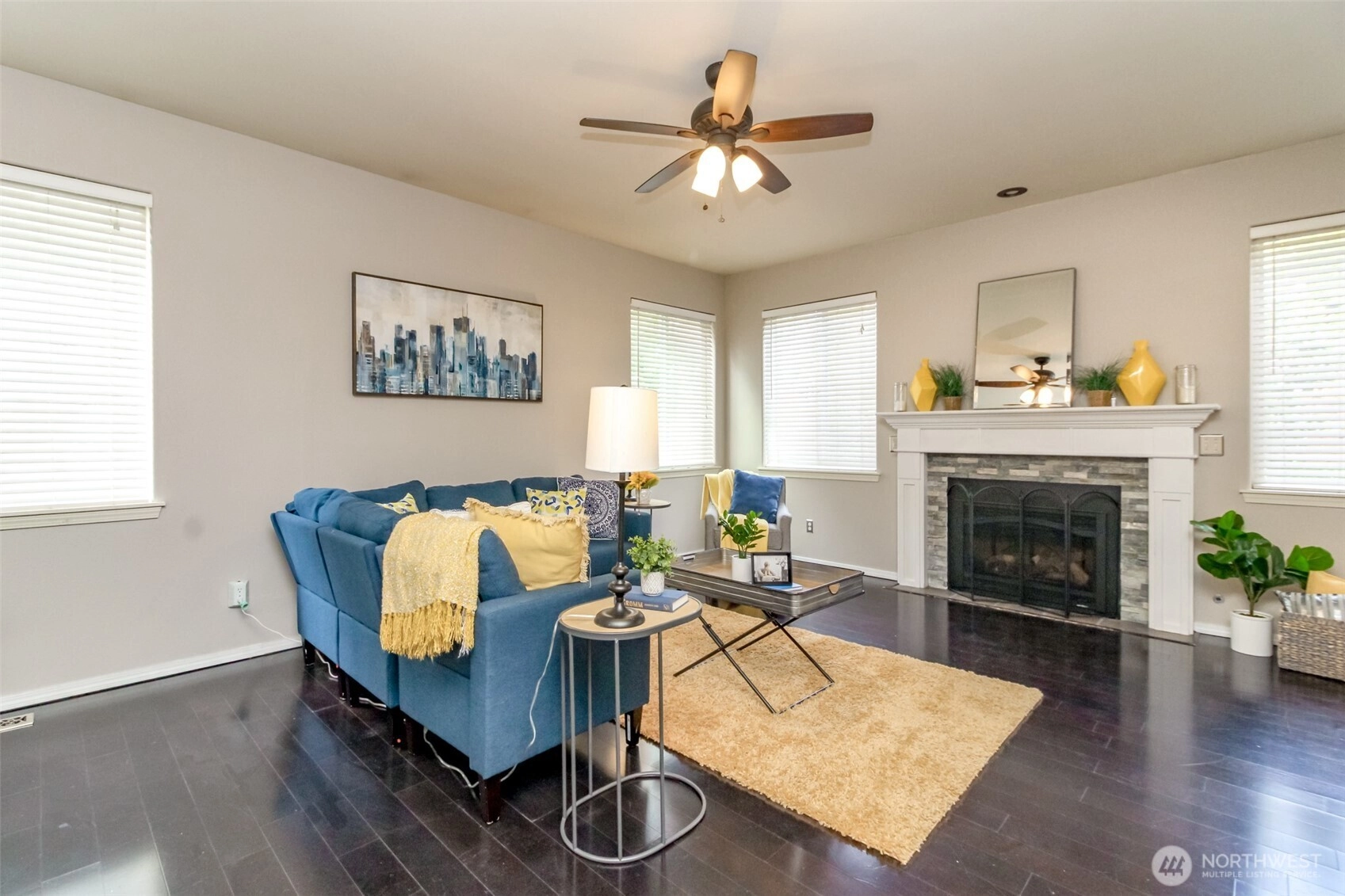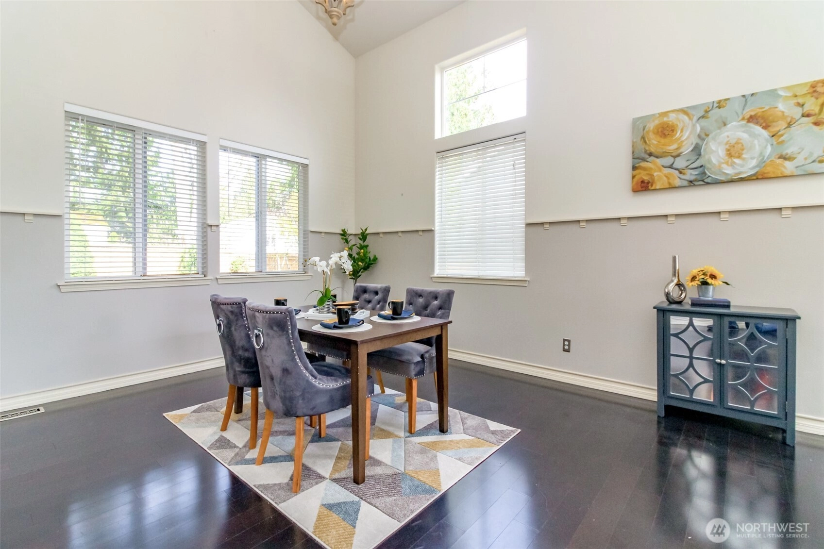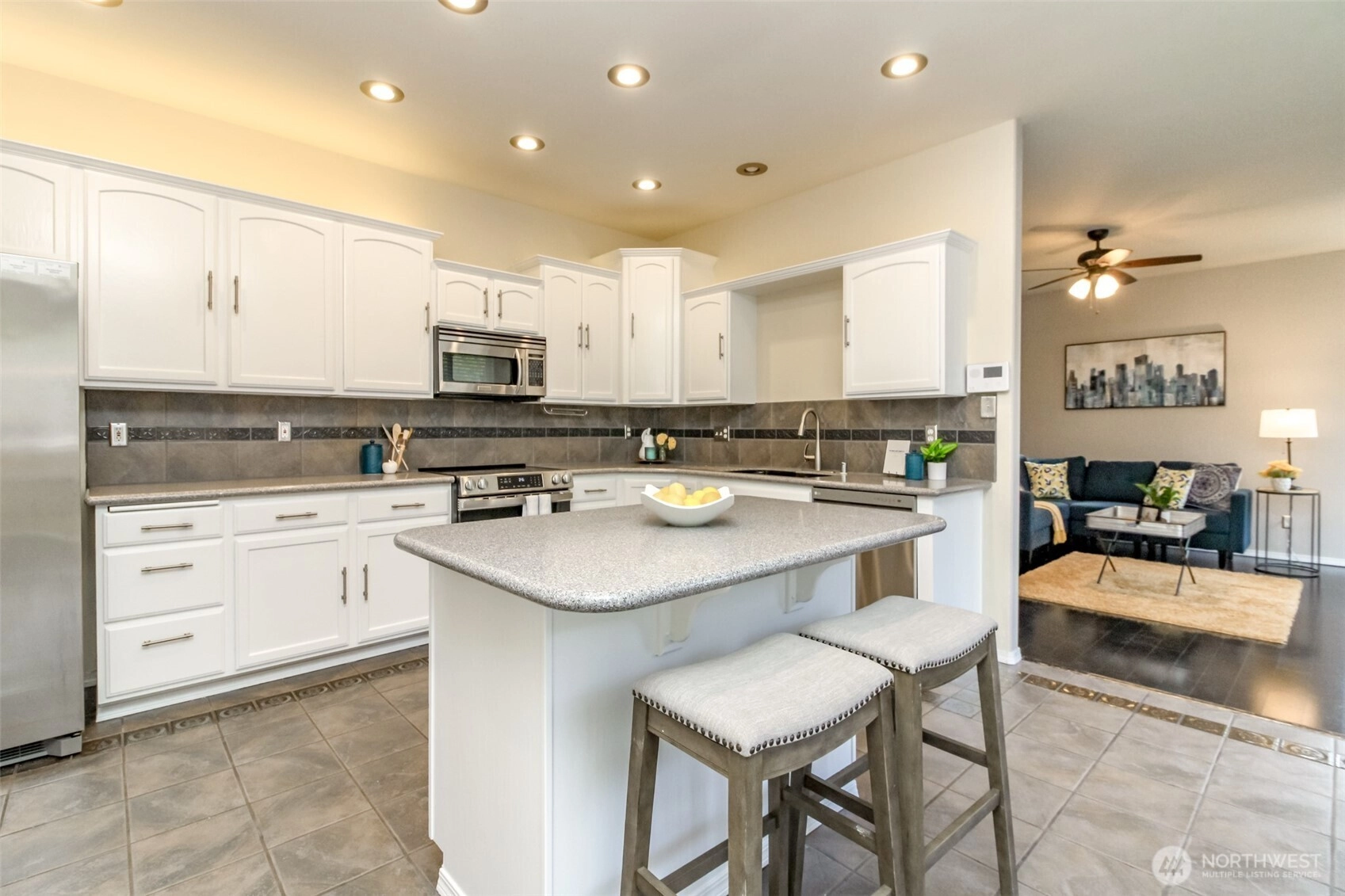 So much to love about this Mountain Vista home, just blocks from coveted Lake Tapps. Greeted by soaring ceilings & walnut plank flooring that flows thru living & dining, into the renewed tiled kitchen w/updated counters, freshly painted cabs, stainless apps, breakfast bar, dining nook AND pantry. Adjacent family room w/beautiful tiled FP. PLUS main floor guest bed/office. Upstairs offers more vaulted ceilings incl. generous primary suite w/sitting area, walk-in closet, updated bath w/separate tub & oversized shower. Loft/flex space & large bedrooms. Fully fenced, private yard w/covered patio. All under the protection of a NEW ROOF. Plus wired for generator! Allen York Park, schools, Bonney Lake/HWY 410 amenities just minutes away!