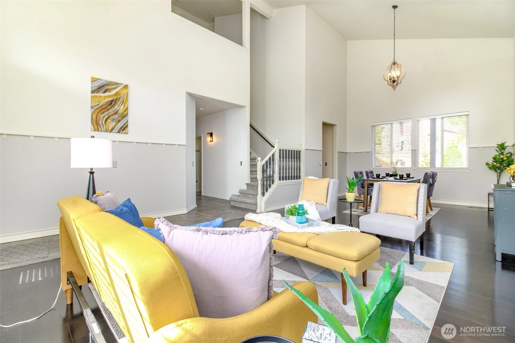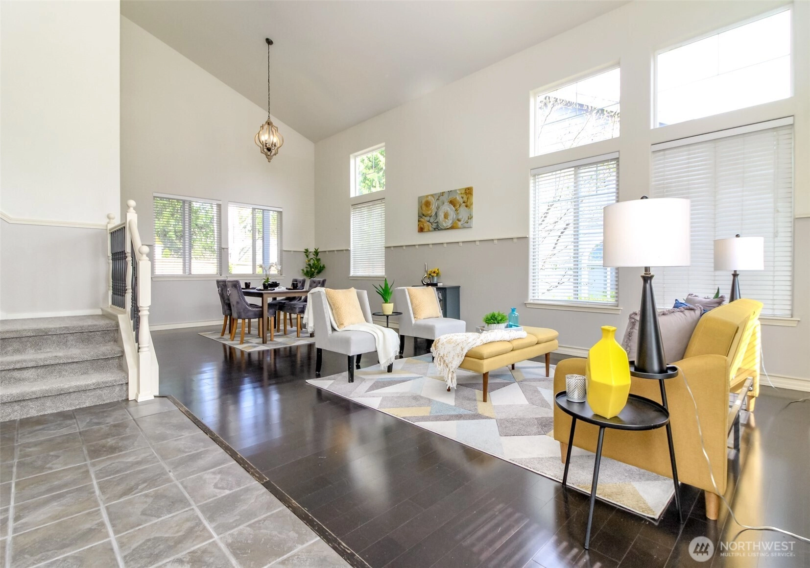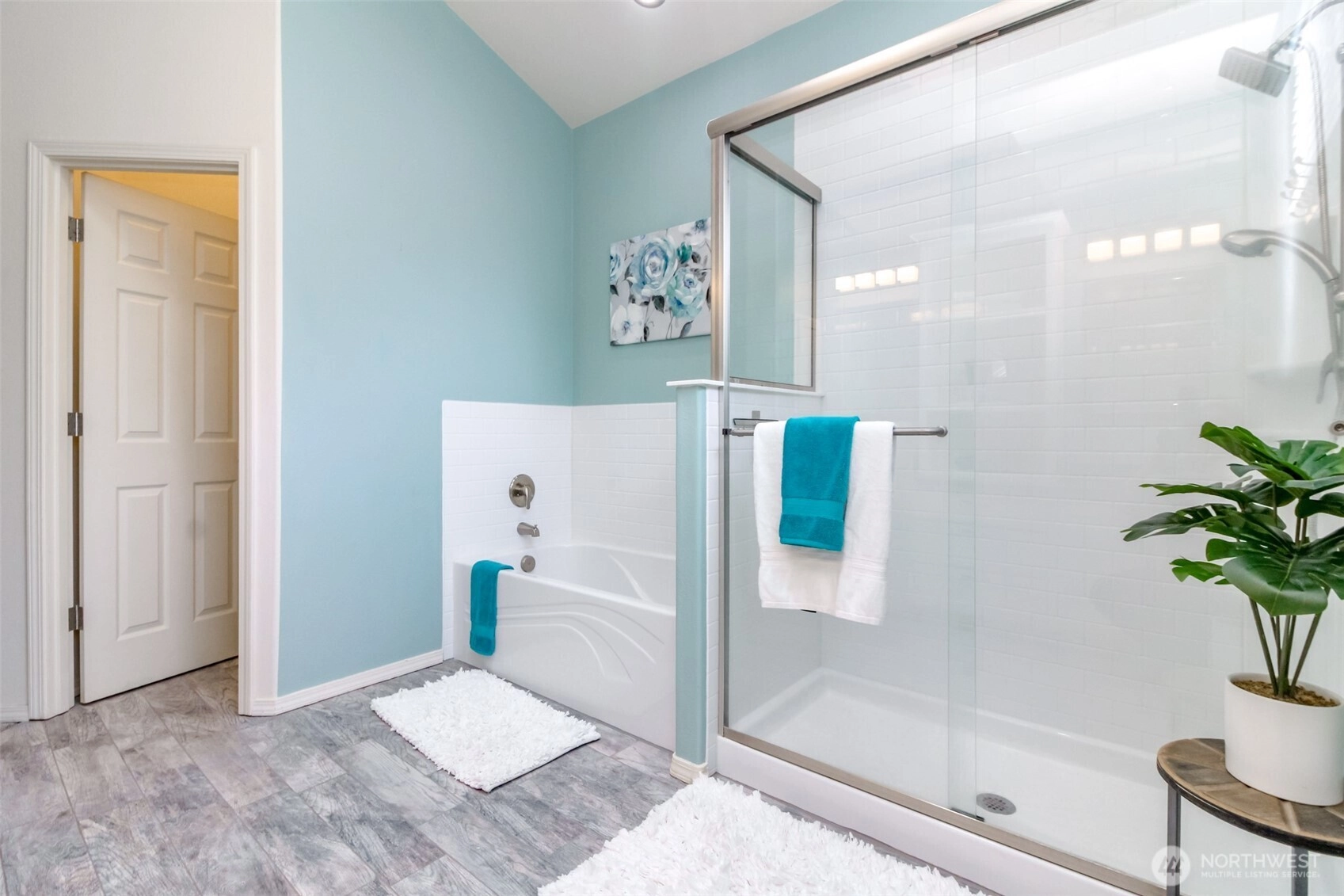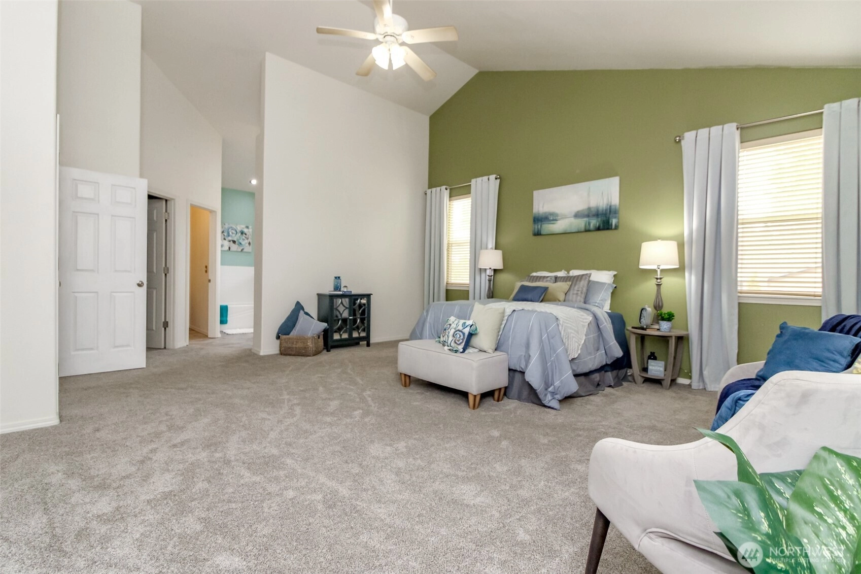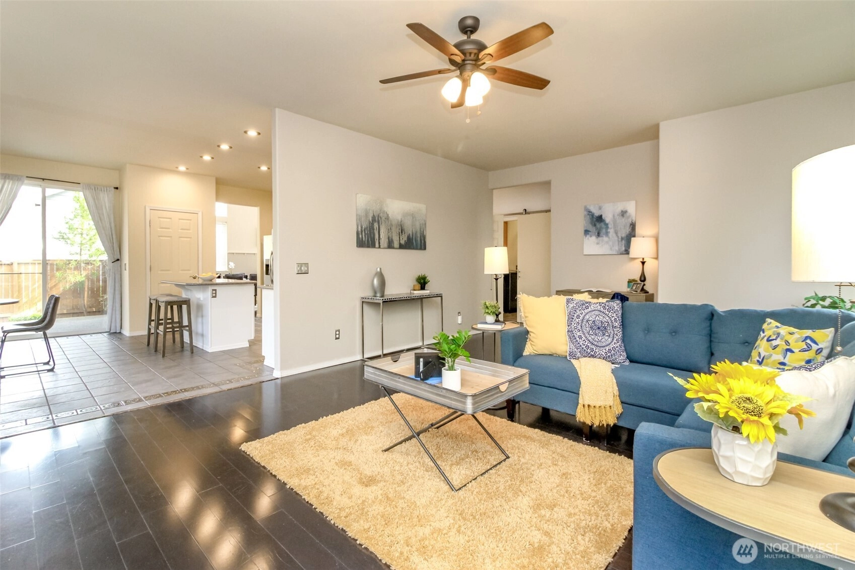 So much to love about this Mountain Vista home, just blocks from coveted Lake Tapps. Greeted by soaring ceilings & walnut plank flooring that flows thru living & dining, into the renewed tiled kitchen w/updated counters, freshly painted cabs, stainless apps, breakfast bar, dining nook AND pantry. Adjacent family room w/beautiful tiled FP. PLUS main floor guest bed/office. Upstairs offers more vaulted ceilings incl. generous primary suite w/sitting area, walk-in closet, updated bath w/separate tub & oversized shower. Loft/flex space & large bedrooms. Fully fenced, private yard w/covered patio. All under the protection of a NEW ROOF. Plus wired for generator! Allen York Park, schools, Bonney Lake/HWY 410 amenities just minutes away!