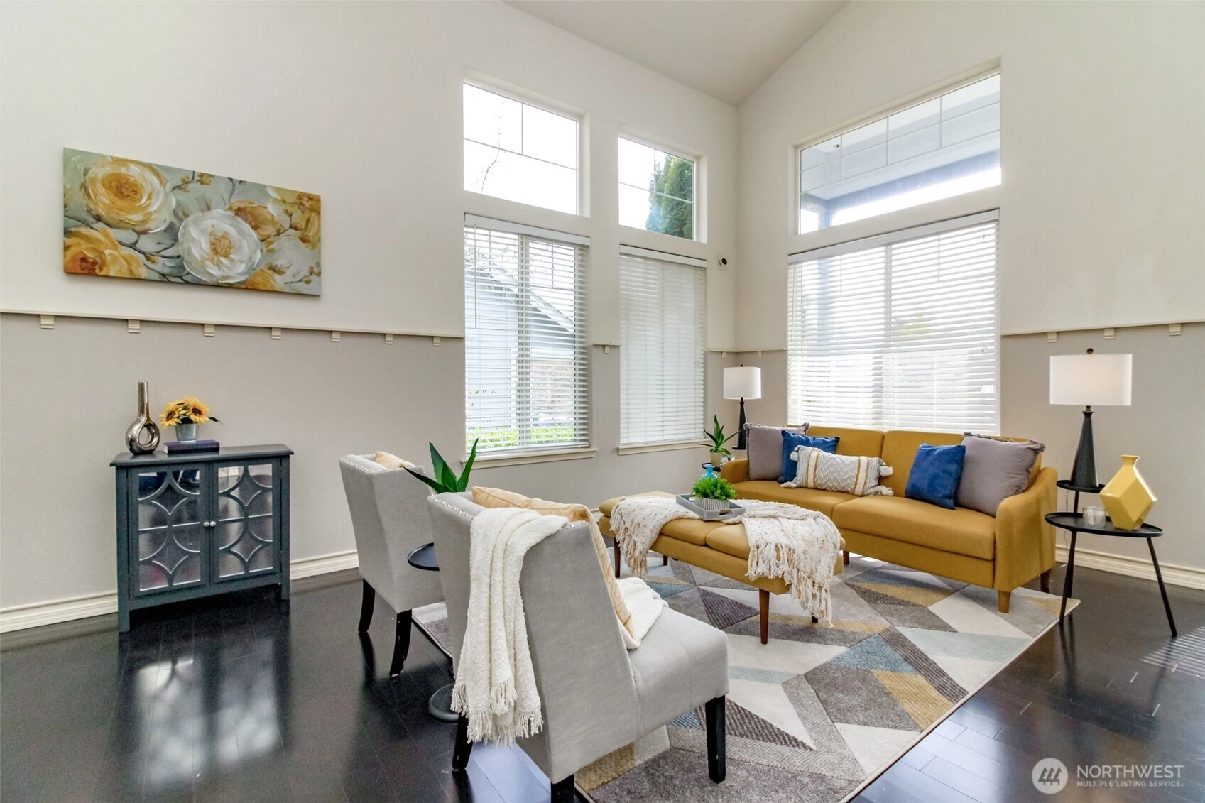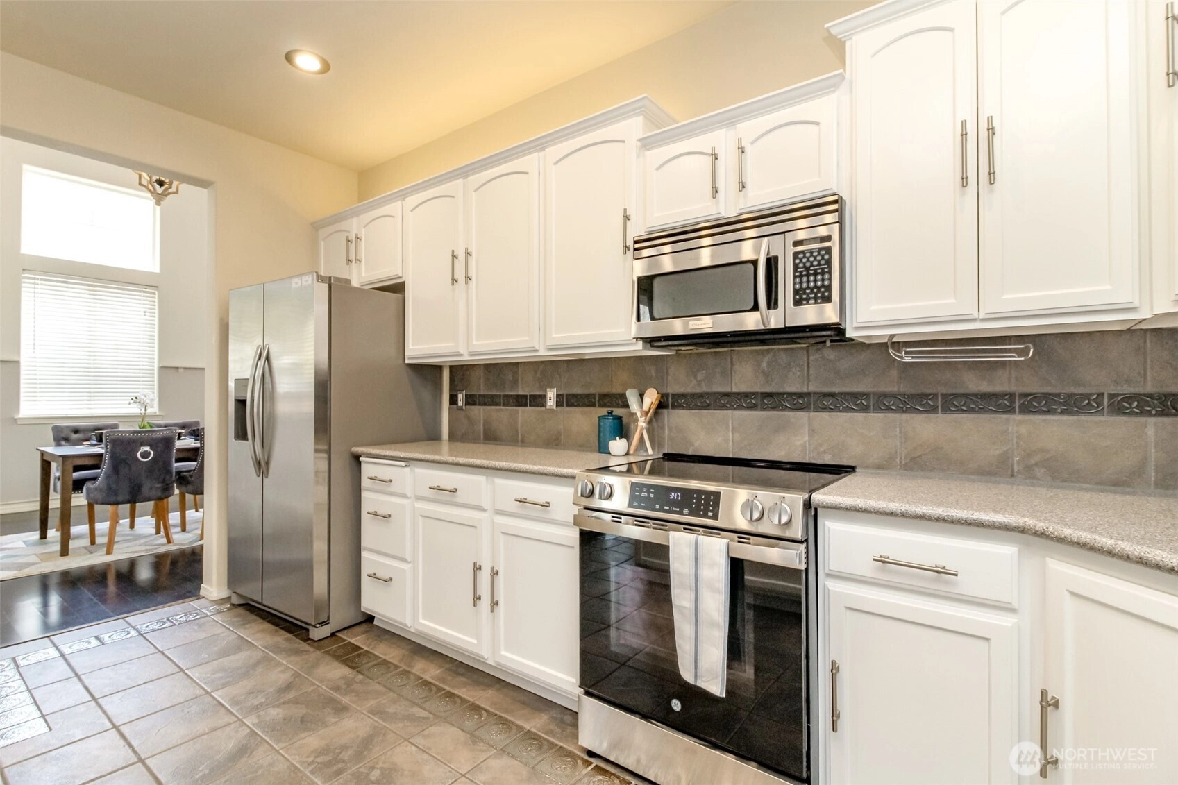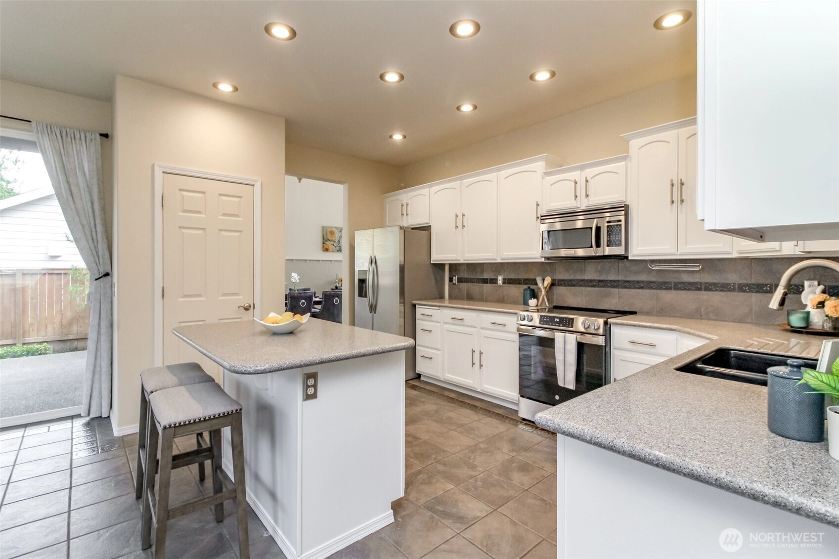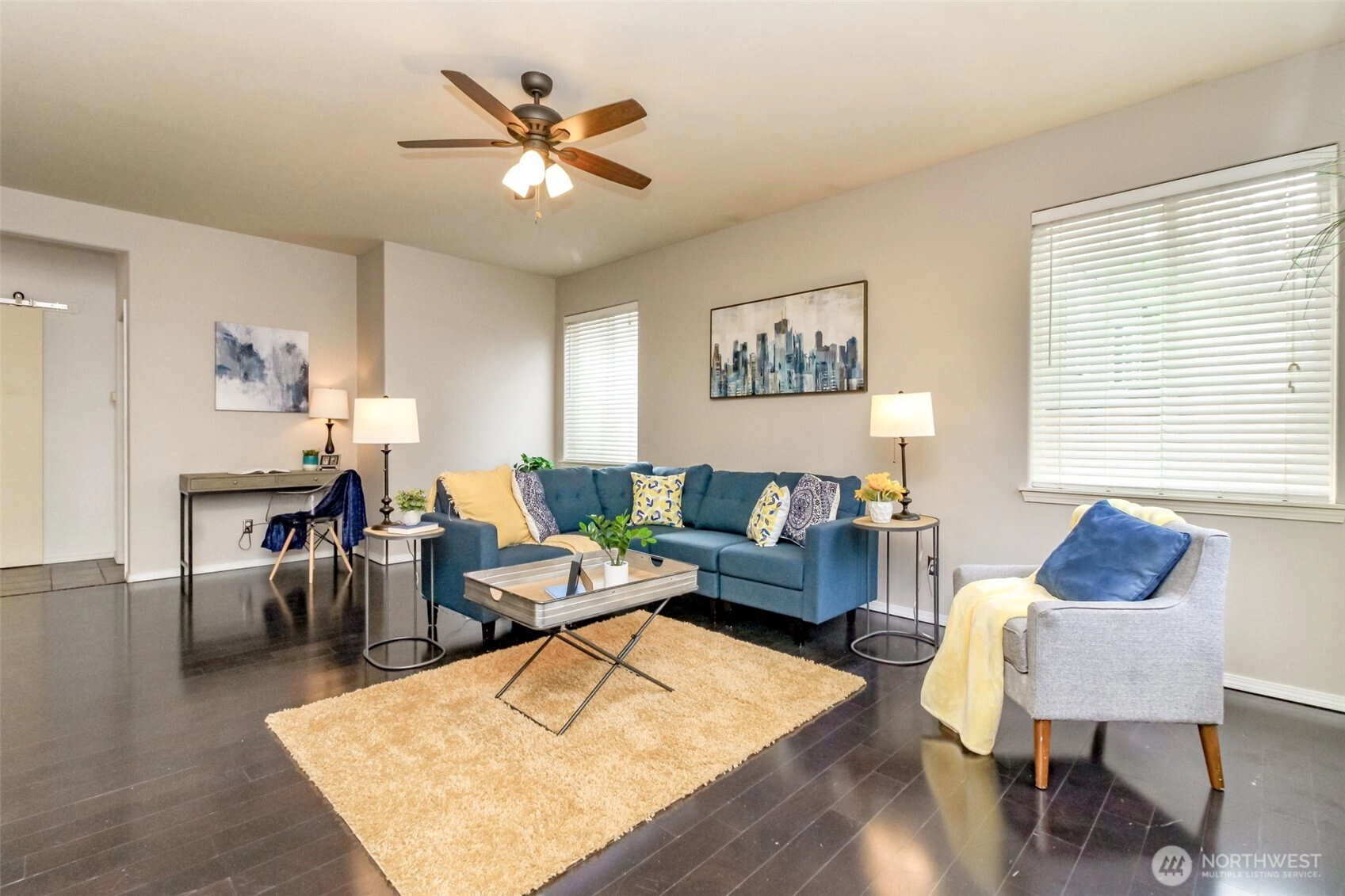 So much to love about this Mountain Vista home, just blocks from coveted Lake Tapps. Greeted by soaring ceilings & walnut plank flooring that flows thru living & dining, into the renewed tiled kitchen w/updated counters, freshly painted cabs, stainless apps, breakfast bar, dining nook AND pantry. Adjacent family room w/beautiful tiled FP. PLUS main floor guest bed/office. Upstairs offers more vaulted ceilings incl. generous primary suite w/sitting area, walk-in closet, updated bath w/separate tub & oversized shower. Loft/flex space & large bedrooms. Fully fenced, private yard w/covered patio. All under the protection of a NEW ROOF. Plus wired for generator! Allen York Park, schools, Bonney Lake/HWY 410 amenities just minutes away!