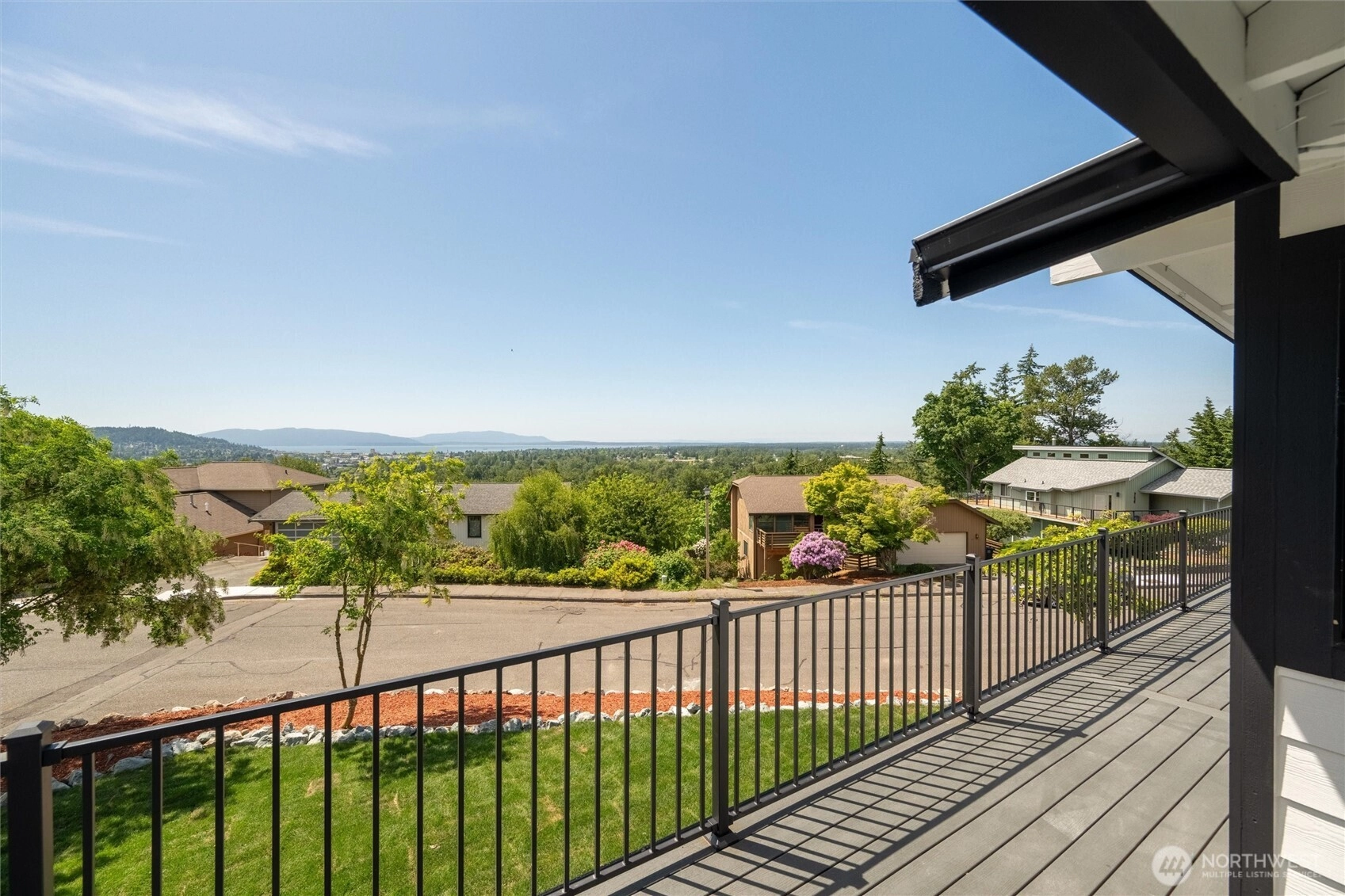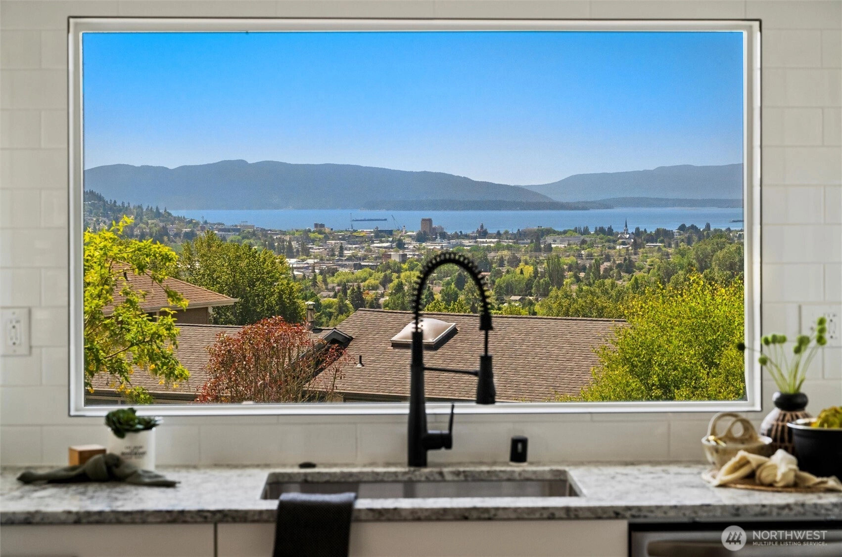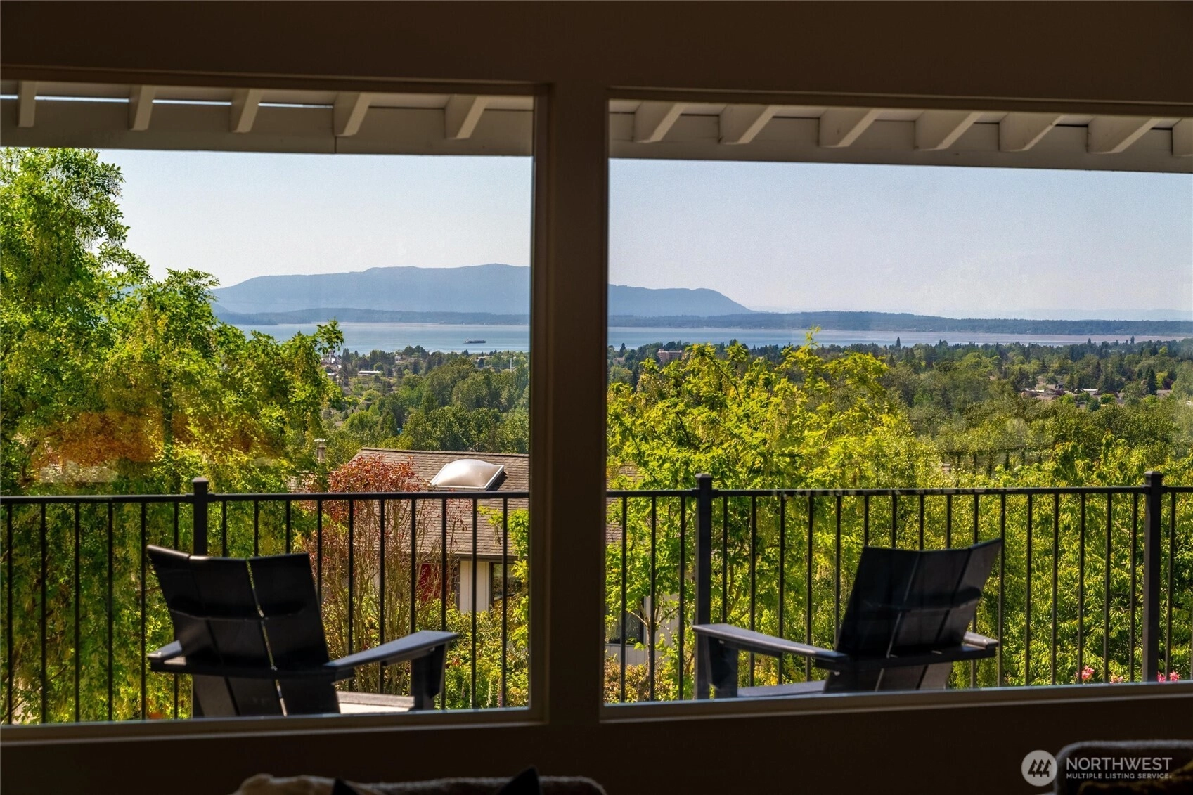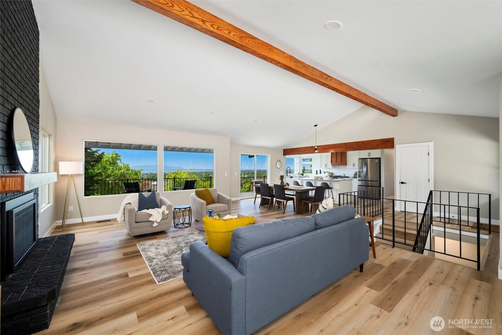 Exquisite Bellingham home with panoramic city & bay views. Vaulted ceilings and expansive windows fill the open-concept living space with light, warmed by gas fireplaces on each level. The primary suite offers deck access, ensuite bath, and walk-in closet with in-room laundry. A versatile main-level bonus room leads to the attached two-car garage. The lower level features a second full living area with walk-out yard access and its own laundry—ideal for guests or multi-gen living. Just minutes from Lake Whatcom and a short stroll to the Interurban Trail system, with the distinction of being in one of the area’s top-rated school districts. Updates include new roof, furnace, ss appliances, deck, patio, driveway, and more. A must-see retreat!