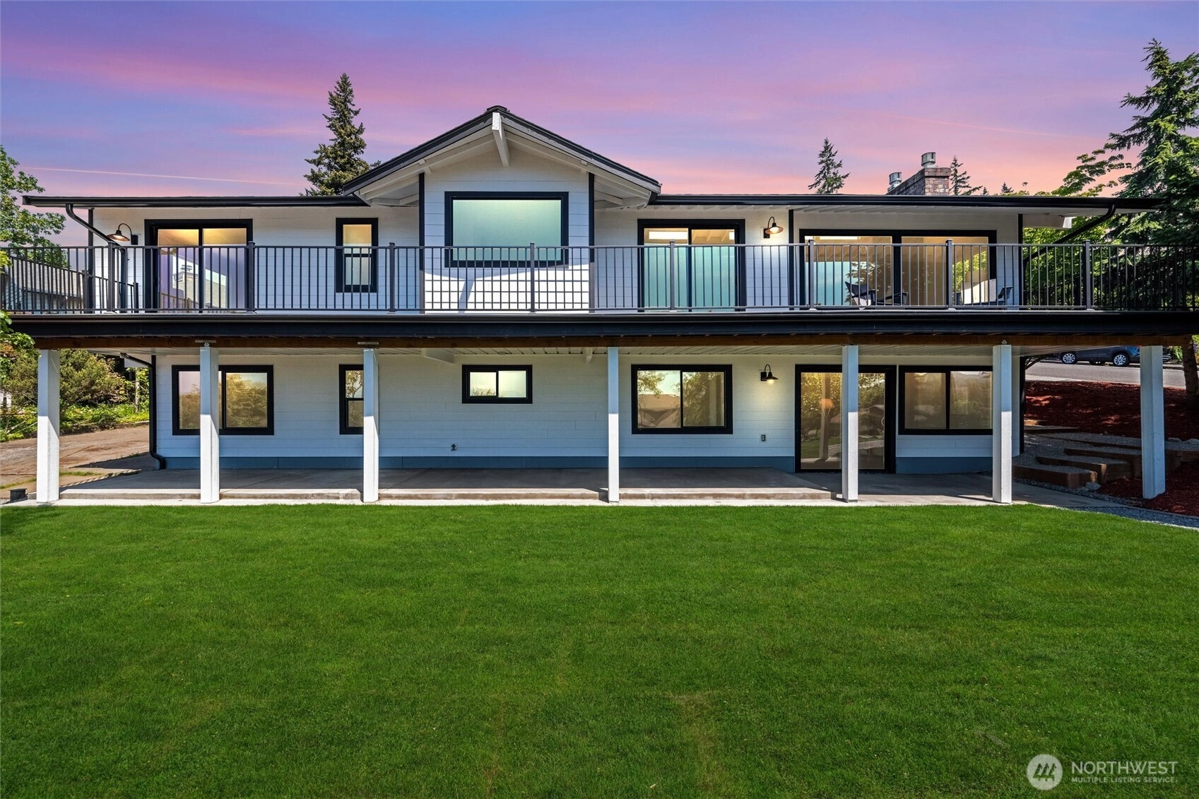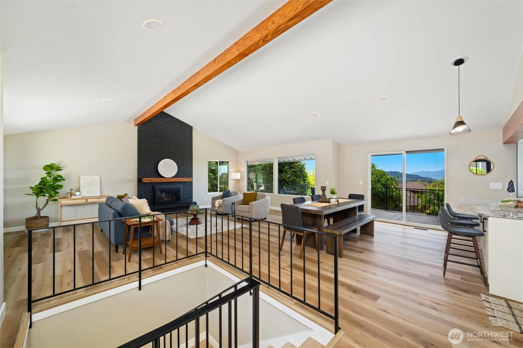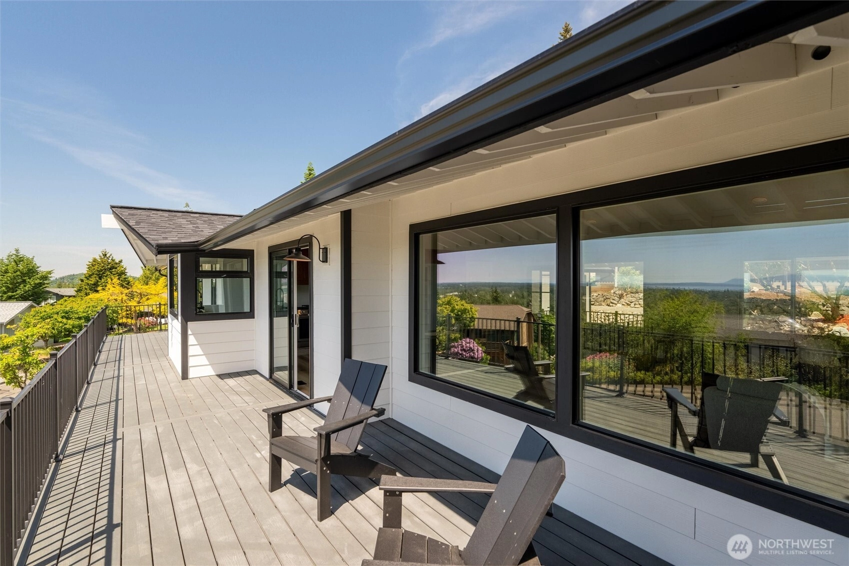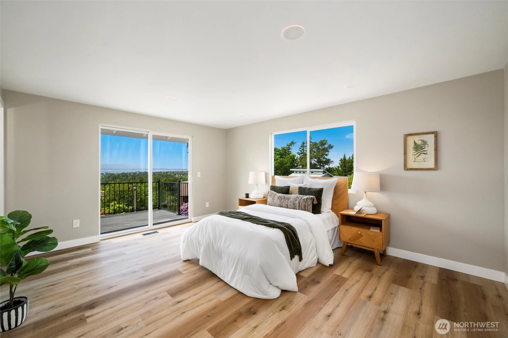 Exquisite Bellingham home with panoramic city & bay views. Vaulted ceilings and expansive windows fill the open-concept living space with light, warmed by gas fireplaces on each level. The primary suite offers deck access, ensuite bath, and walk-in closet with in-room laundry. A versatile main-level bonus room leads to the attached two-car garage. The lower level features a second full living area with walk-out yard access and its own laundry—ideal for guests or multi-gen living. Just minutes from Lake Whatcom and a short stroll to the Interurban Trail system, with the distinction of being in one of the area’s top-rated school districts. Updates include new roof, furnace, ss appliances, deck, patio, driveway, and more. A must-see retreat!