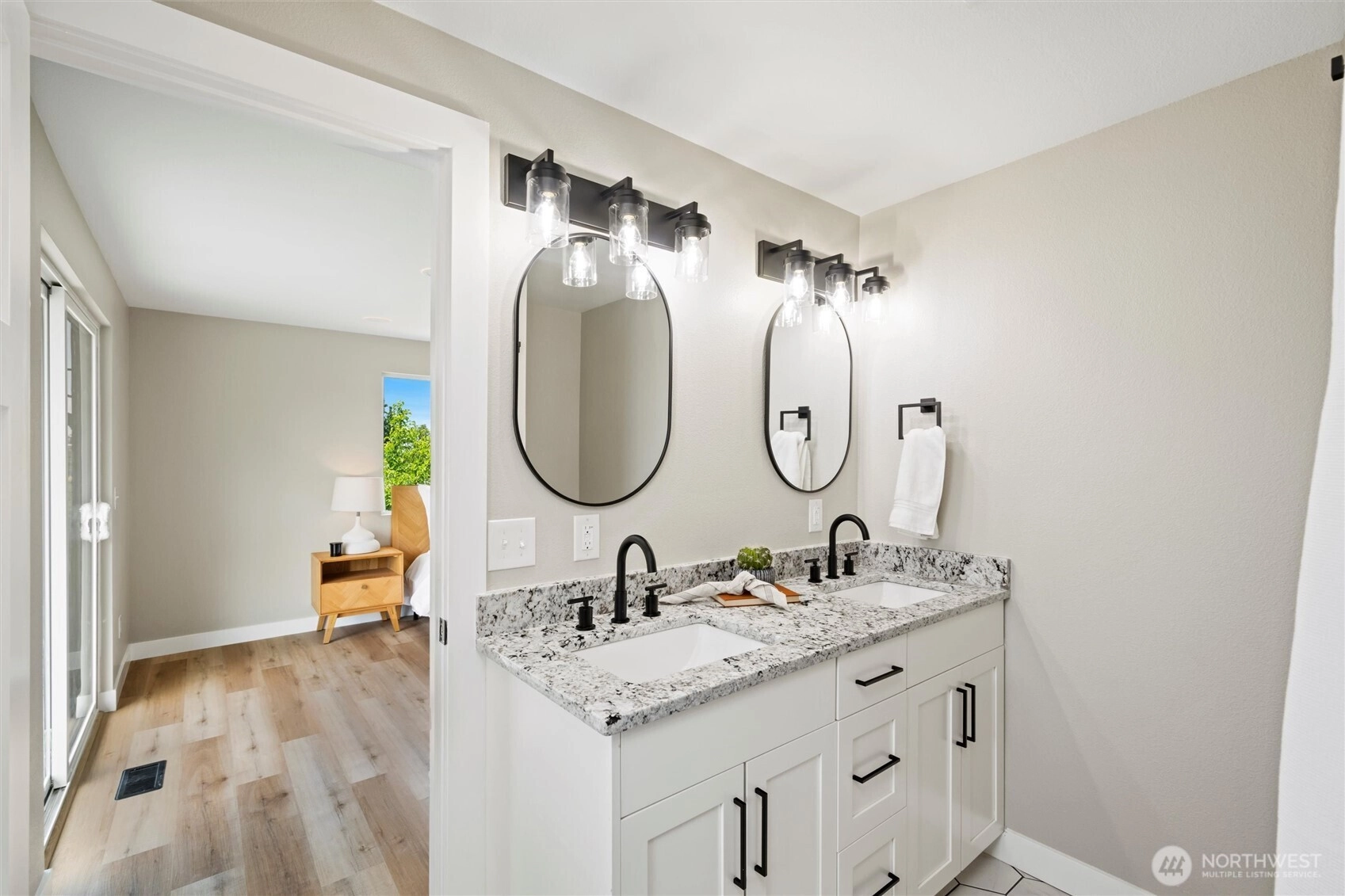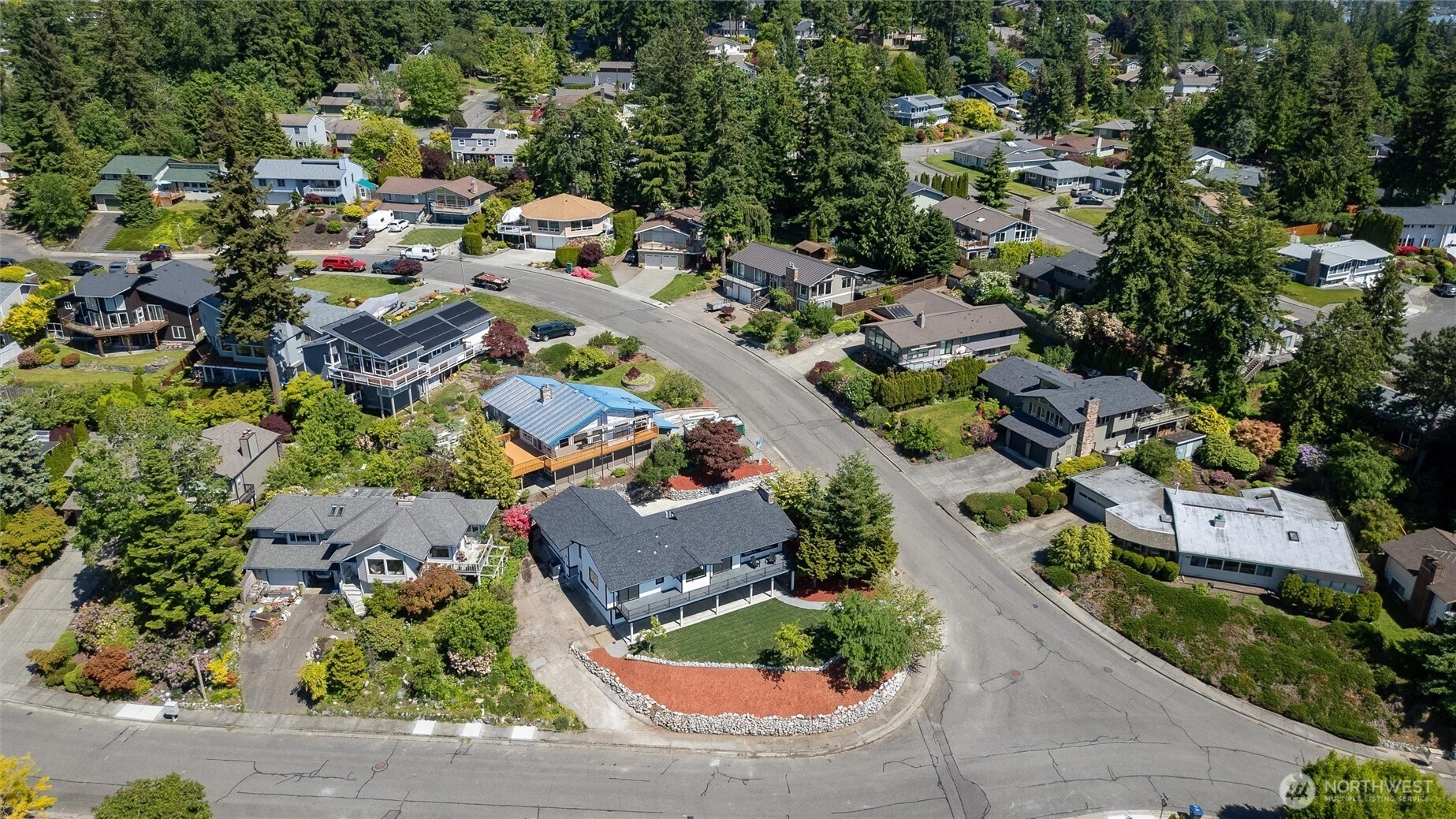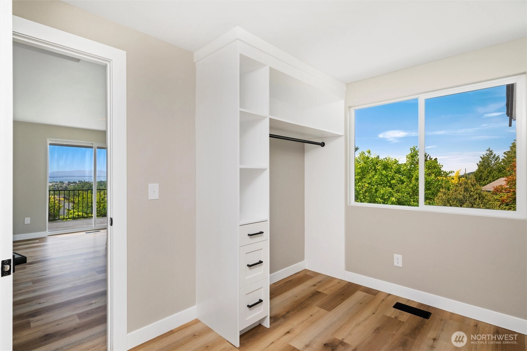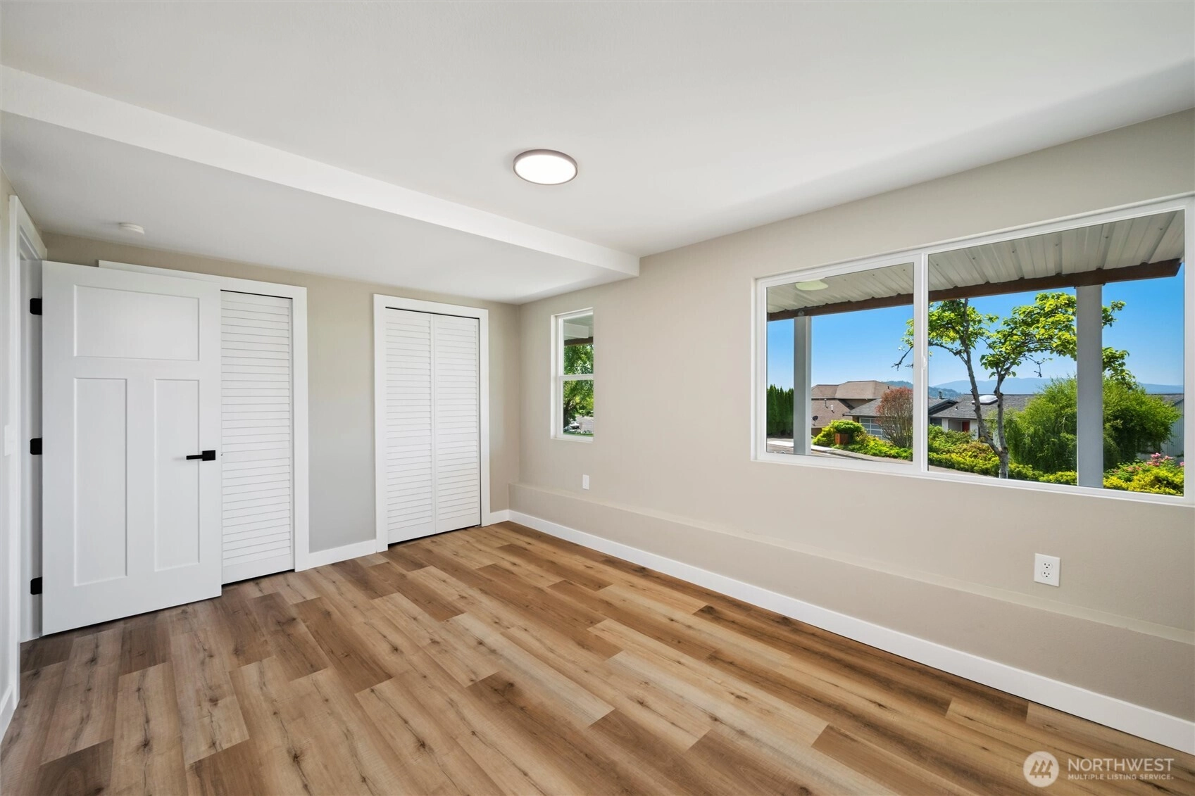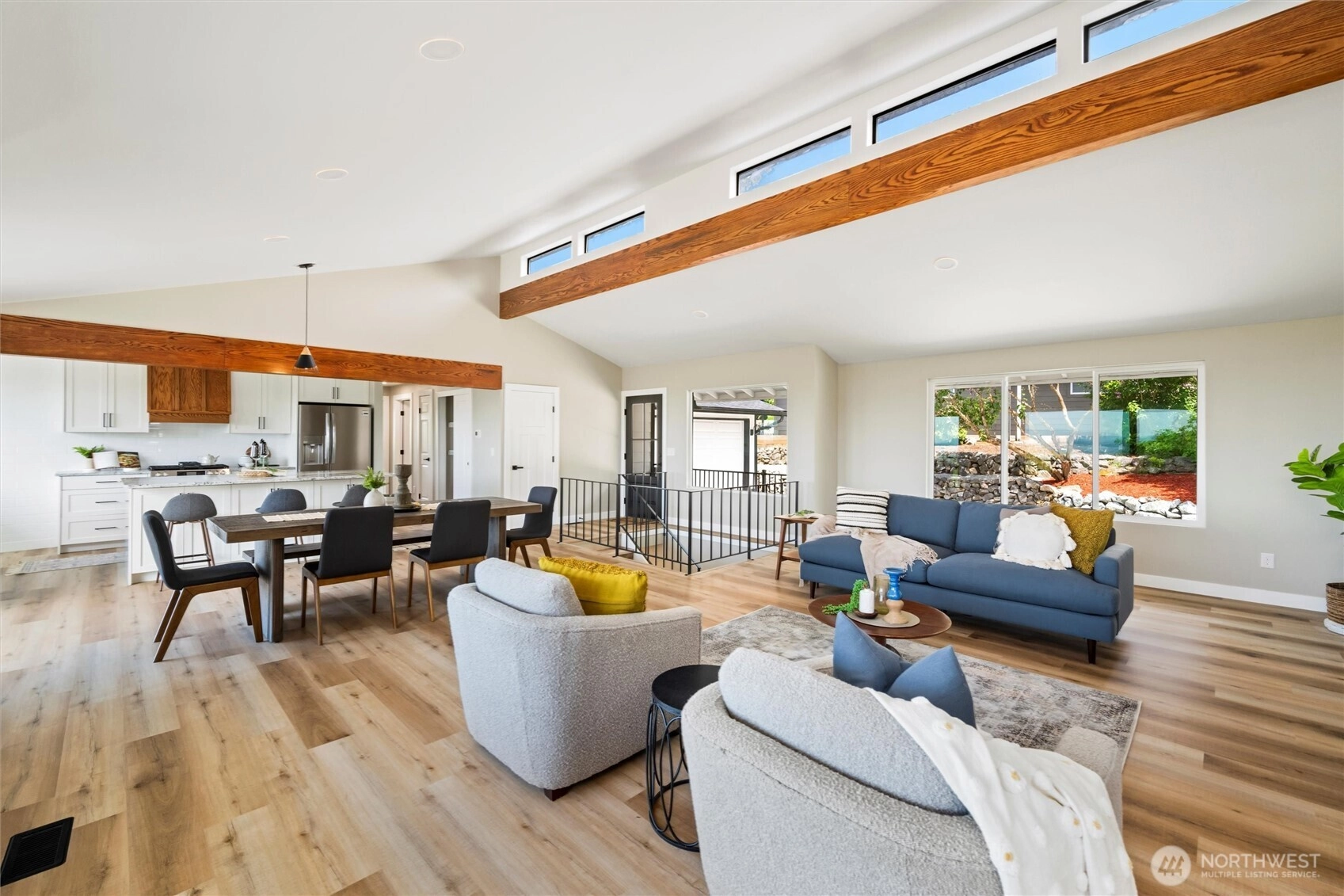 Exquisite Bellingham home with panoramic city & bay views. Vaulted ceilings and expansive windows fill the open-concept living space with light, warmed by gas fireplaces on each level. The primary suite offers deck access, ensuite bath, and walk-in closet with in-room laundry. A versatile main-level bonus room leads to the attached two-car garage. The lower level features a second full living area with walk-out yard access and its own laundry—ideal for guests or multi-gen living. Just minutes from Lake Whatcom and a short stroll to the Interurban Trail system, with the distinction of being in one of the area’s top-rated school districts. Updates include new roof, furnace, ss appliances, deck, patio, driveway, and more. A must-see retreat!