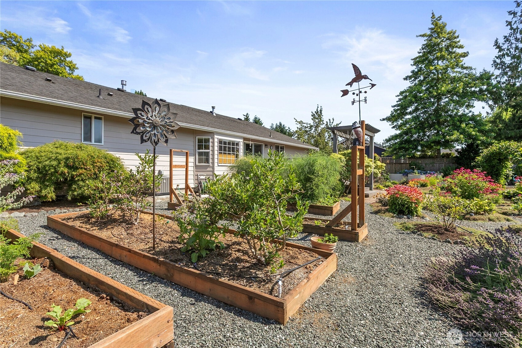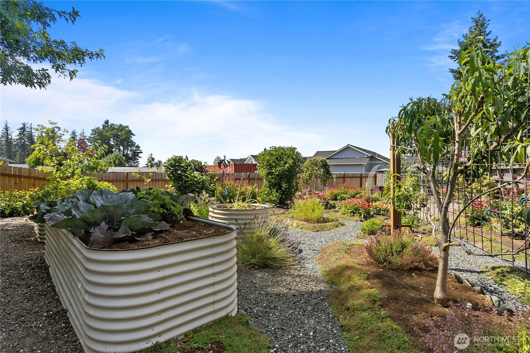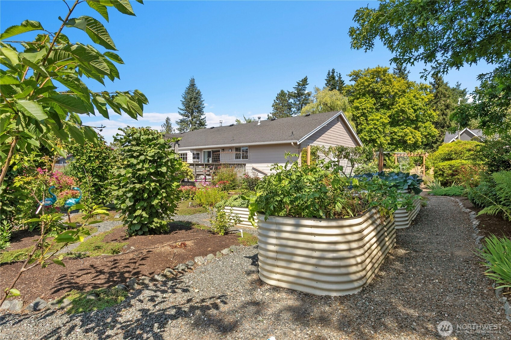 Step into this beautifully maintained 3-bedroom, 2.25-bath home featuring gleaming hardwood floors and elegant granite countertops. The spacious kitchen flows seamlessly into a large dining room—perfect for entertaining or hosting guests. Step outside to enjoy the peaceful back deck, which overlooks a meticulously landscaped yard filled with vibrant raised garden beds—with apple, peach, and fig trees, tons of berry varieties, lavender, veggies and many herbs, this is a true gardener’s paradise. Thoughtful updates and charming details throughout this home offer both comfort and functionality in a serene setting. Don't miss the opportunity to make this well-cared-for gem your own!