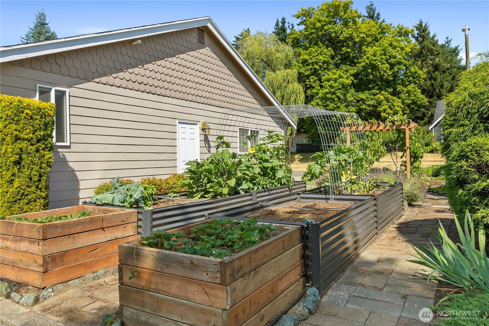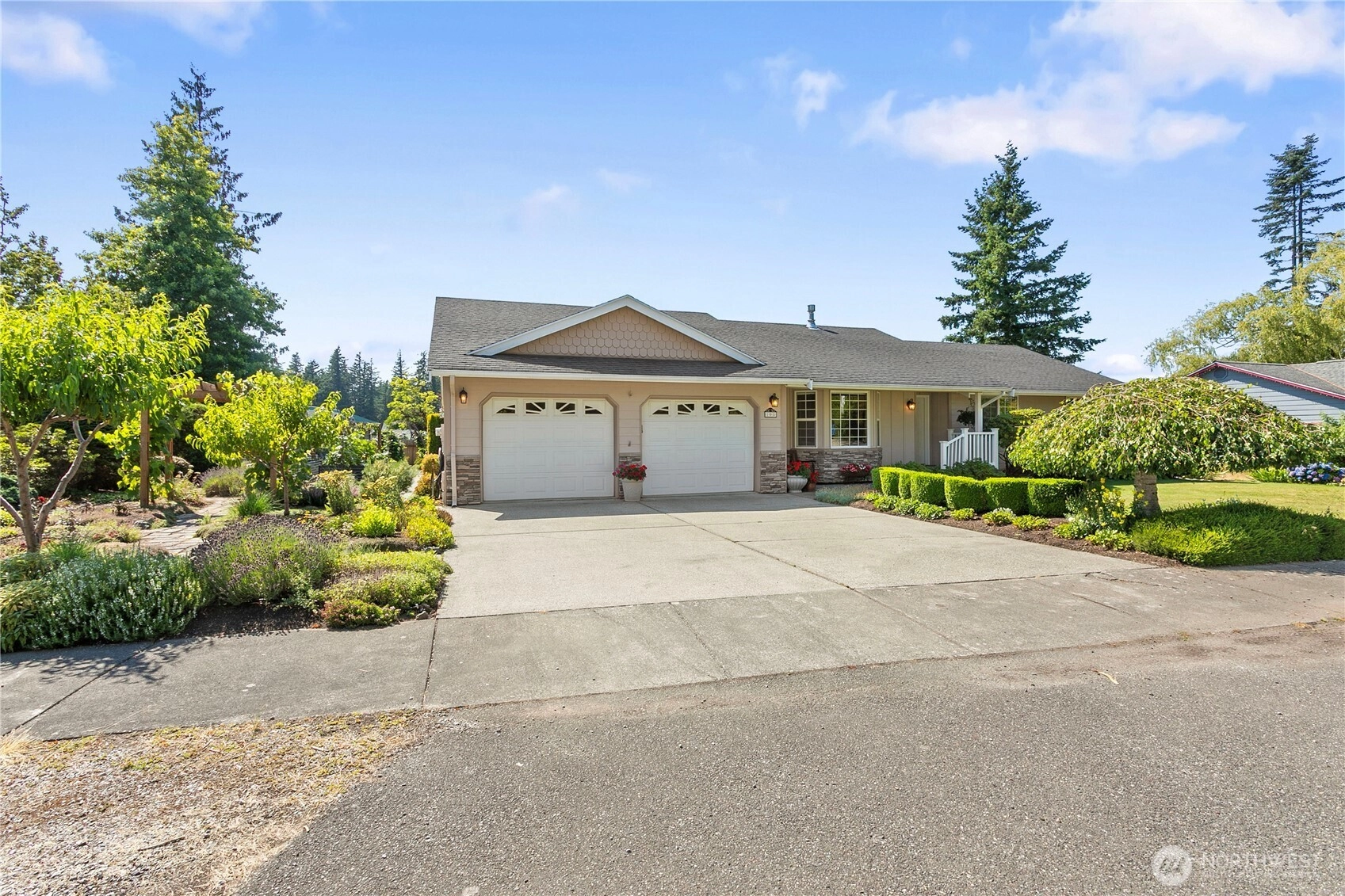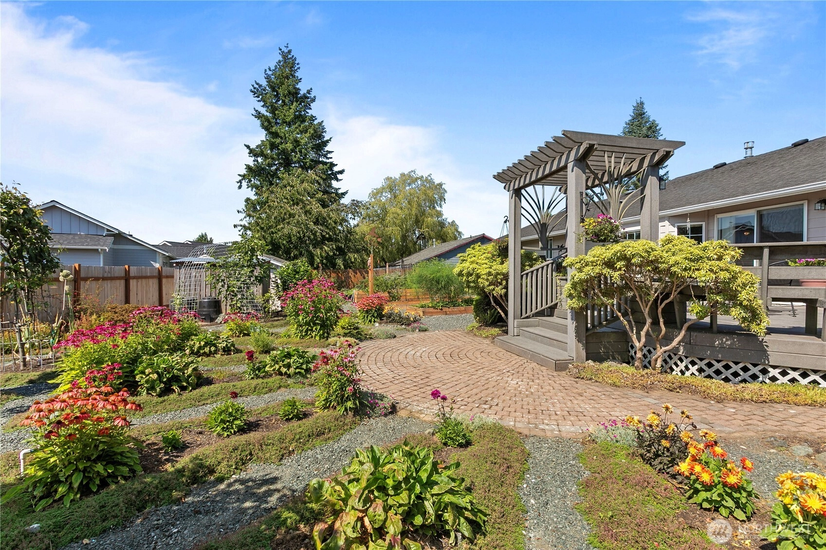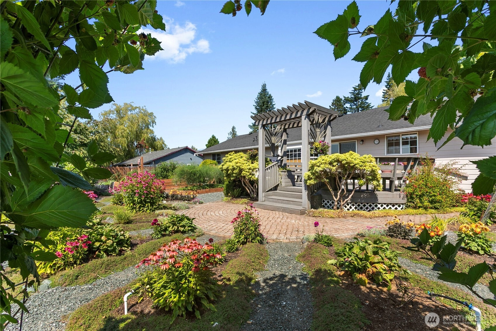 Step into this beautifully maintained 3-bedroom, 2.25-bath home featuring gleaming hardwood floors and elegant granite countertops. The spacious kitchen flows seamlessly into a large dining room—perfect for entertaining or hosting guests. Step outside to enjoy the peaceful back deck, which overlooks a meticulously landscaped yard filled with vibrant raised garden beds—with apple, peach, and fig trees, tons of berry varieties, lavender, veggies and many herbs, this is a true gardener’s paradise. Thoughtful updates and charming details throughout this home offer both comfort and functionality in a serene setting. Don't miss the opportunity to make this well-cared-for gem your own!