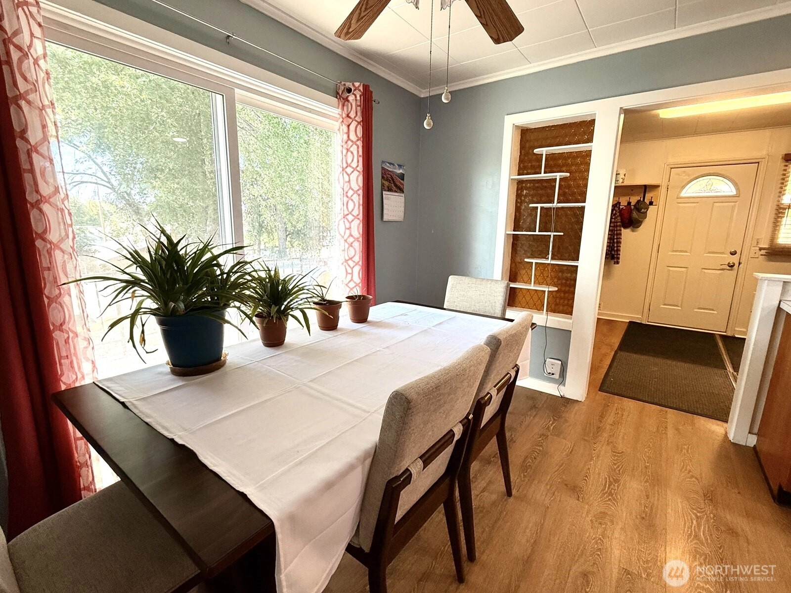 Discover this beautiful charming 3-bed, 1.75-bath home in Omak with recent upgrades. Features hardwood living room, kitchen with appliances, dining with slider to deck, utility room with W/D, pantry/office, and built-ins. Basement offers a family room, rec room with workshop and outside access, additional bedroom, and ¾ bath. Upgrades include a heat pump, new paint, flooring, fixtures, windows, electrical, plumbing, and water heater. Outside, enjoy a detached 2-car garage with wall heat pump, covered patio, front deck, and a landscaped, terraced yard with trees and garden space. A perfect blend of comfort and upgrades! Don’t miss the opportunity to make this move-in-ready home yours!
