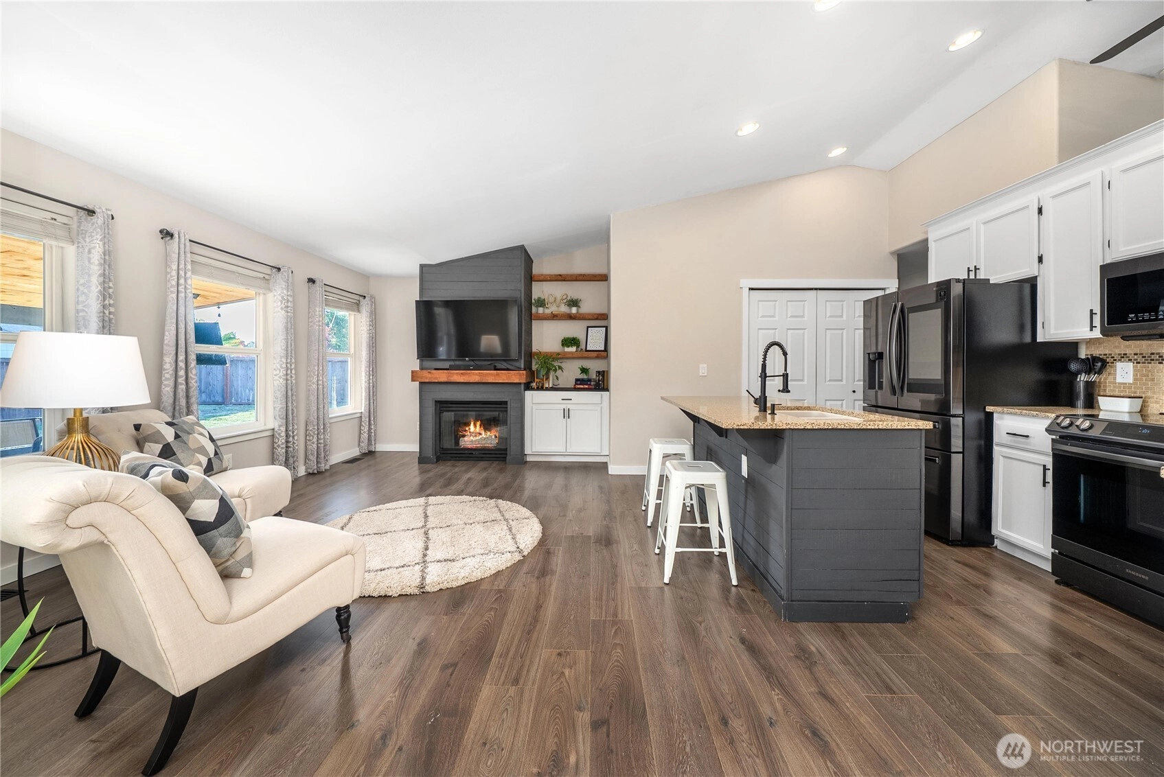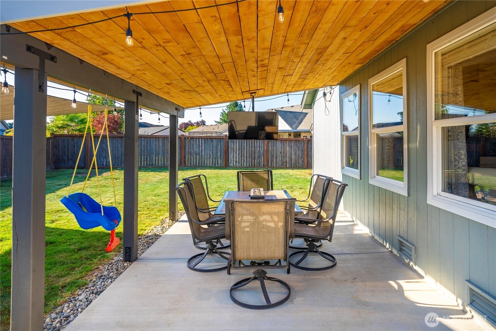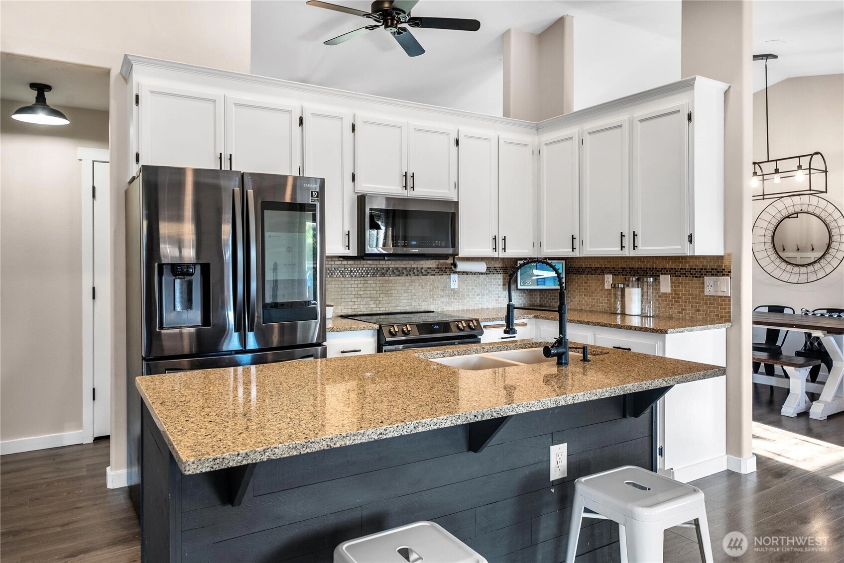 Compelling new price! The desirable Whitehawk neighborhood of Orting. Enjoy living in this highly sought-after small town with Mount Rainier as your scenic backdrop. Inside, you will be greeted by tall vaulted ceilings, walls of windows, and loads of natural light. The best floor plan features a great room, kitchen, and a lovely outdoor living space to create year-round memories. Find your zen here; check out your spacious primary suite. A long list of well-planned updates includes AC, RV parking with power, a generator hookup, a gas line for outdoor living and BBQ. New paint, vinyl plank floors, and numerous improvements a modern delight, move-in ready. Fully fenced backyard. Bring your toys load up for your weekend escape!