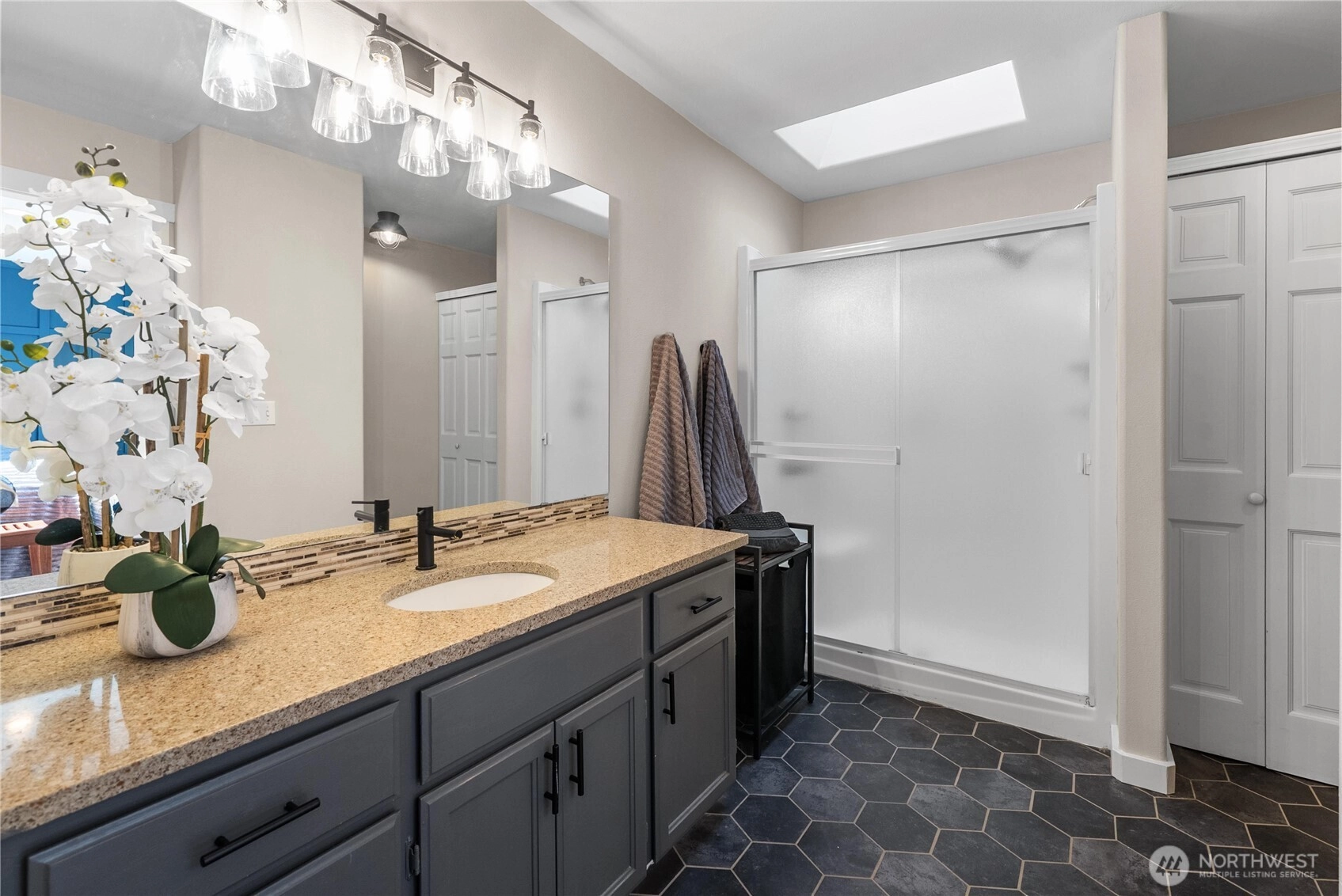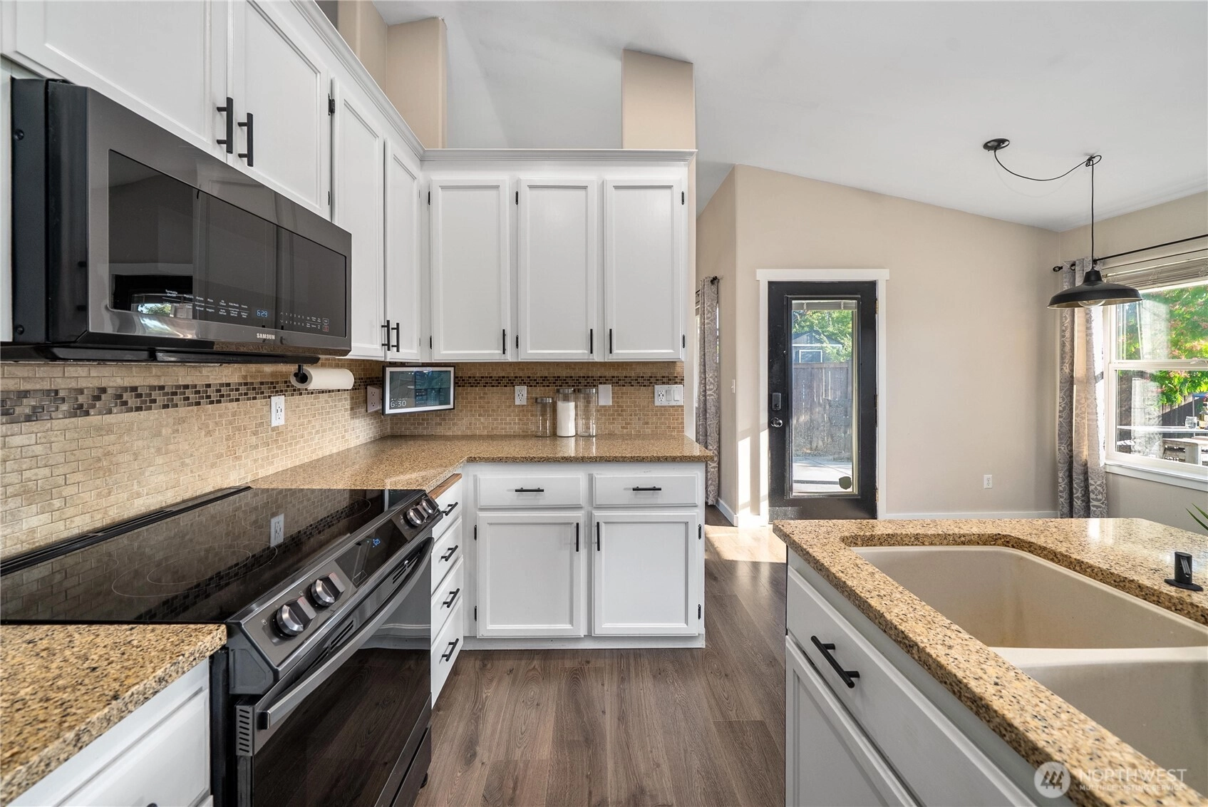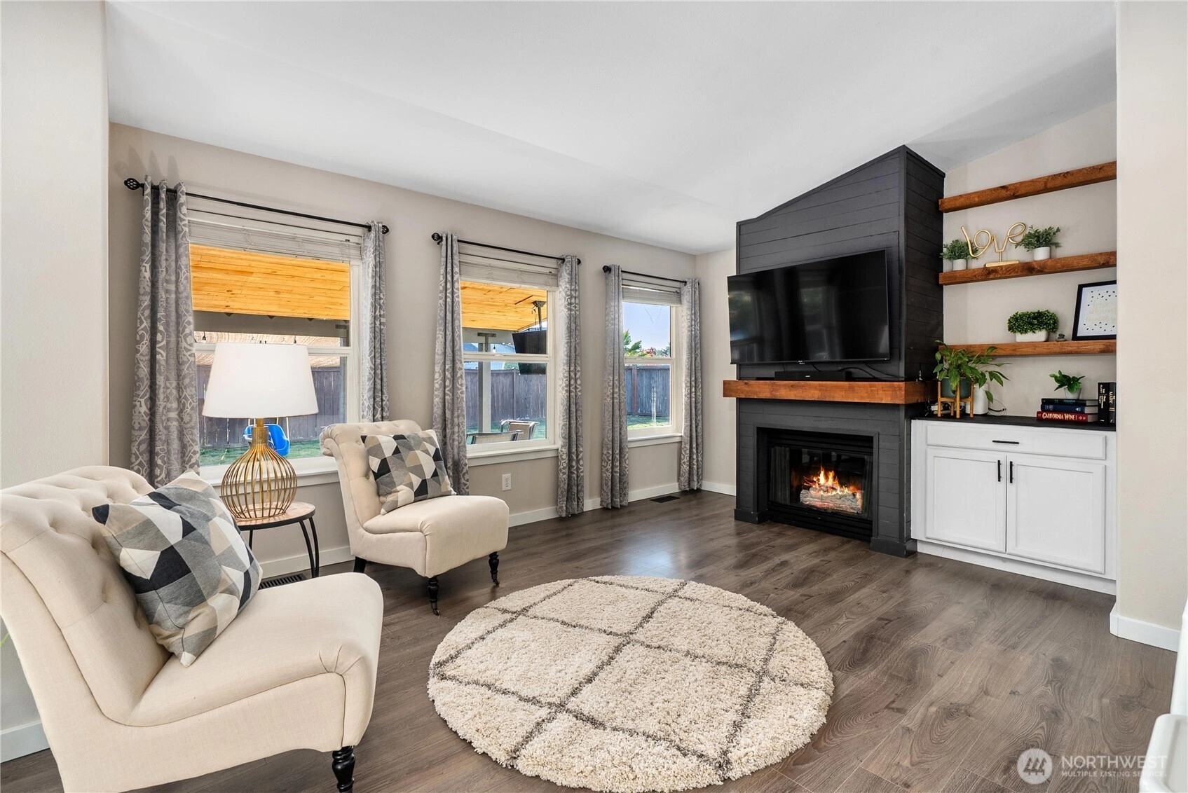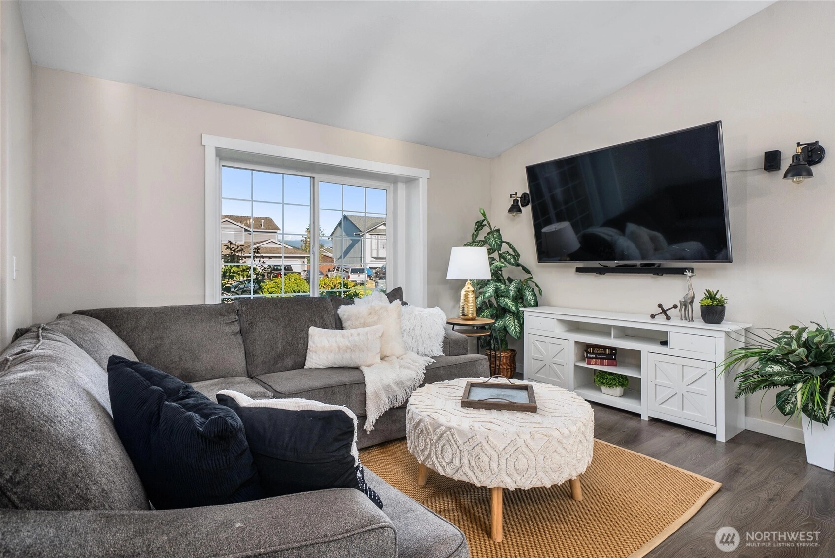 Compelling new price! The desirable Whitehawk neighborhood of Orting. Enjoy living in this highly sought-after small town with Mount Rainier as your scenic backdrop. Inside, you will be greeted by tall vaulted ceilings, walls of windows, and loads of natural light. The best floor plan features a great room, kitchen, and a lovely outdoor living space to create year-round memories. Find your zen here; check out your spacious primary suite. A long list of well-planned updates includes AC, RV parking with power, a generator hookup, a gas line for outdoor living and BBQ. New paint, vinyl plank floors, and numerous improvements a modern delight, move-in ready. Fully fenced backyard. Bring your toys load up for your weekend escape!