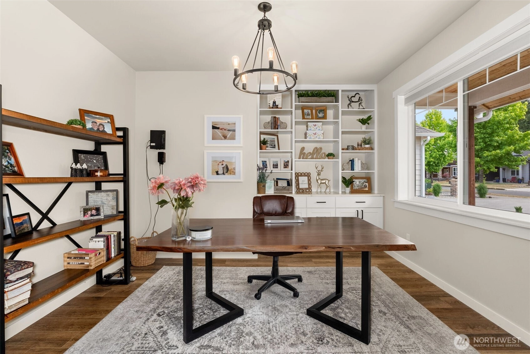 Beautifully customized home nestled in a quiet, tree-lined neighborhood just minutes from I-5 and 30 minutes to Olympia. Thoughtfully designed with no detail overlooked—enjoy a spacious great room with vaulted ceilings, an electric fireplace, and an open quartz island kitchen with pantry, perfect for entertaining. Dedicated office with built-in shelving. The primary suite features a large walk-in closet, additional closet, and a luxurious en suite with jetted soaking tub. Covered southern-style front porch and covered back patio offer year-round enjoyment. Oversized garage with room for working. A warm and welcoming neighborhood completes the package. A true must see if your looking for a luxurious style home for easy living.