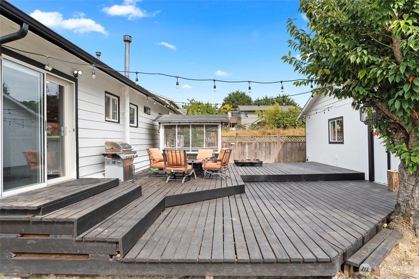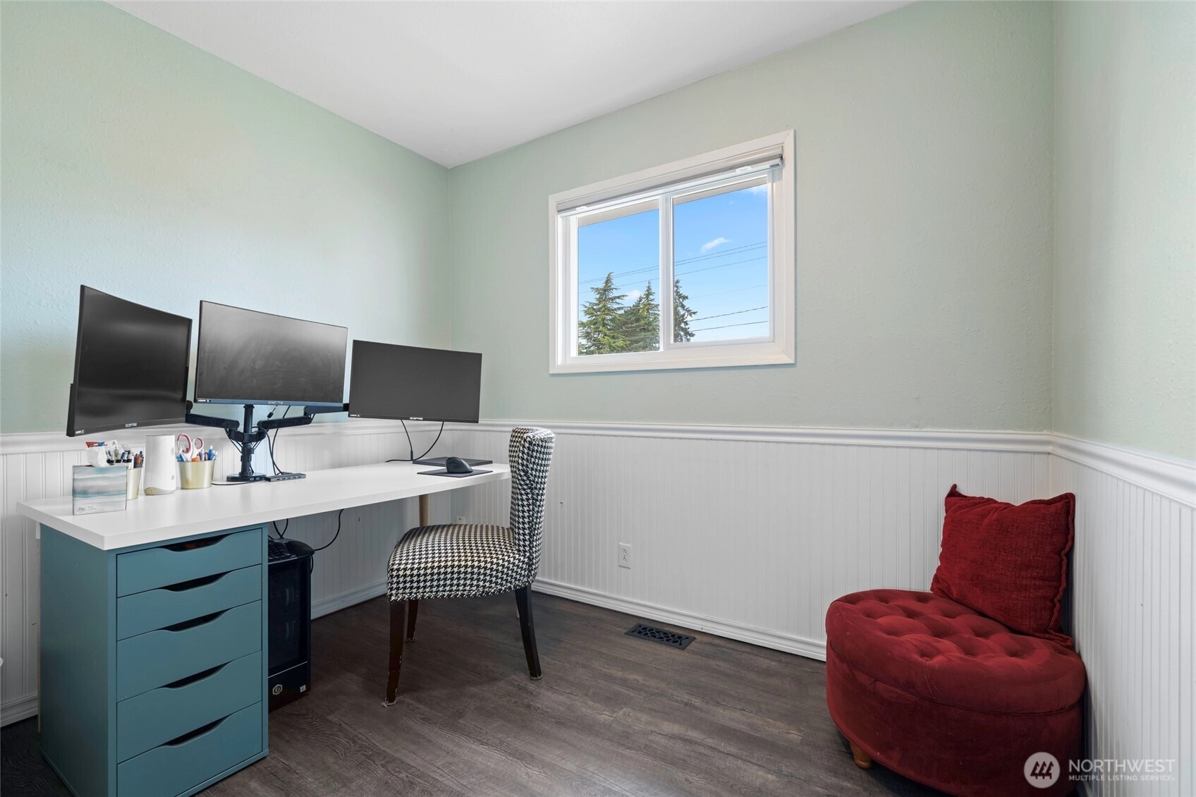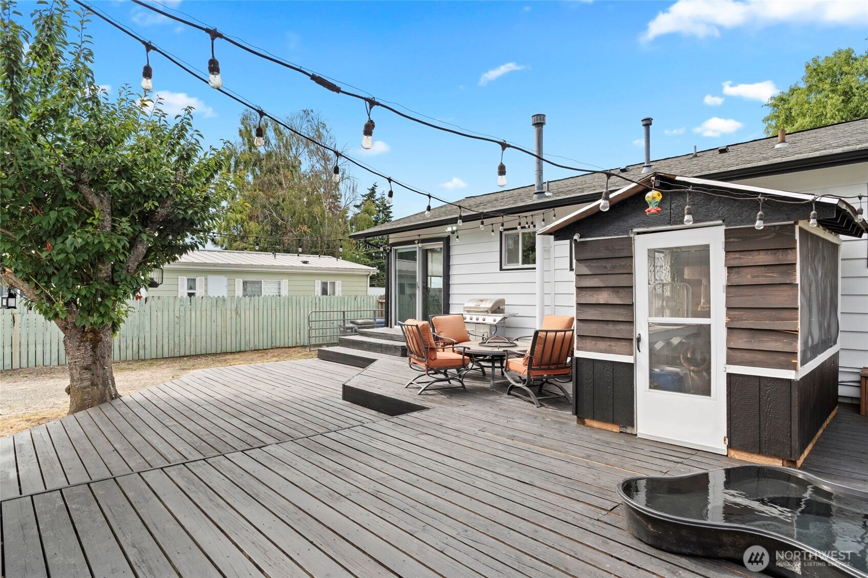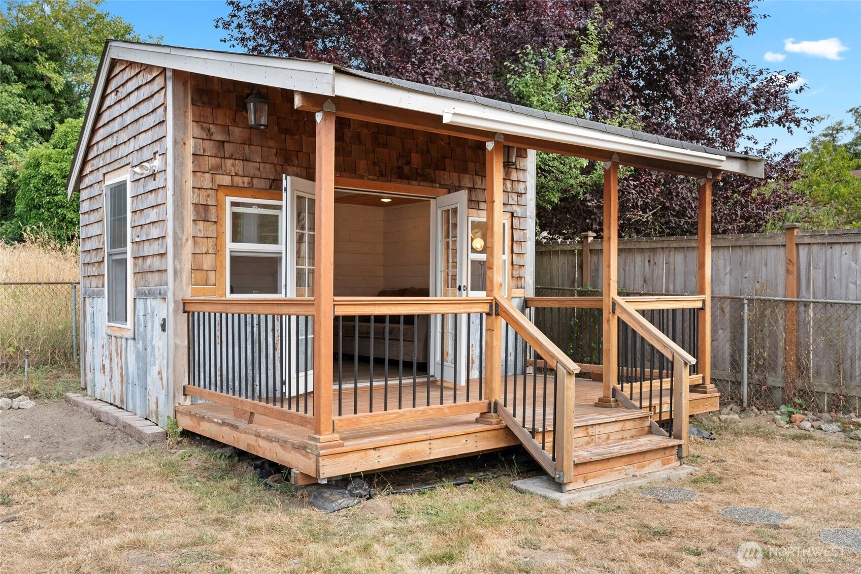 Enjoy the sunset from your front deck with partial Puget Sound & Olympic Mountain view. This cozy 3-bd, 1-bth home is nestled on a .32-acre level lot with ample room to expand. This is a one of a kind property in the area hosting a 1040 SF 3 car garage/shop, an adorable 140 additional SF detached heated office w/double doors, vaulted ceiling & covered front porch, fully fenced with solar powered automated gate entry, 600+ SF of decking for outdoor living w/greenhouse/"Catio", high efficiency appliances stay, ample room for RV’s, & minutes' drive to Salt Water State Park, the new Star Lake link light rail station, & SeaTac airport for travelers. Conveniently located for shopping, near bus line, & easy access to I-5. Agent related to seller.