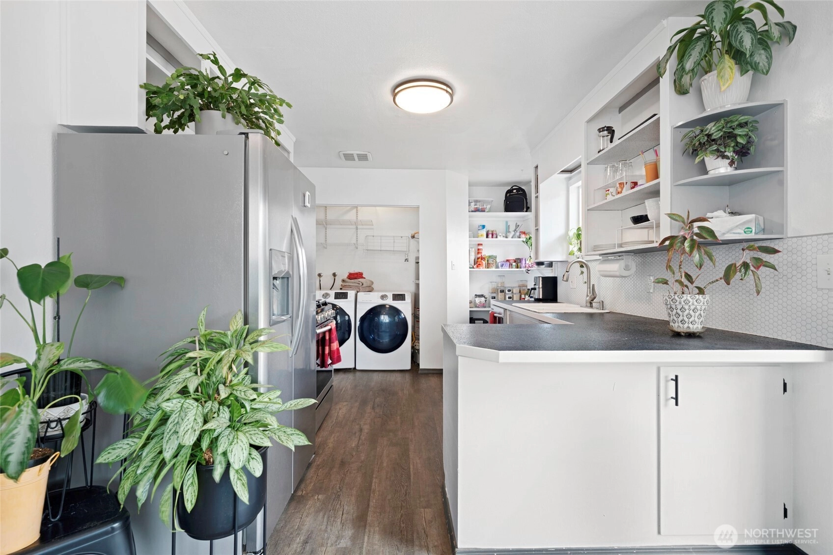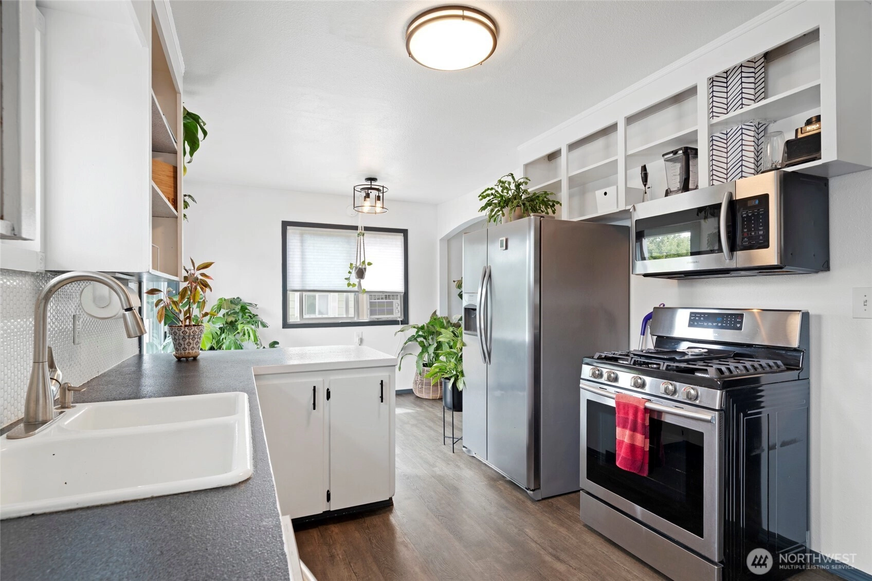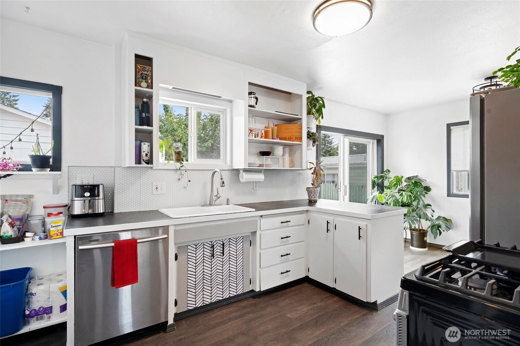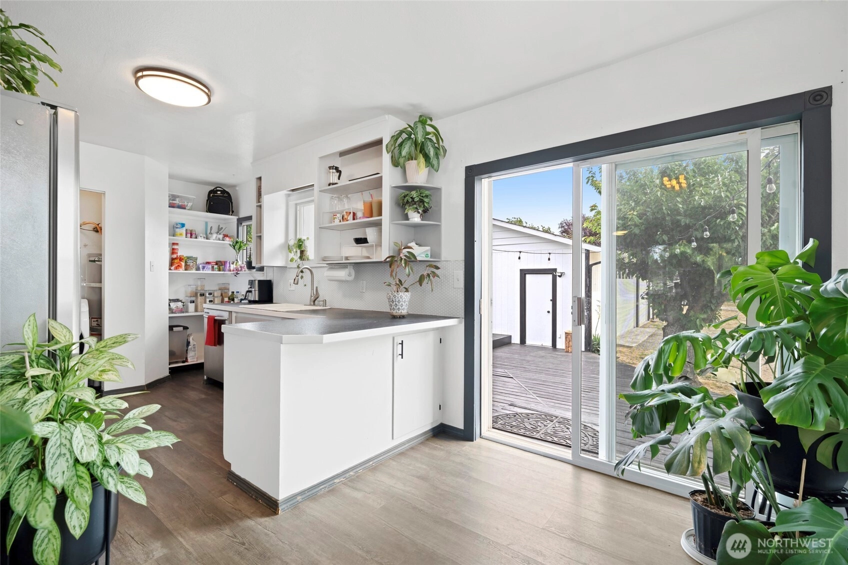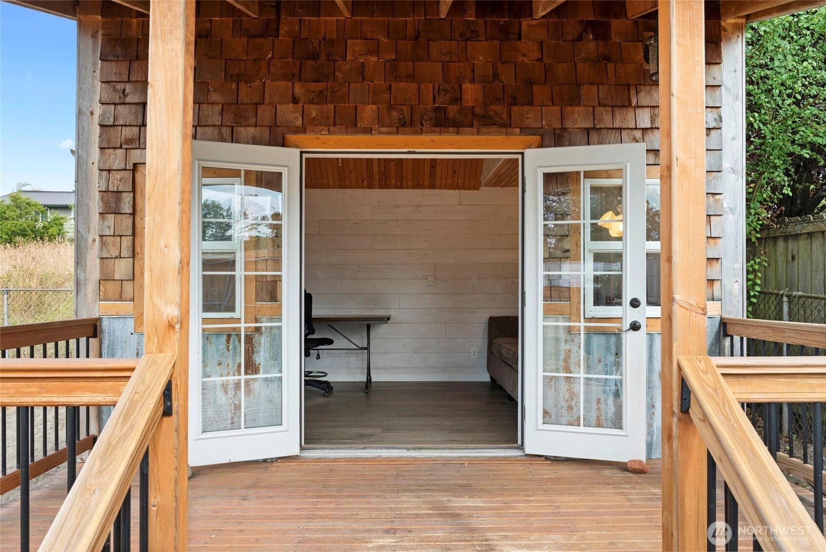 Enjoy the sunset from your front deck with partial Puget Sound & Olympic Mountain view. This cozy 3-bd, 1-bth home is nestled on a .32-acre level lot with ample room to expand. This is a one of a kind property in the area hosting a 1040 SF 3 car garage/shop, an adorable 140 additional SF detached heated office w/double doors, vaulted ceiling & covered front porch, fully fenced with solar powered automated gate entry, 600+ SF of decking for outdoor living w/greenhouse/"Catio", high efficiency appliances stay, ample room for RV’s, & minutes' drive to Salt Water State Park, the new Star Lake link light rail station, & SeaTac airport for travelers. Conveniently located for shopping, near bus line, & easy access to I-5. Agent related to seller.
