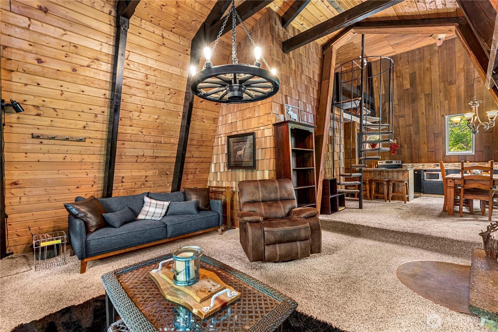 Nestled in the heart of nature, this secluded mountain retreat offers the perfect blend of privacy & comfort. This charming cabin features vaulted ceilings w/exposed beams, cozy pellet stove & sliding glass door that opens up to a spacious deck w/ hot tub. Thoughtfully designed layout includes 2 inviting bedrooms and a full bath on the main floor, while a loft & add'l bedroom upstairs provide ample space. Extra storage space beneath deck for all your gear. As part of the Pineloch Sun community, you’ll enjoy exclusive access to Lake Cle Elum’s beach, a welcoming lodge, seasonal swimming pool & sports courts. Enjoy endless trails, snowmobiling, boating & more! 15 min drive to Roslyn & Suncadia. Fully turn-key. Your next adventure awaits!