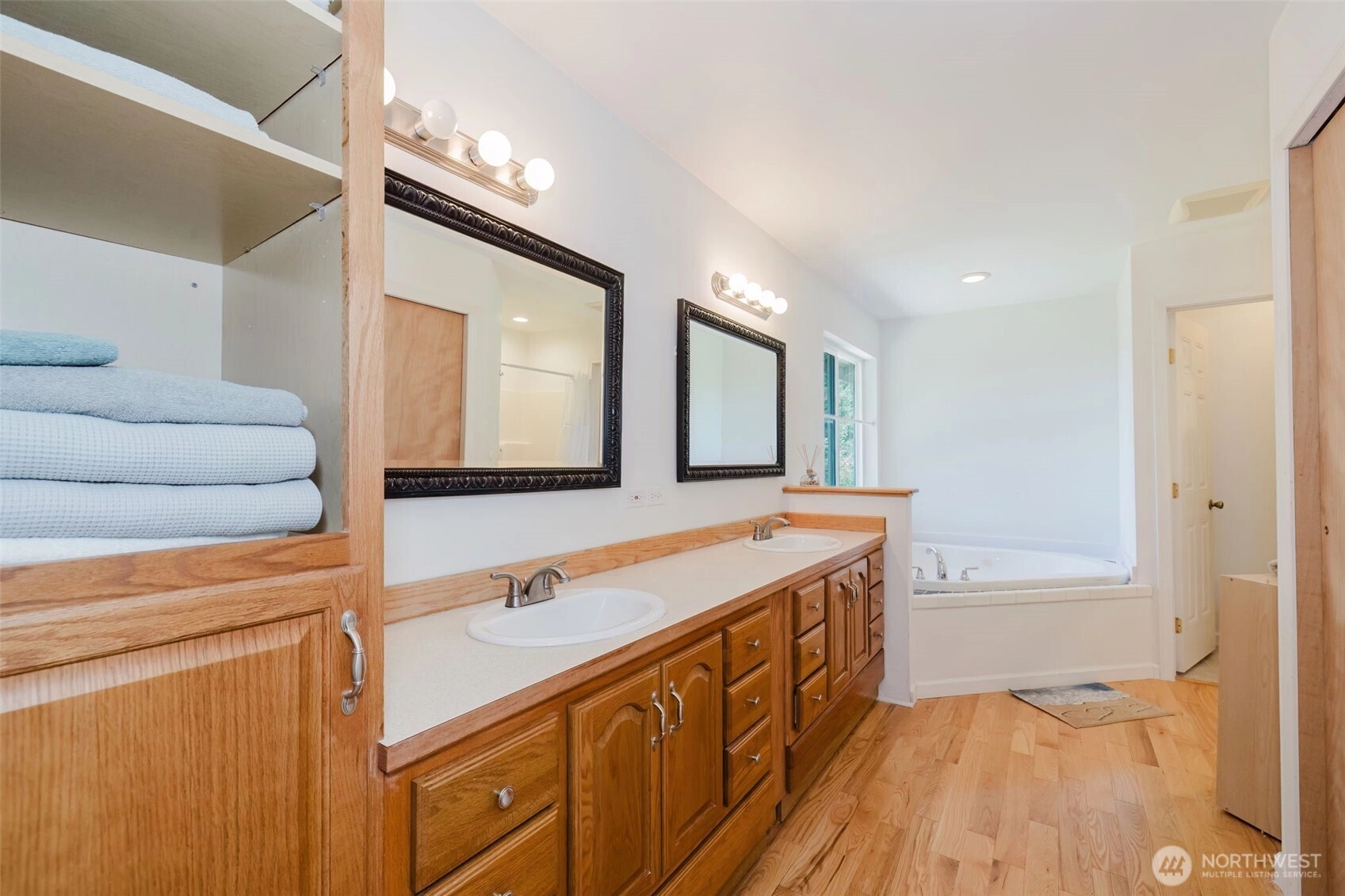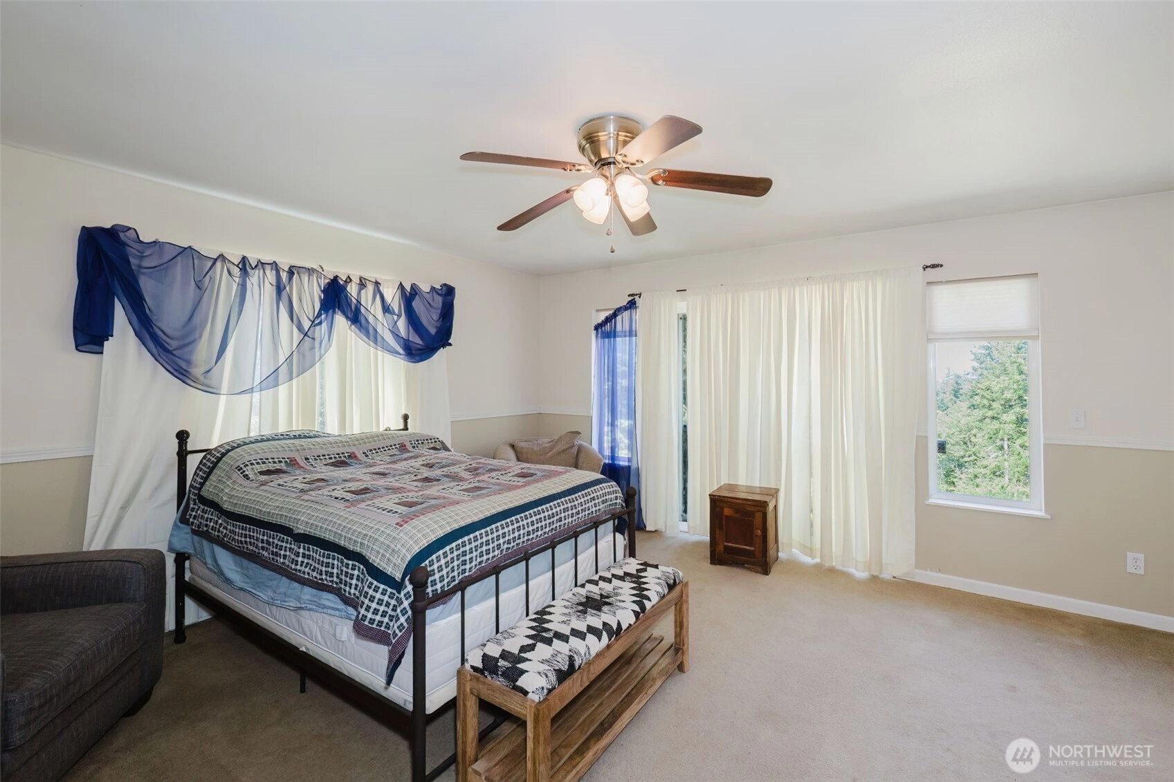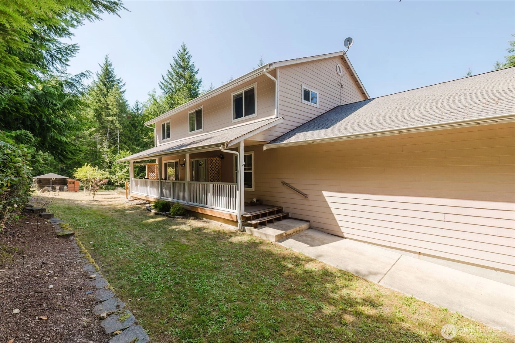 5 Bedrooms, yes 5! one on the main floor with a 3/4 bath. The other 4 Bedrooms and 2 full bathrooms upstairs. This home is on nearly 5 acres in peaceful Seabeck Neighborhood near the Seabeck Post office. Massive 2 car garage with 10 ft doors and paved outdoor parking. All appliances stay including W/D and a freezer in the utility/laundry room Well appointed Kitchen with a move around island, walk in pantry and vast counterspace and storage. Electric fireplace in living rooms adds coziness. Nice covered front deck to greet guests out of the rain.3 apple trees, coop area for chickens Plenty of land to put in vegetable or flower gardens