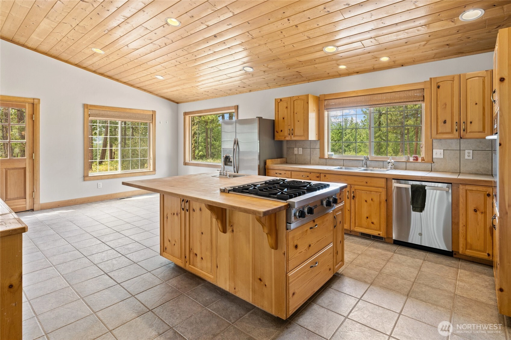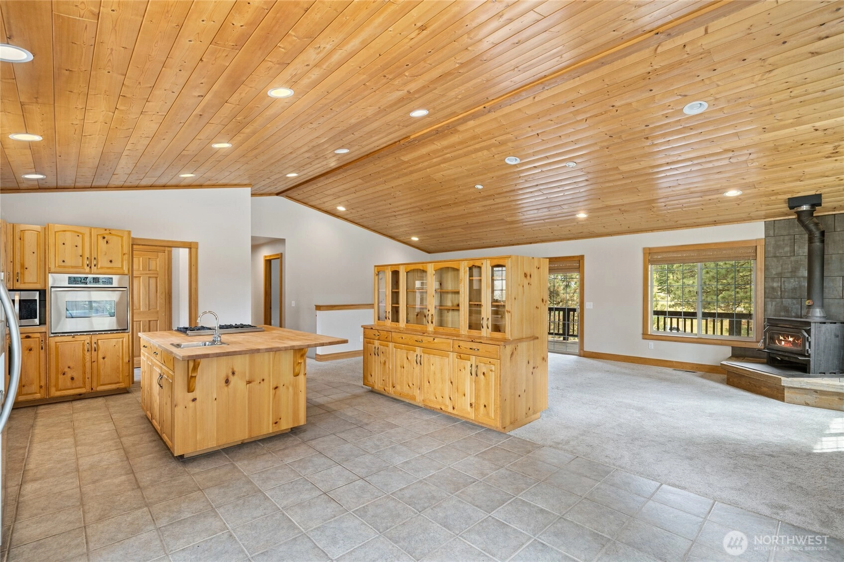 Stunning Teanaway valley view! over 3 acres of open space to watch the Sunsets behind the Stewart MT Range, wondering wildlife and wild turkeys. This unique daylight rambler offers vaulted pine ceilings with matching cabinets and butcher block island for all your cooking needs on the inset large gas Viking stove. Tile floors for easy maintenance. open living room with a wood burning stove to keep you warm all winter long. 3 bedrooms on the main floor with the primary bath boosting a large stone and , lass block shower and soaking tub. Lower level is a great room with second kitchen space or entertainment bar area. large shower room and a extra room or 4th bedroom with the utility area storage rooms and work station. Garage is 720 sq ft.