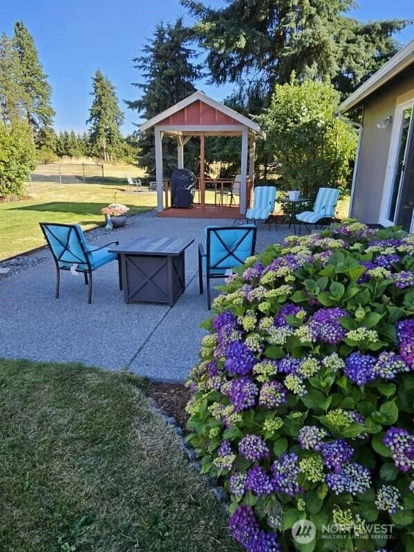 Come see this amazing home just minutes off of I-5 with all the privacy of country living. Original owners for turn key and move in ready home! Home has a completely fenced pasture for pets or livestock. Not to worry, AC keeps home nice and cool on hot summer days. Detached shop is perfect for storage, working or play! Two car garage attached to home means never having to get wet on rainy days taking in groceries. Back concrete patio area gets the afternoon shade and is perfect for relaxing, BBQs or entertaining. Sit in your private gazebo or enjoy s'mores by the fire pit on chilly nights. Custom hickory cabinets and quartz countertops in the kitchen is a beautiful upgrade. Separate living areas for the primary and other bdrms privacy.