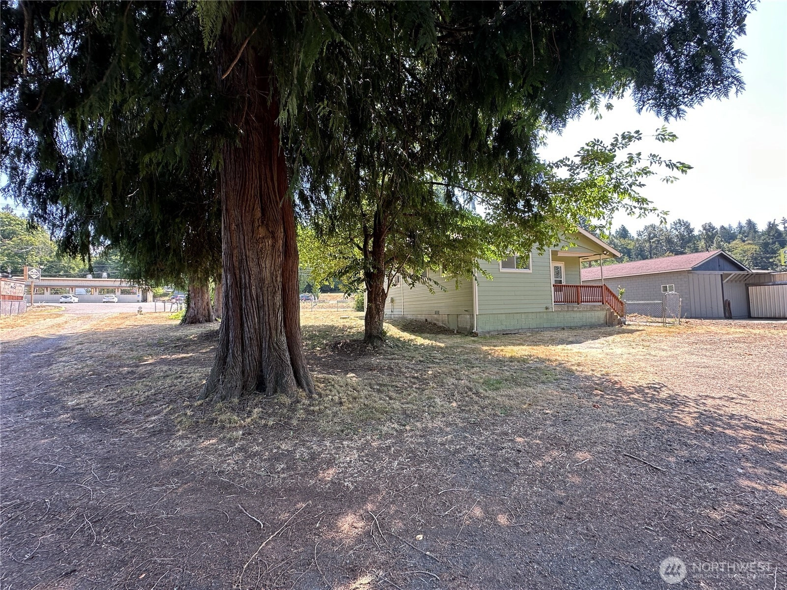 OPPORTUNITY awaits this HWY 3 home located in Belfair. The 3 bedroom 1 bath home with large trees, views of Hood Canal & the Olympic mountains offers various options. The level area of the property has plenty of space for future development. The access to the wetland area on the lower level of the property has been opened up for you to see. Whether you are looking for a primary residence or a future business location, this home and property are a blank slate . The property includes two parcels and is connected to sewer.