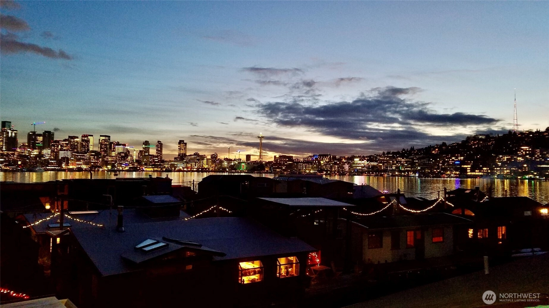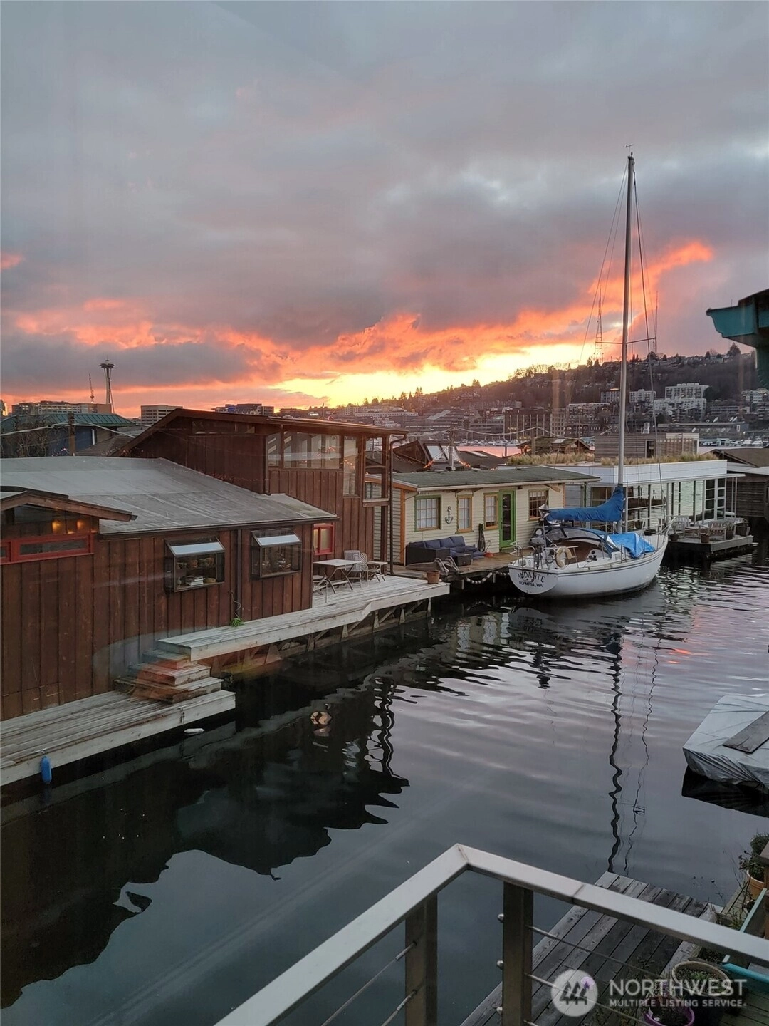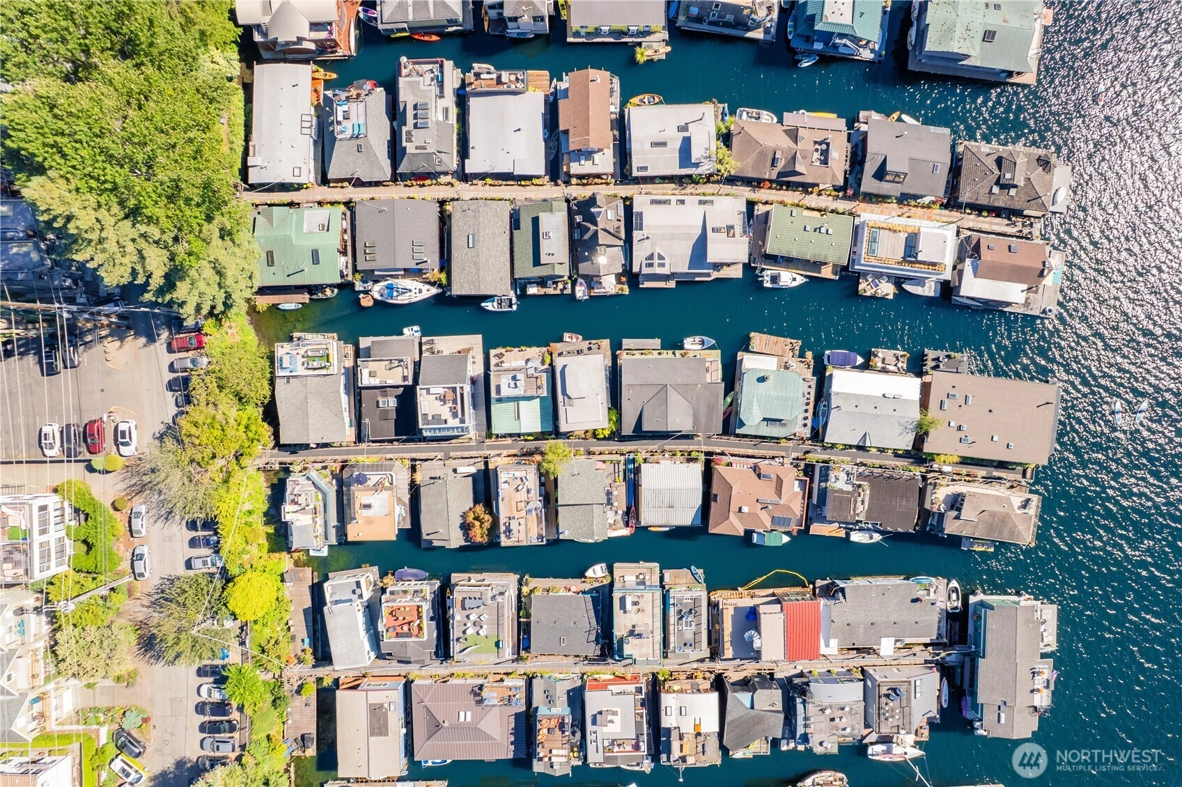 Stunning south-facing floating home in the heart of Eastlake w/ city, mountain, & Space Needle views! This beautifully updated two-story residence features 3 levels of decks including rooftop, luxurious upper-level primary suite w/ a spacious dressing room & private balcony. The main level boasts high-end remodeled kitchen w/ premium appliances, custom cabinetry, & elegant finishes - perfect for entertaining, light filled living room, & large bathroom. Expansive windows fill the home w/ natural light & capture iconic Seattle scenes. Enjoy the best of waterfront living w/ vibrant sunsets, boating, & a close-knit community. Rare opportunity to own a thoughtfully designed floating home in one of Seattle’s most desirable floating neighborhoods.