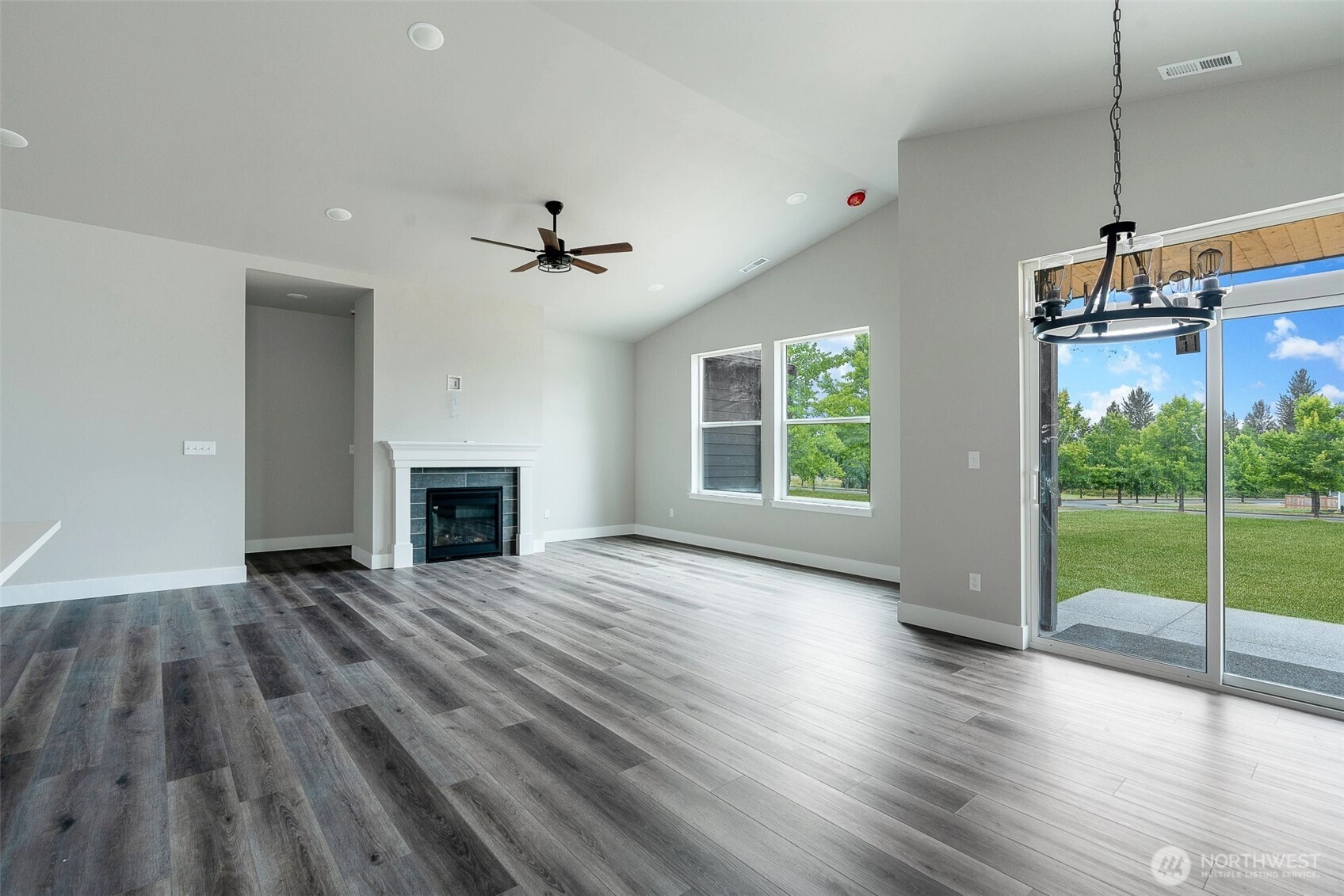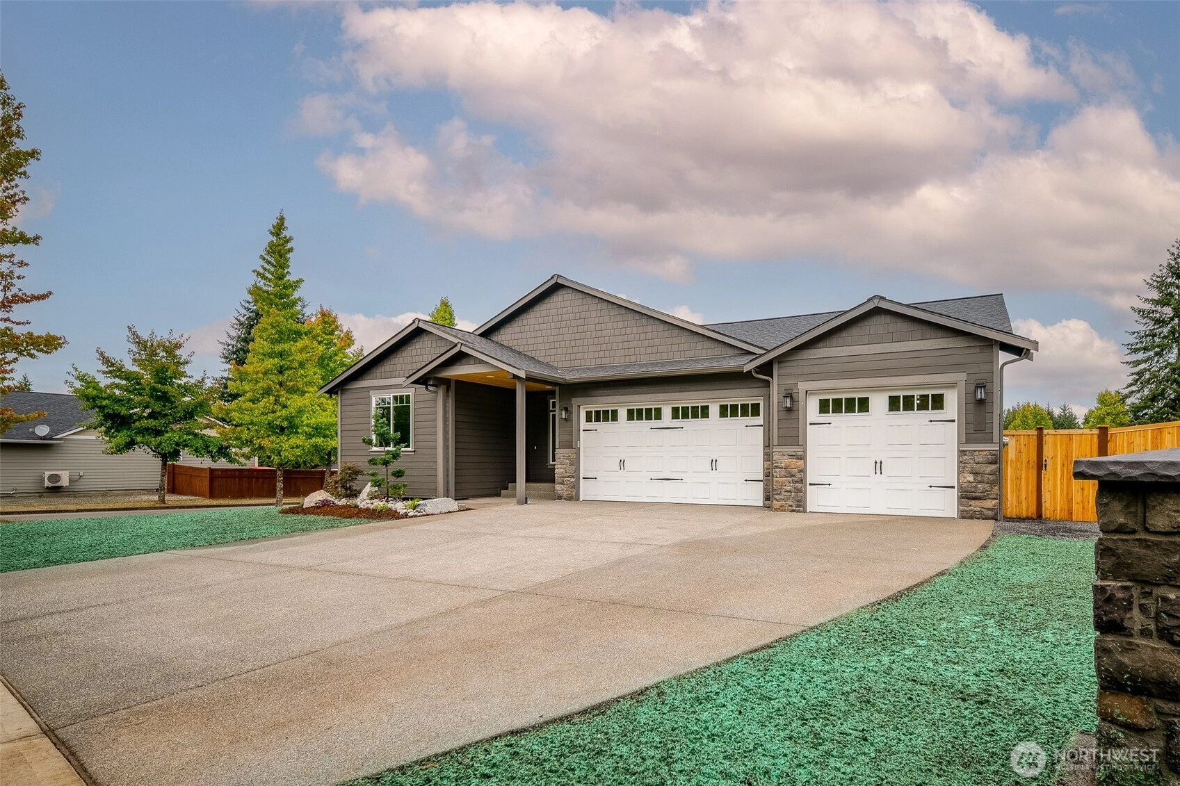 This newly completed 1-story home checks all the boxes! Situated on over 1/3+/- acre corner lot in Fox Run, this home features oversized 3-car garage with 33'+ deep 3rd bay. Step into LVP floors and an open great room with vaulted ceilings and cozy fireplace. The kitchen is open to great room and features large eating island for entertaining, gas range, beautiful full-height subway tile backsplash, and a massive pantry - a food lover's dream! The primary suite features full 5-pc bath with freestanding tub, separate shower, and walk-in closet. Full landscaping with irrigation and fenced yard included. Quality construction from long time builder Ron Deering Homes.
