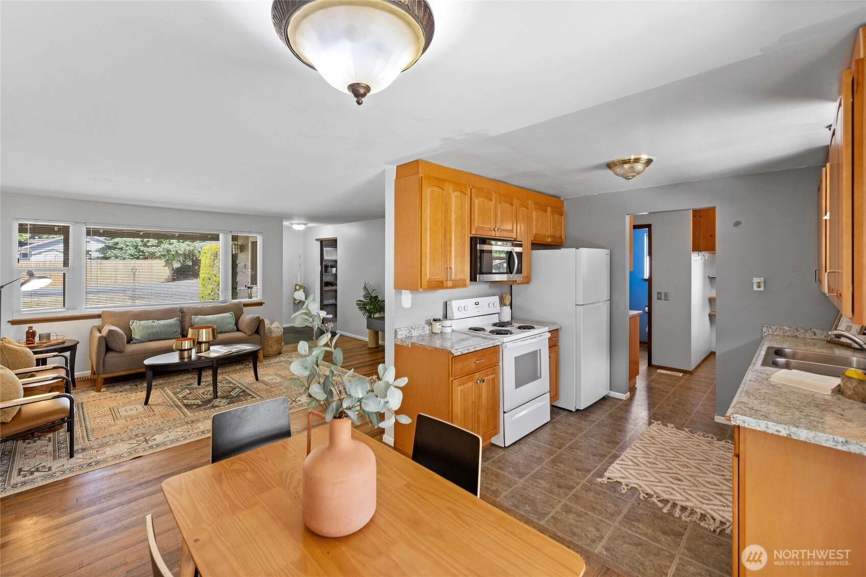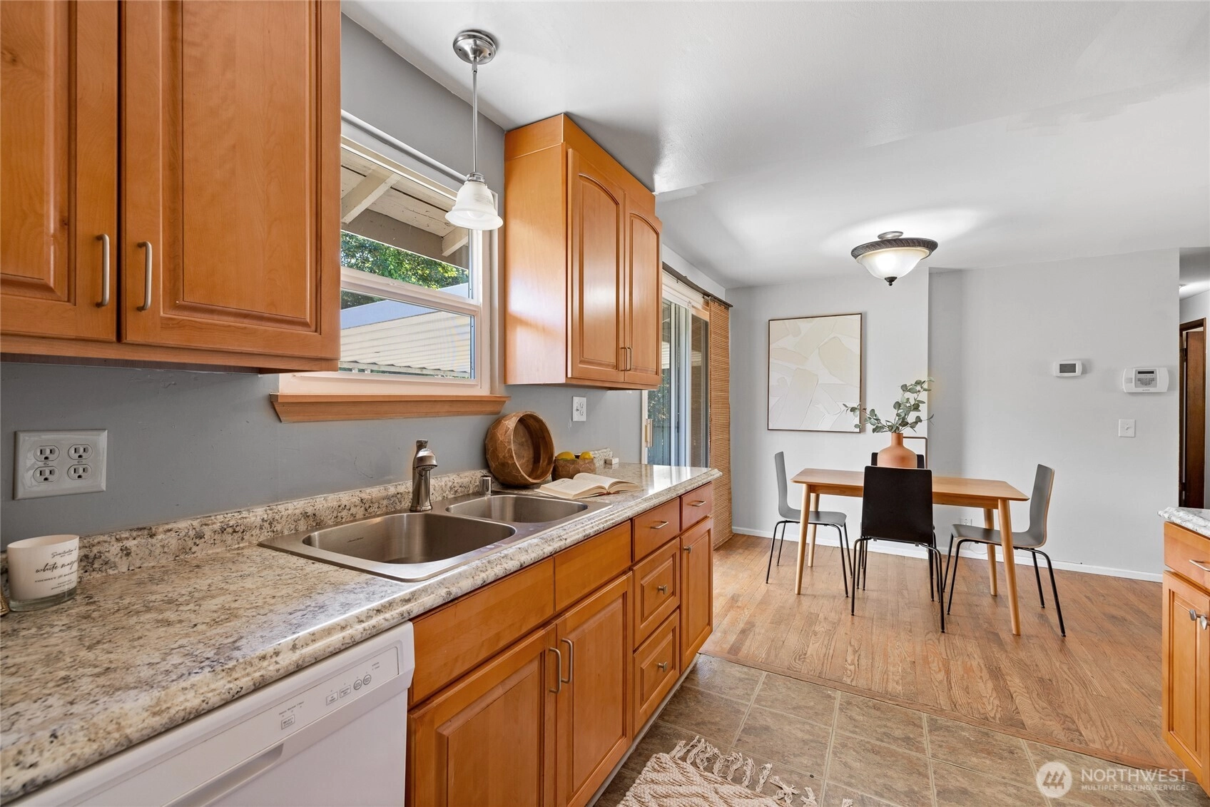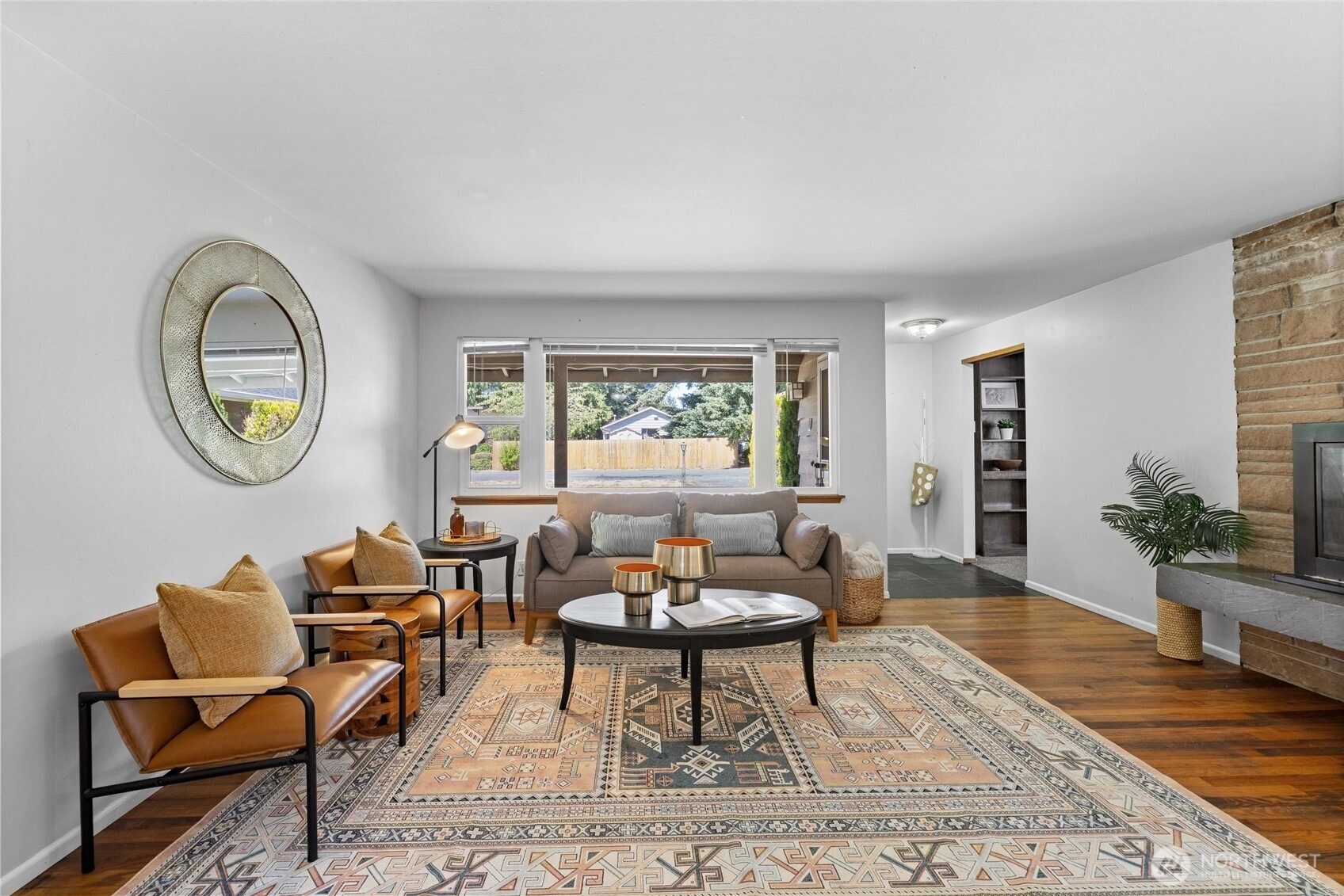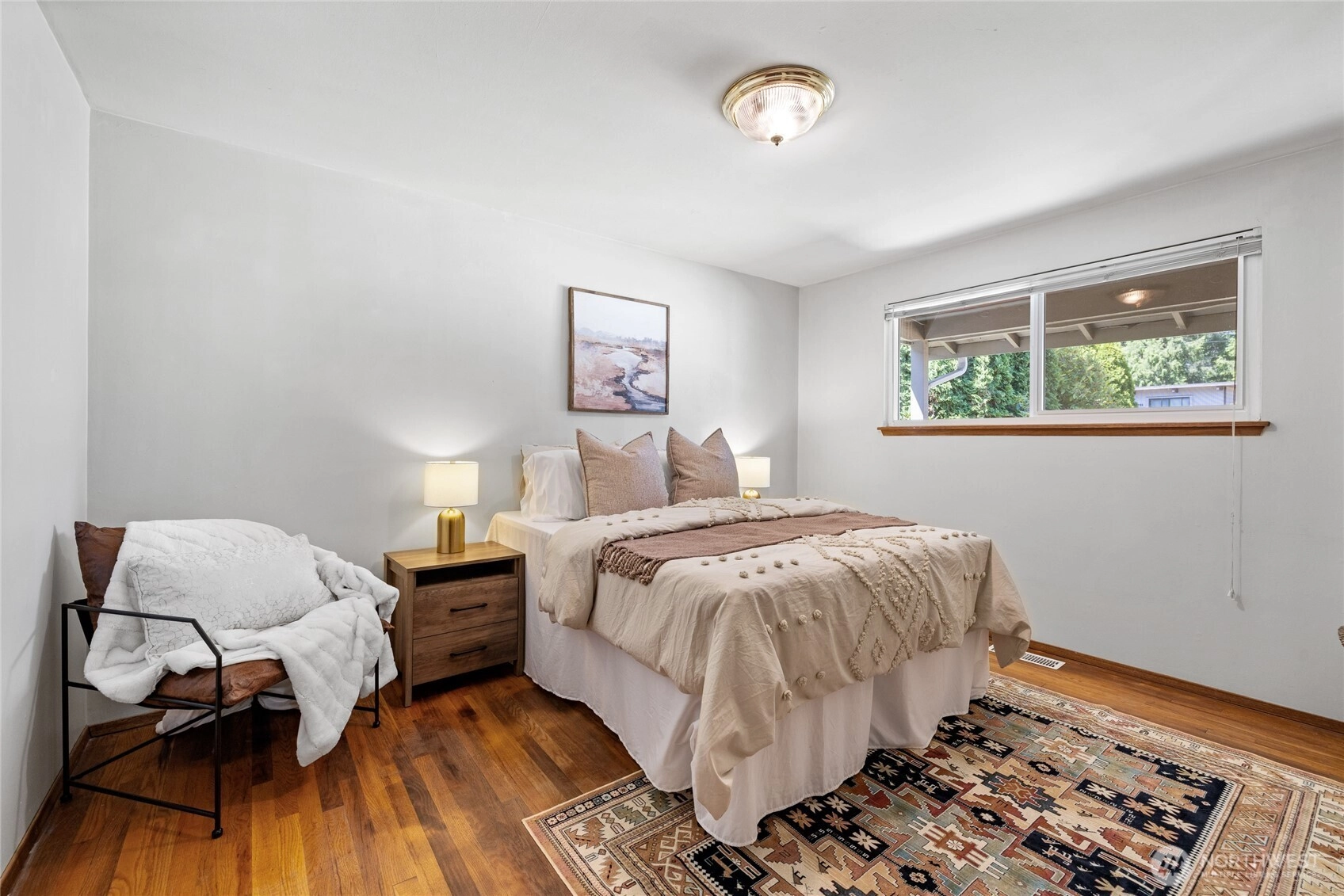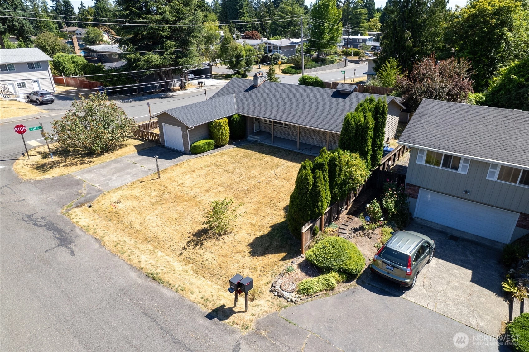 Charming rambler with a spacious yard, perfect for outdoor living and entertaining. Hardwood floors are a huge plus--no allergies! Fireplaces in both bonus room and living room creates quite the ambiance. Enjoy year-round relaxation on the covered patio and take advantage of coveted Angle Lake beach rights—ideal for summer fun, swimming, and paddle boarding. Convenient single-level living in a great location!
