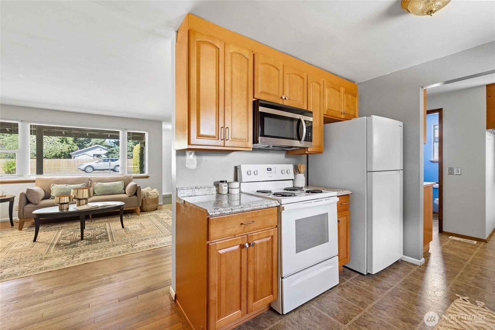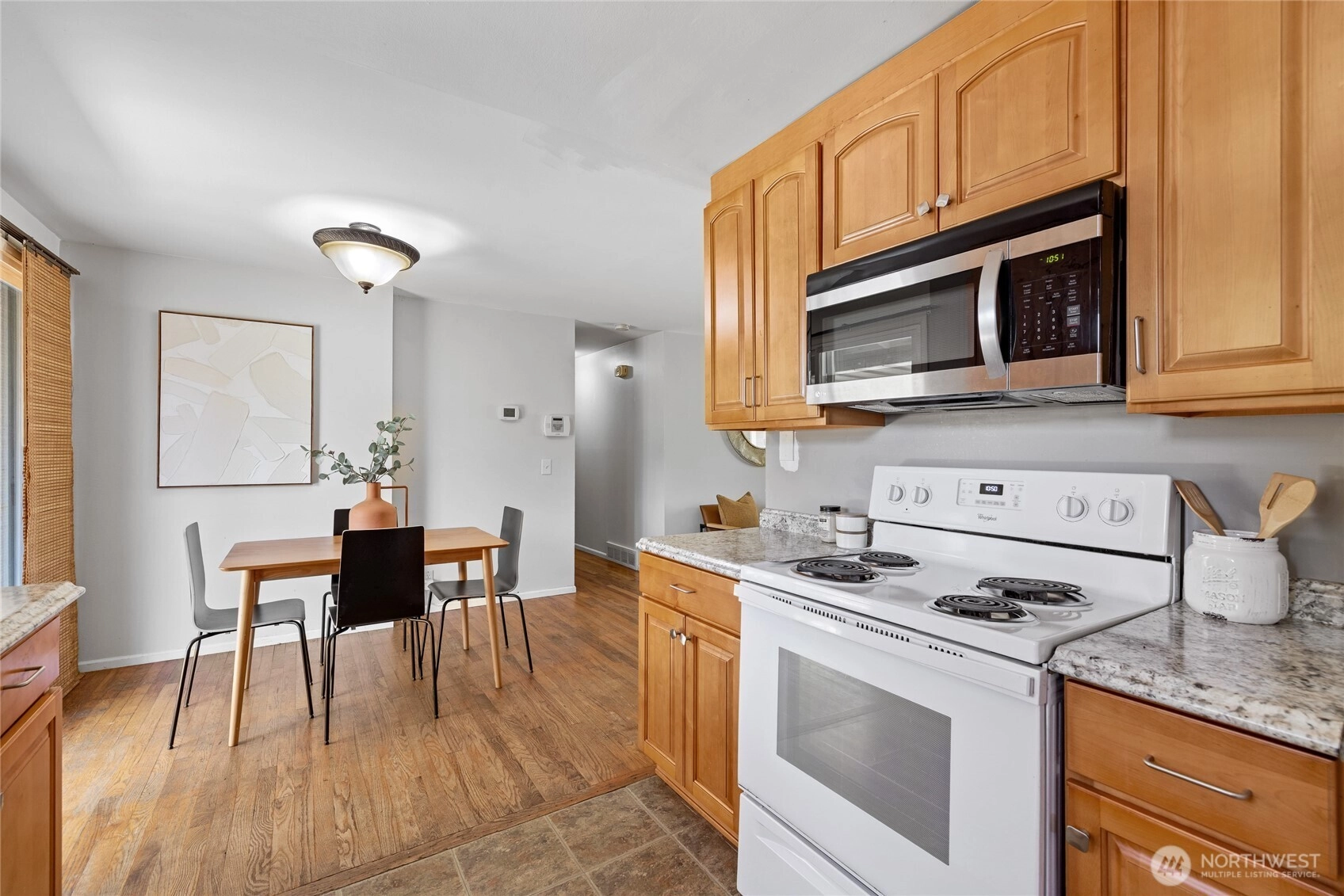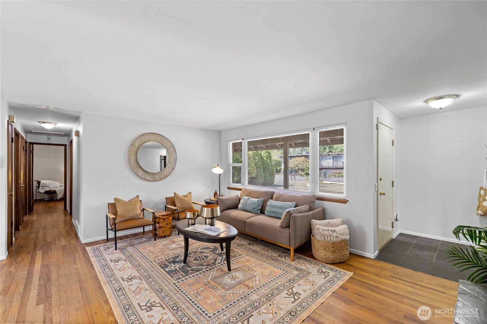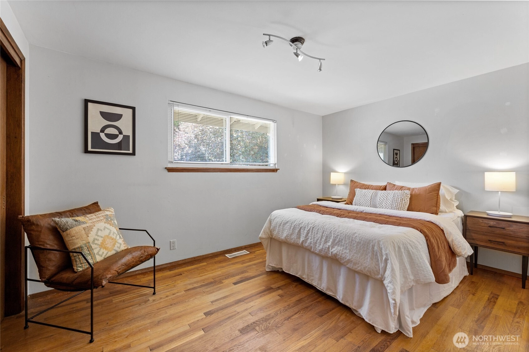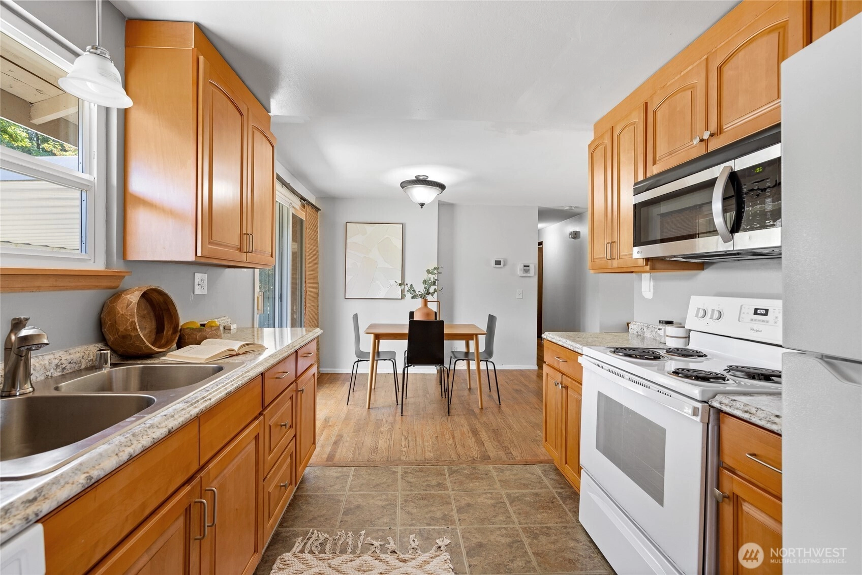 Charming rambler with a spacious yard, perfect for outdoor living and entertaining. Hardwood floors are a huge plus--no allergies! Fireplaces in both bonus room and living room creates quite the ambiance. Enjoy year-round relaxation on the covered patio and take advantage of coveted Angle Lake beach rights—ideal for summer fun, swimming, and paddle boarding. Convenient single-level living in a great location!