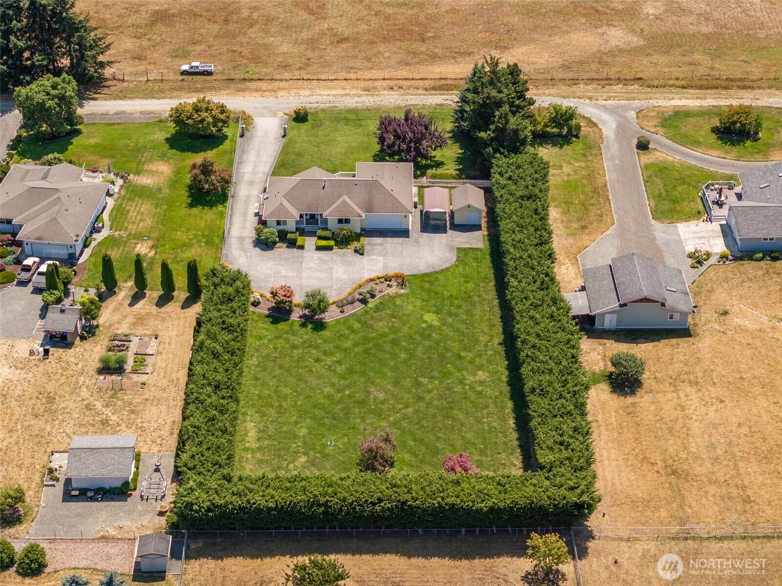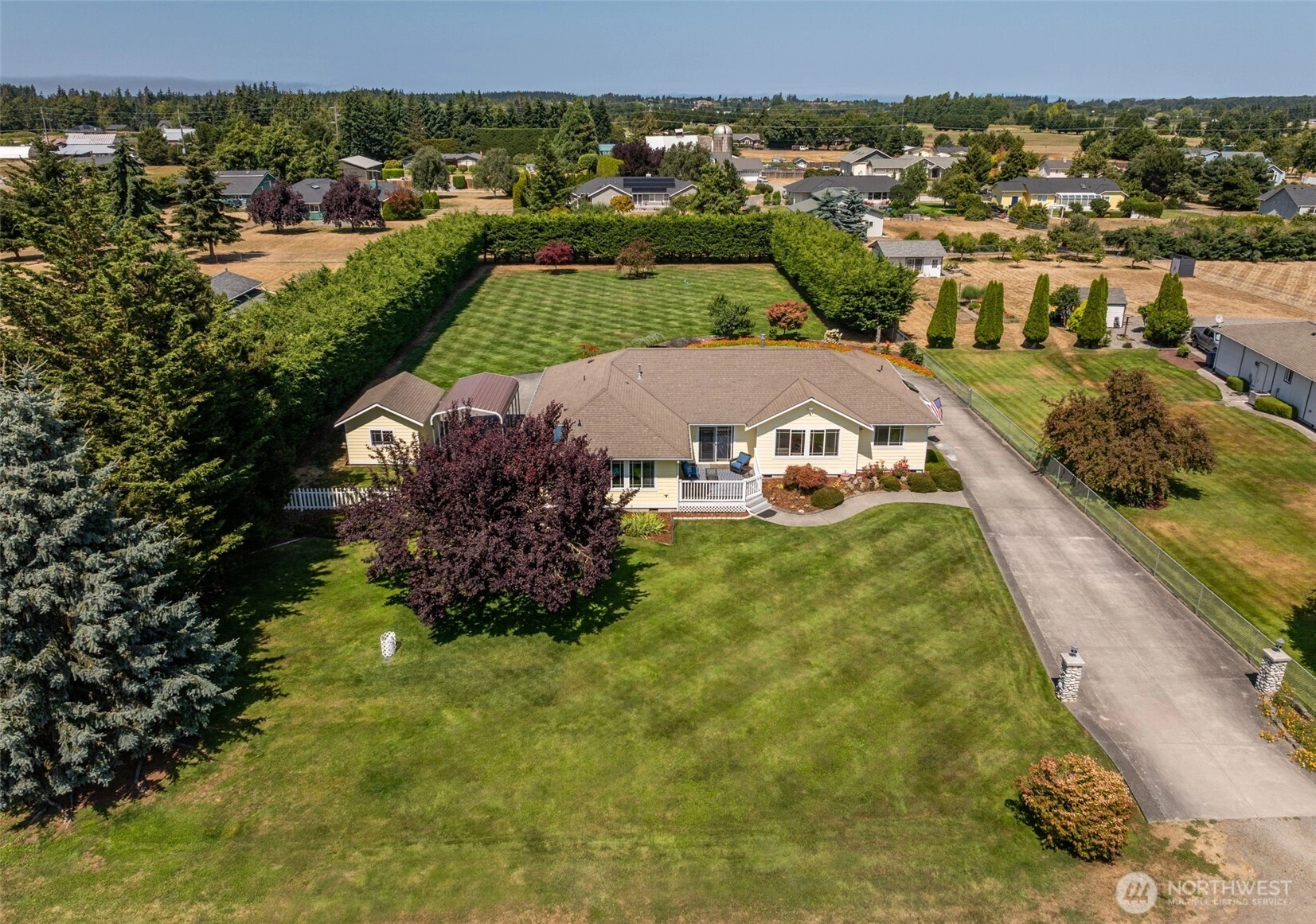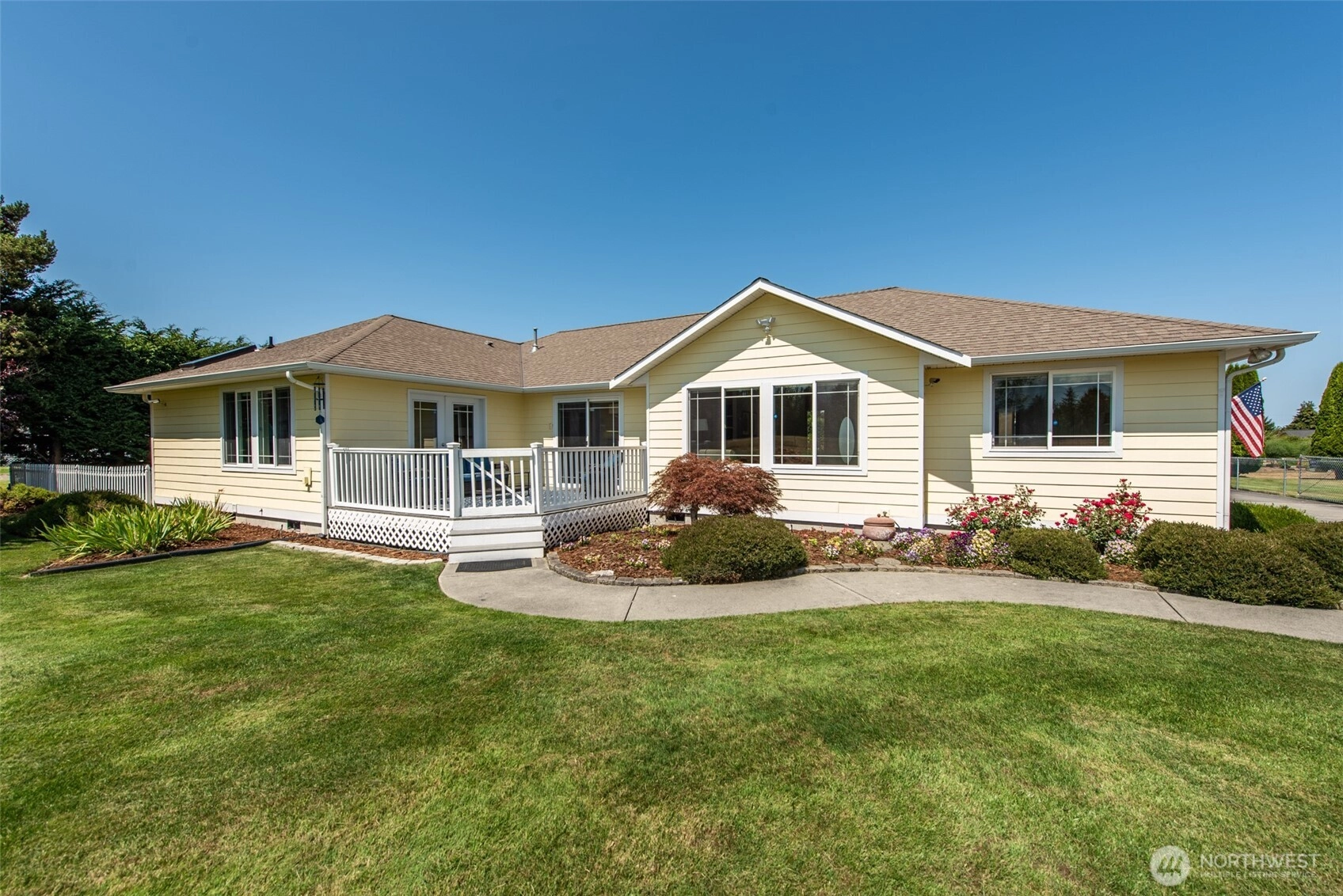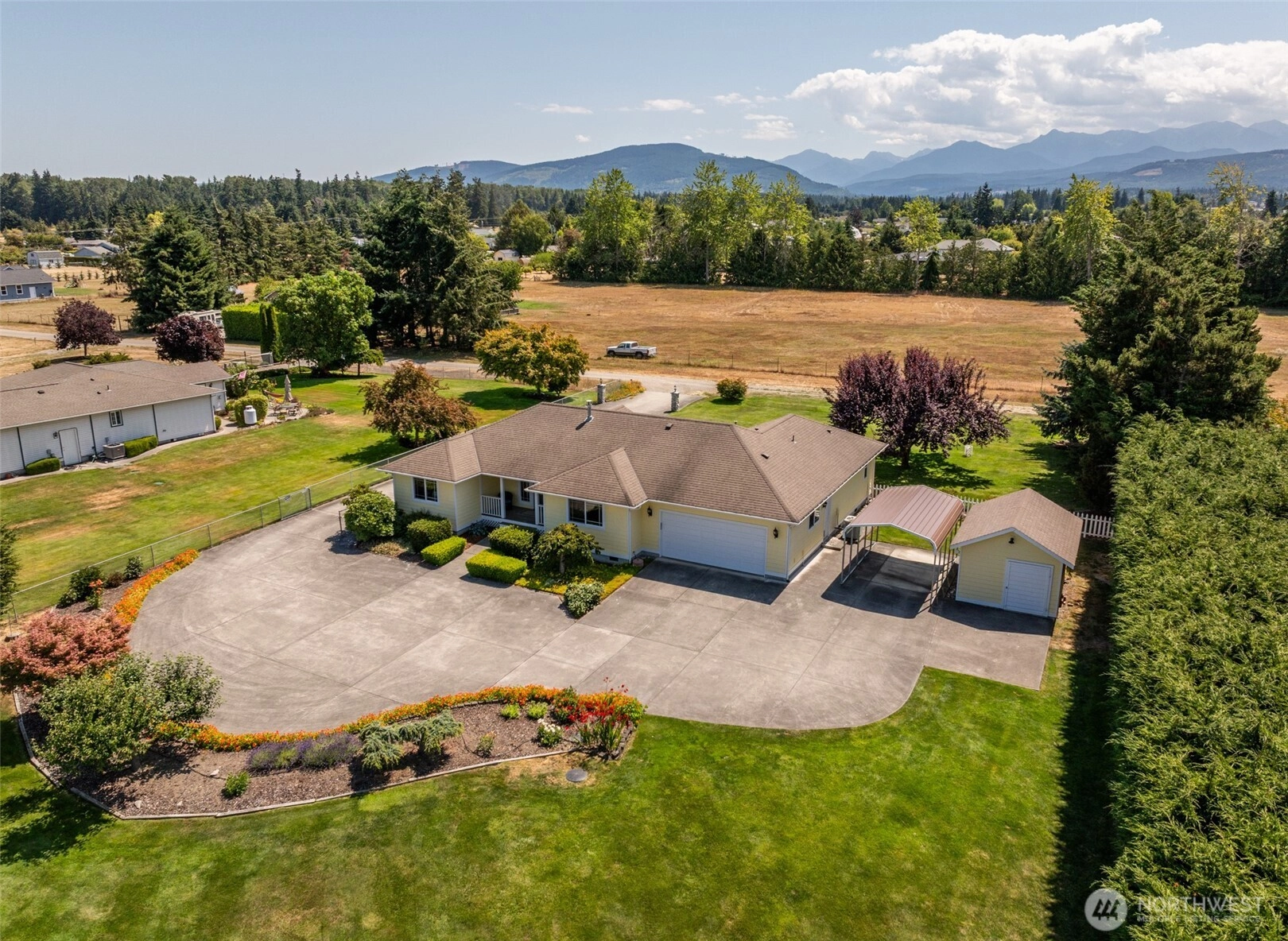 Lovingly maintained single-story home on 1 acre with stunning views of the Olympic Mountains. Located near the end of a quiet dead-end road, this peaceful property features lush landscaping, fertile soil, and a sprinkler system connected to irrigation water. Inside, enjoy gleaming cherry hardwood floors, granite countertops, and skylights in the bathrooms that bring in natural light. The sunny, south-facing patio is perfect for relaxing and soaking in the mountain views. Just minutes from the Olympic Discovery Trail and Sunny Farms Grocery, this home offers the perfect balance of country charm and everyday convenience.
