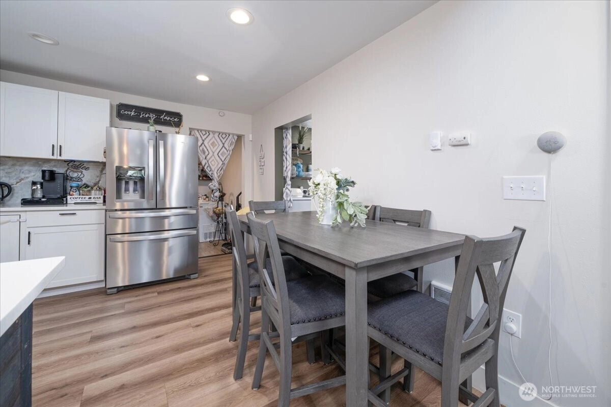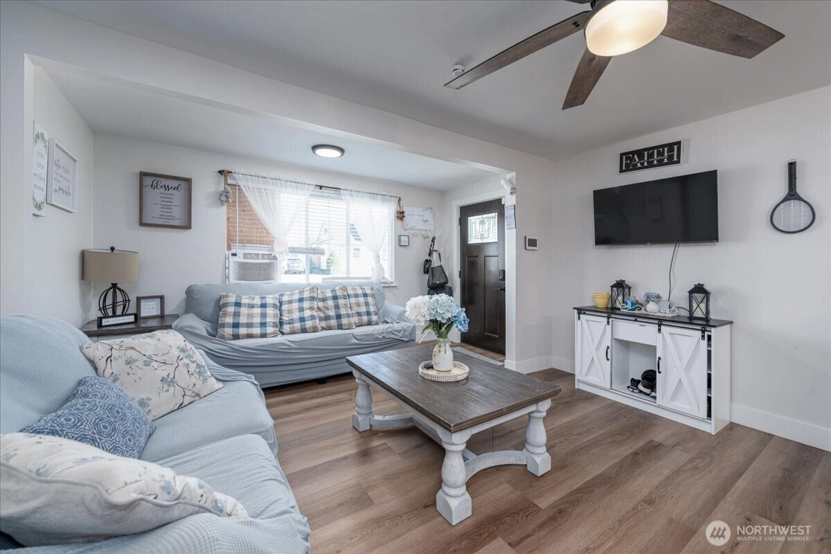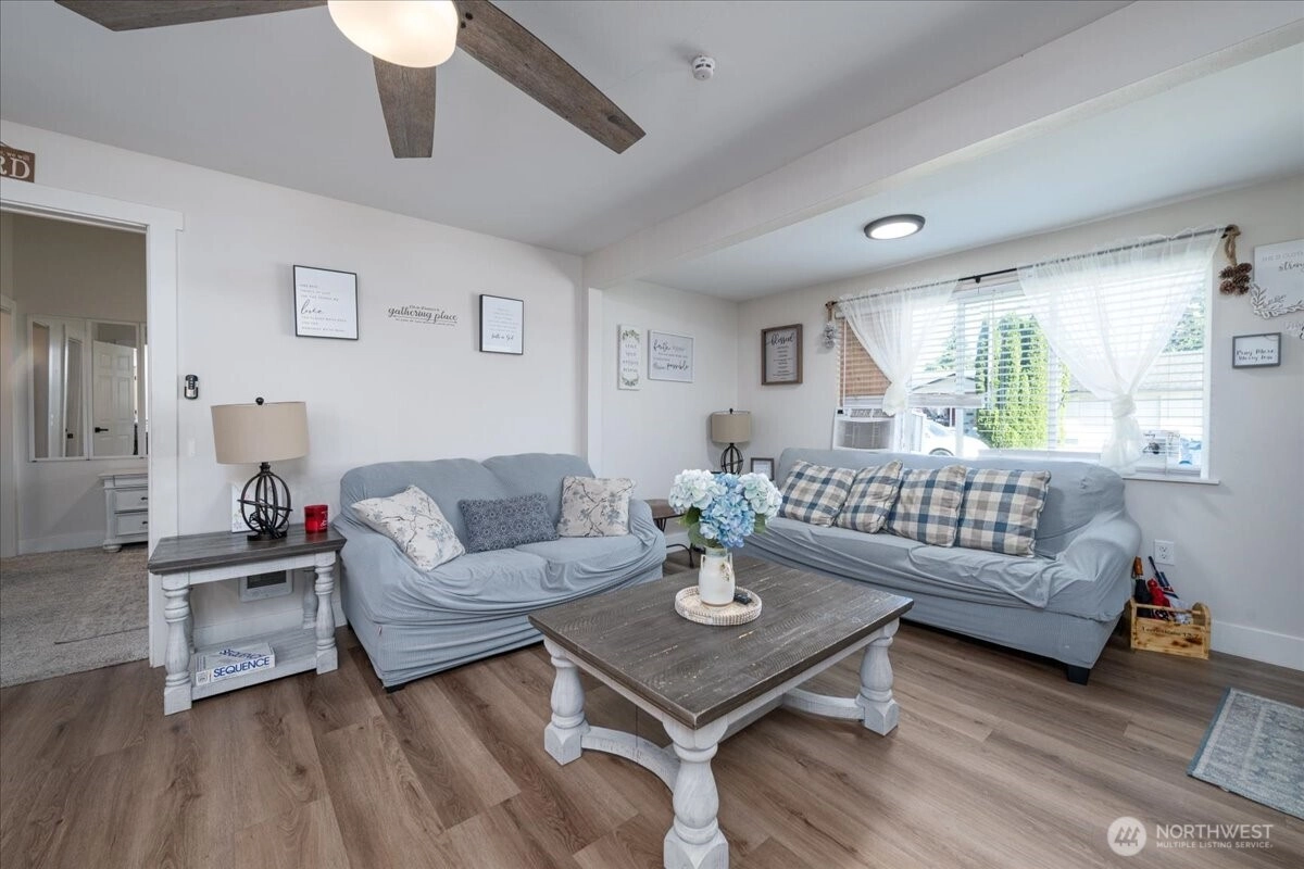 In the heart of Sedro-Woolley, sits this thoughtfully updated rambler. Offering a comfortable living space, large living room, kitchen with granite countertops, new backsplash, new fridge, walk-in pantry with ample shelving, luxury vinyl plank flooring & good-sized utility/mudroom. Primary bedroom features vaulted ceilings, walk-in closet & updated 3/4 bath with tiled-wall shower accent. Plus, 2 additional guest bedrooms & full guest bath. The beautifully manicured & landscaped outdoor space offers new exterior paint, a large fully fenced backyard, above-ground pool, new patio space, storage shed, small deck & covered front porch. Conveniently located within walking distance to downtown, schools, Riverfront Park & other local amenities.