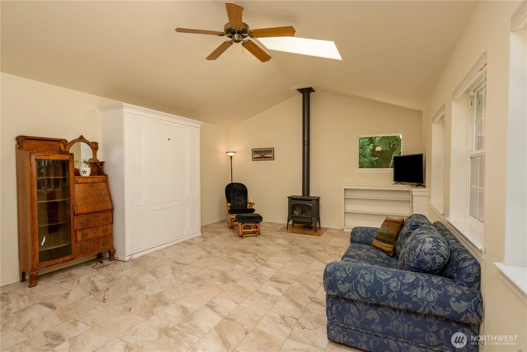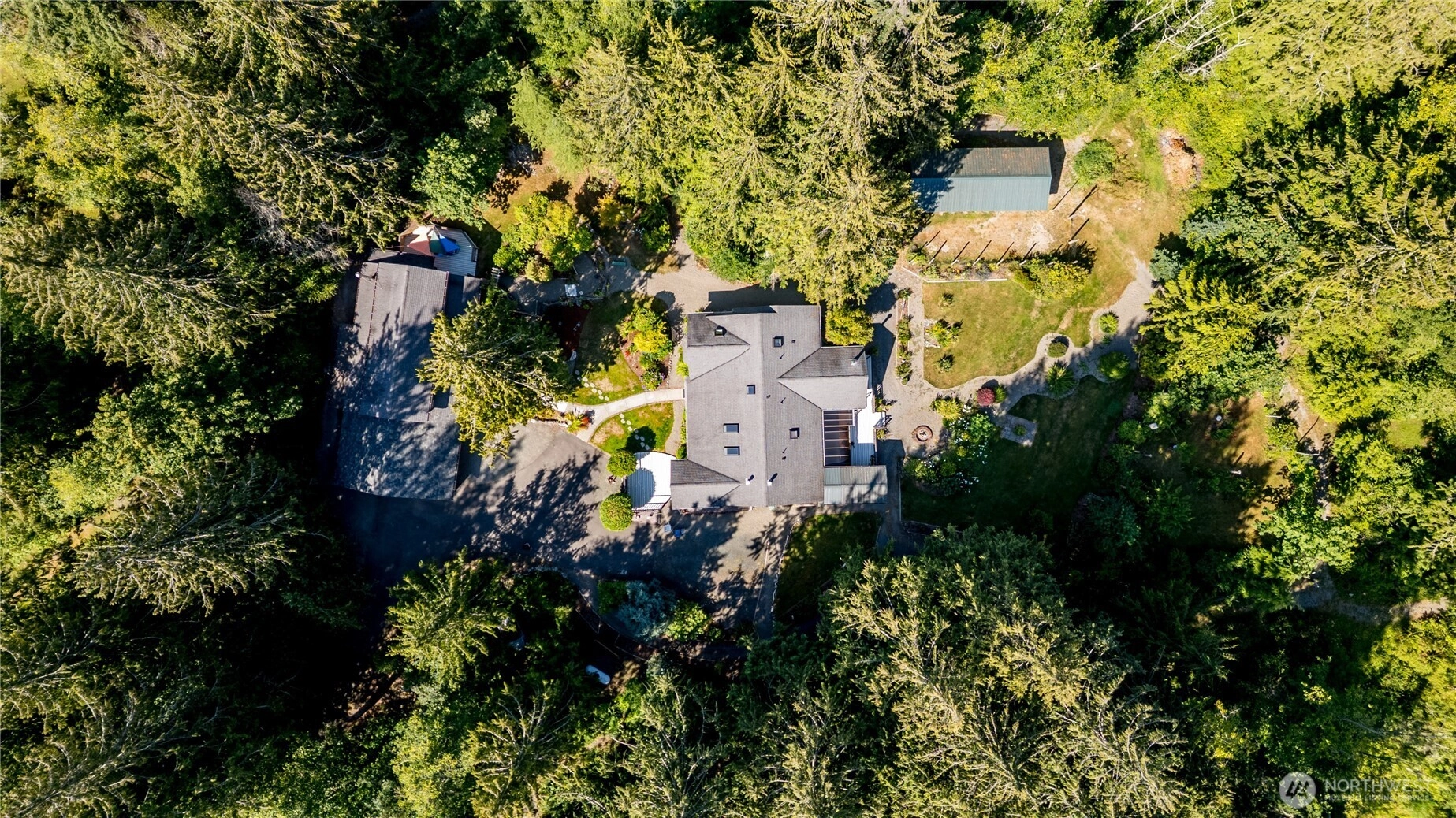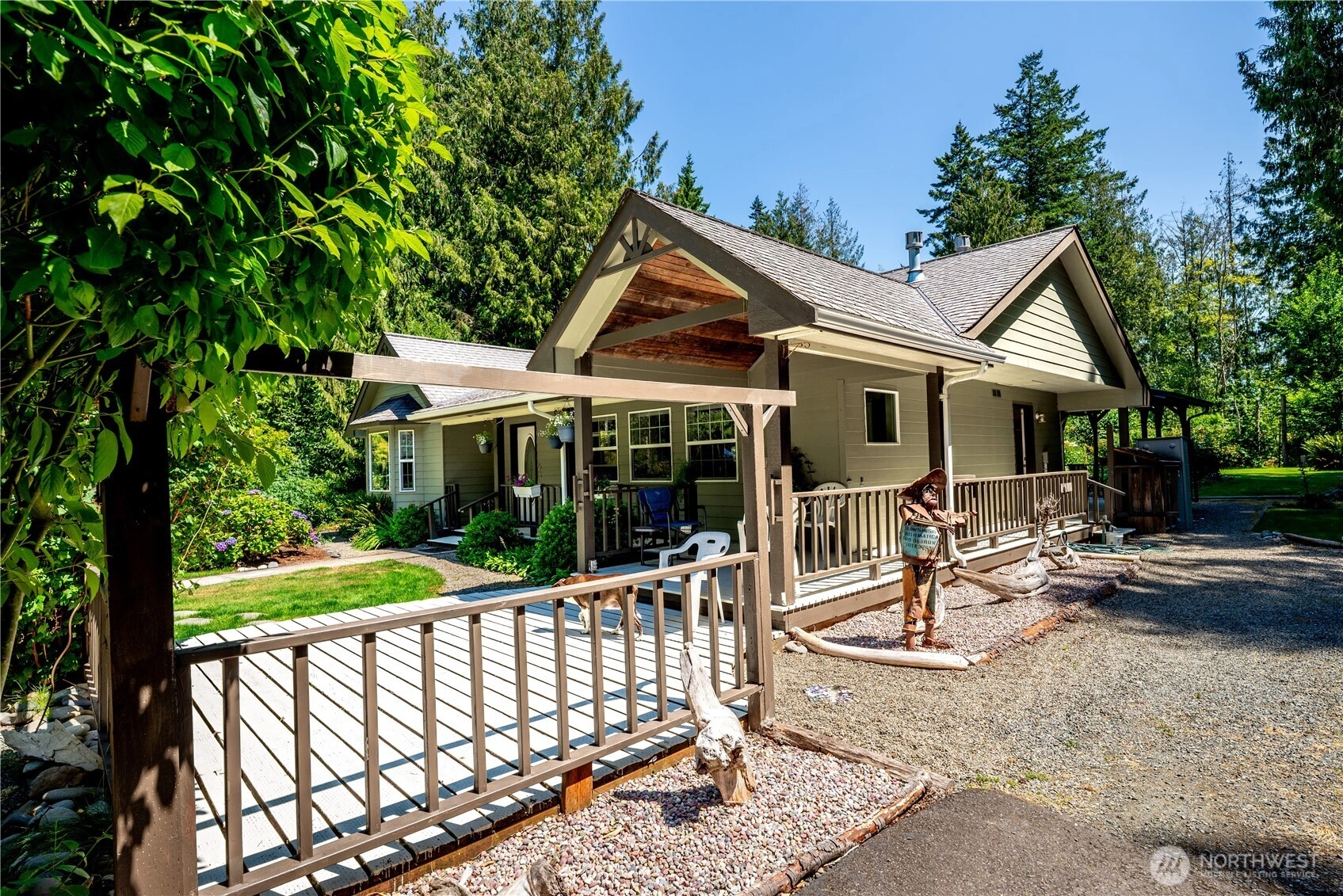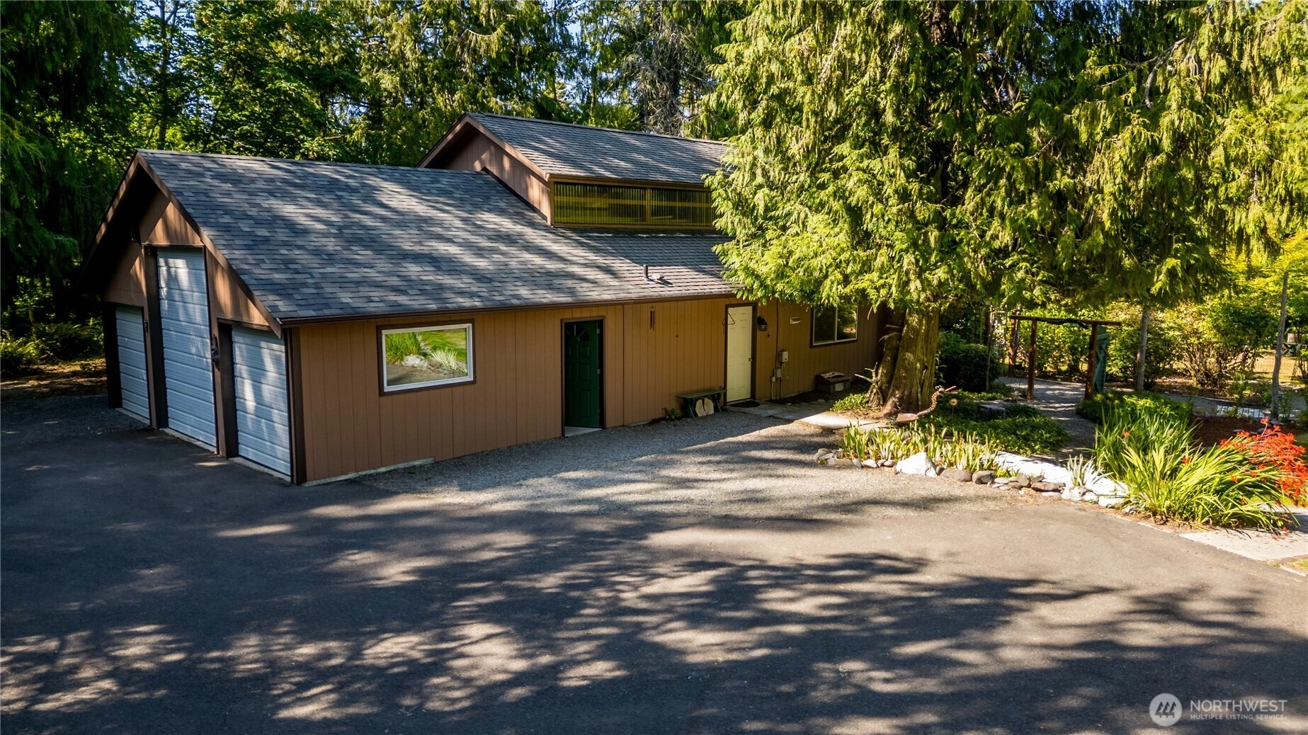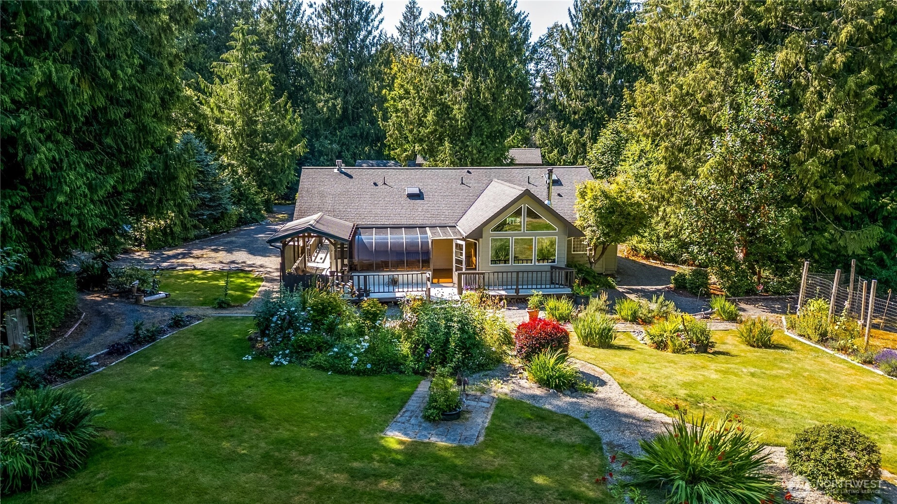 This well laid-out home and oversized shop on 5 acres brings together open-concept living, serene privacy, and multigenerational flexibility. The main residence offers 1 bedroom and two baths, light-filled living spaces refreshed with new paint and laminate flooring. Dual fireplaces (wood and propane) add warmth and character. The versatile second living room boasts a Murphy bed, offering the perfect solution for guests, a 2nd bedroom or a hybrid office/gym suite. With an additional 1-bedroom, 1-bath finished apartment on-site, it’s easy to accommodate independent living or additional guests all while ensuring privacy. Nature lovers will gravitate to the private half-mile of trails meandering through fruit trees and evergreens.