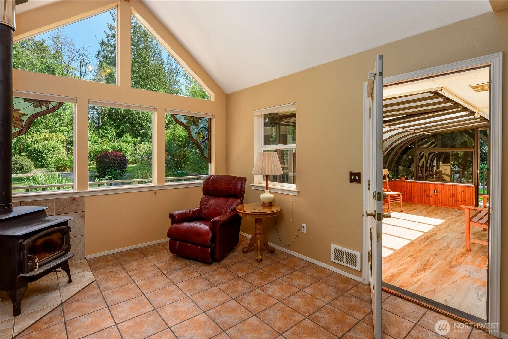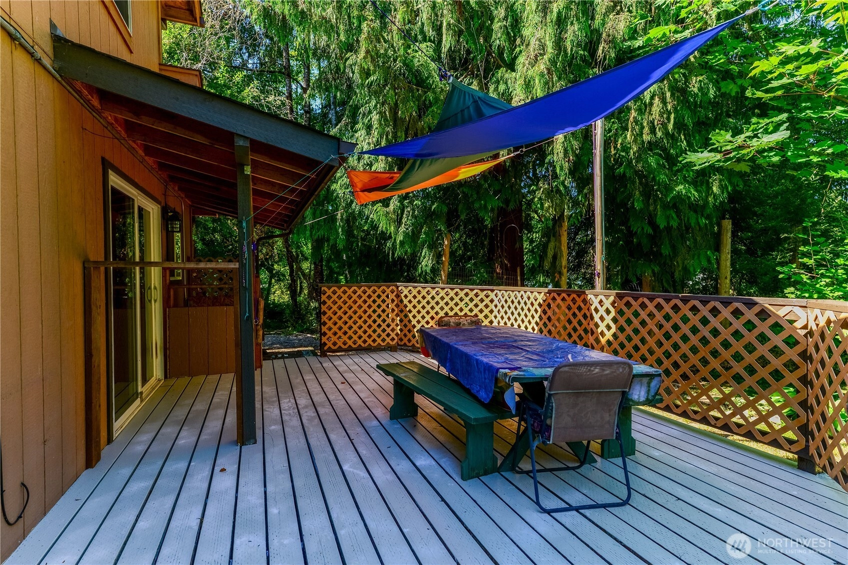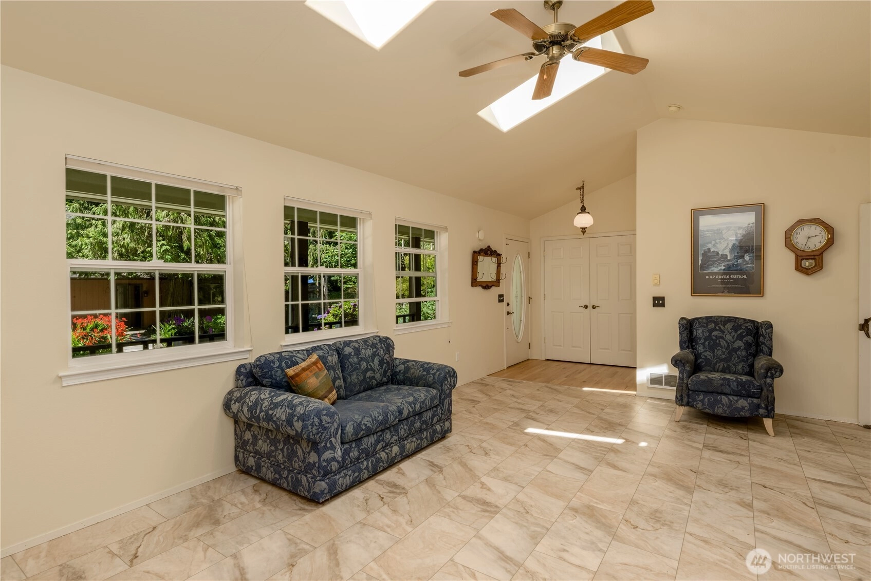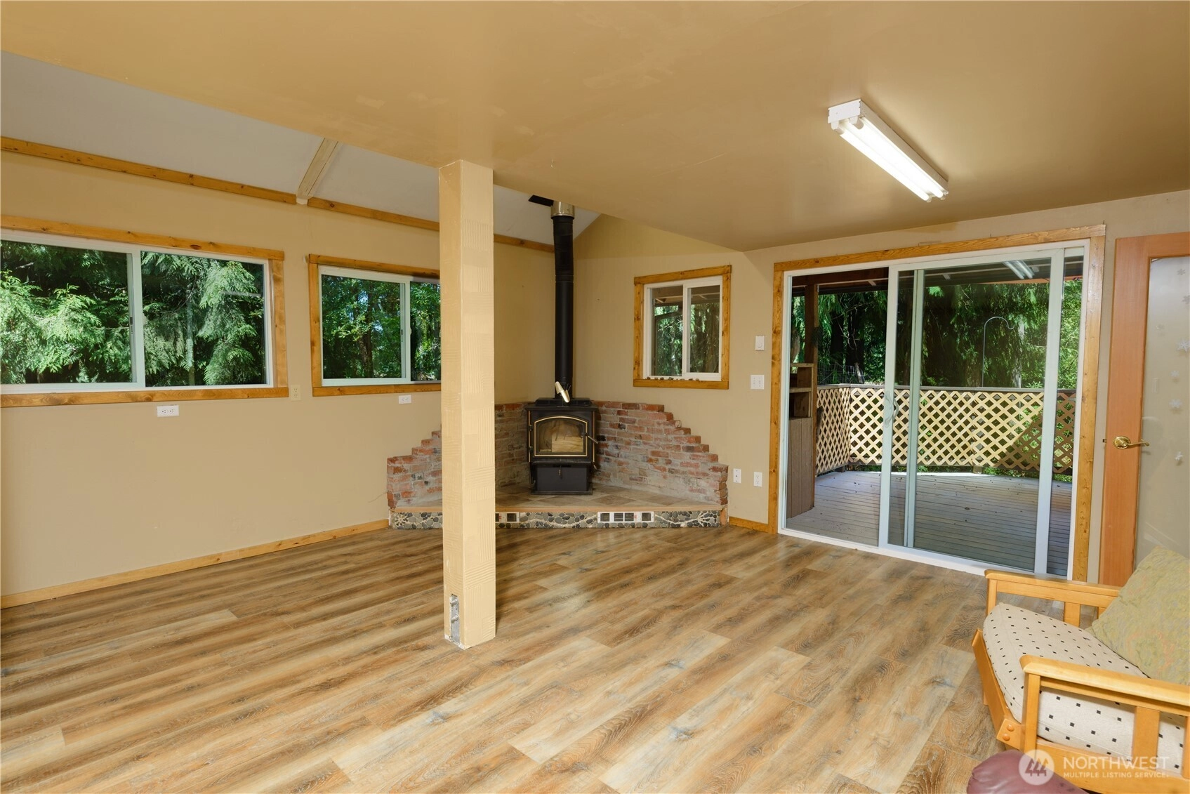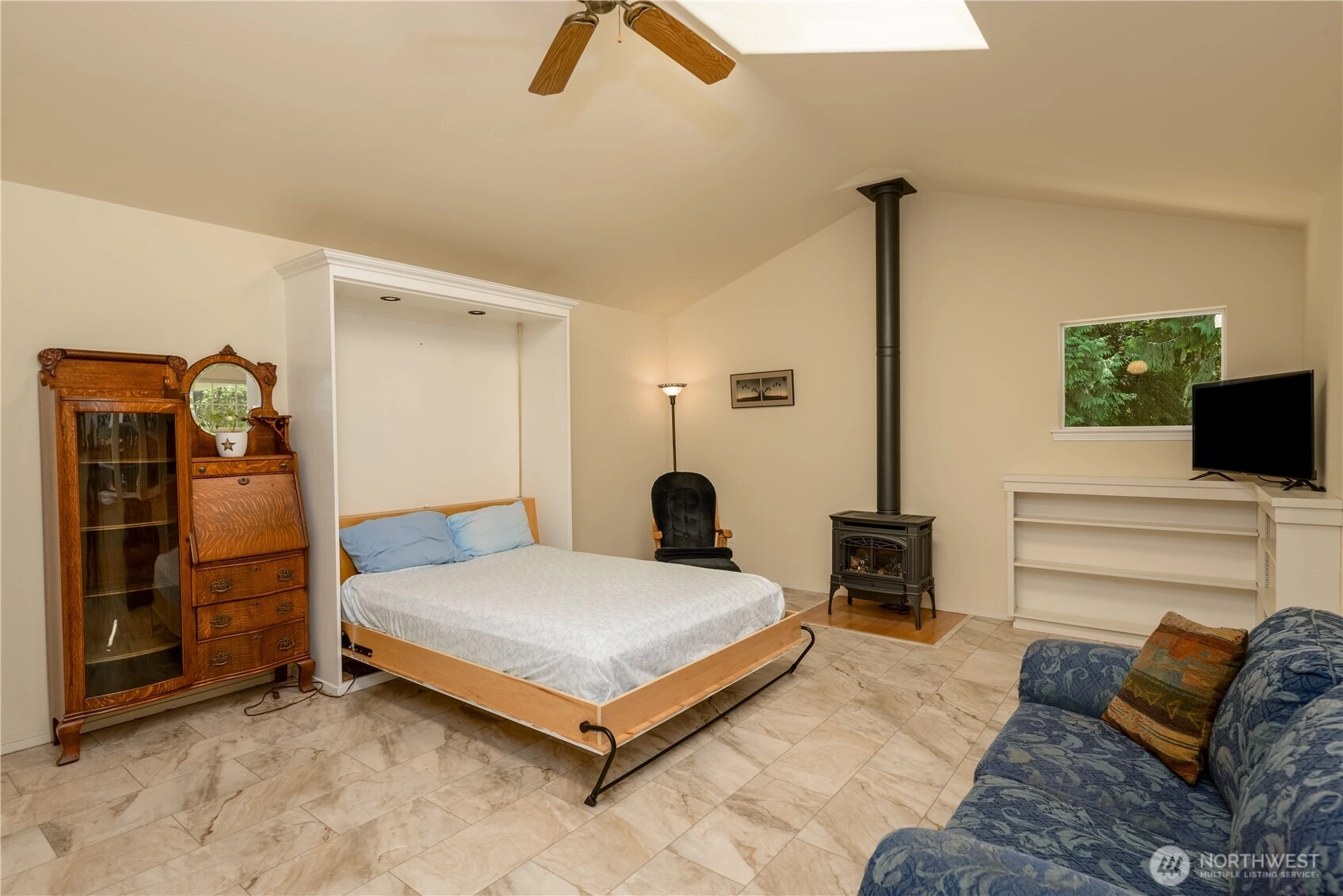 This well laid-out home and oversized shop on 5 acres brings together open-concept living, serene privacy, and multigenerational flexibility. The main residence offers 1 bedroom and two baths, light-filled living spaces refreshed with new paint and laminate flooring. Dual fireplaces (wood and propane) add warmth and character. The versatile second living room boasts a Murphy bed, offering the perfect solution for guests, a 2nd bedroom or a hybrid office/gym suite. With an additional 1-bedroom, 1-bath finished apartment on-site, it’s easy to accommodate independent living or additional guests all while ensuring privacy. Nature lovers will gravitate to the private half-mile of trails meandering through fruit trees and evergreens.