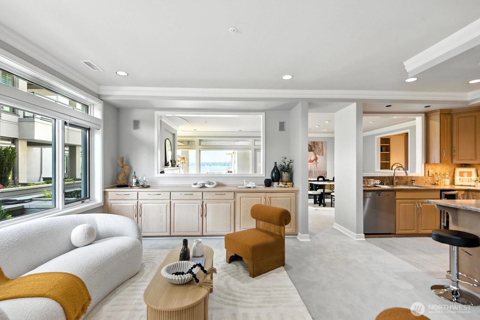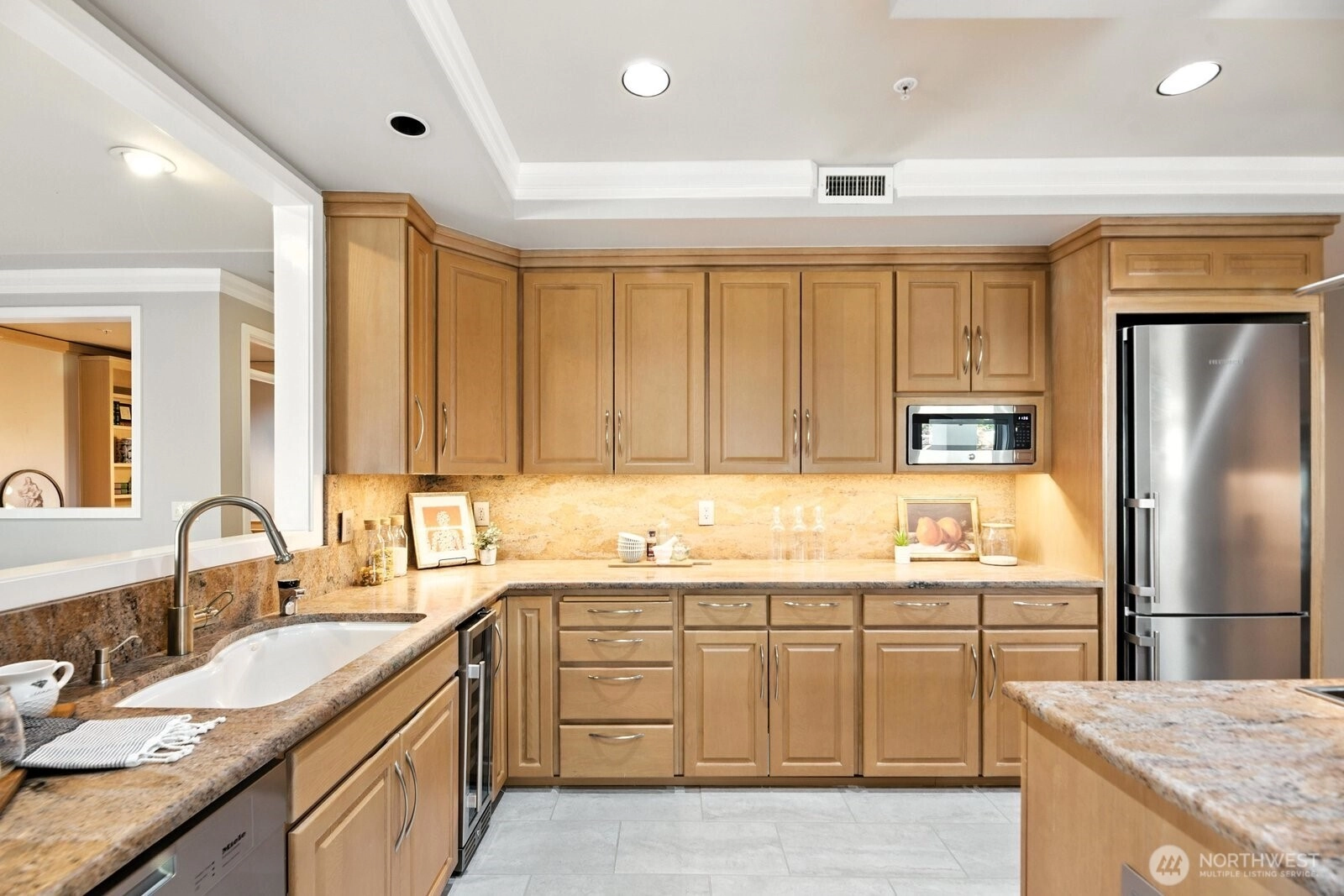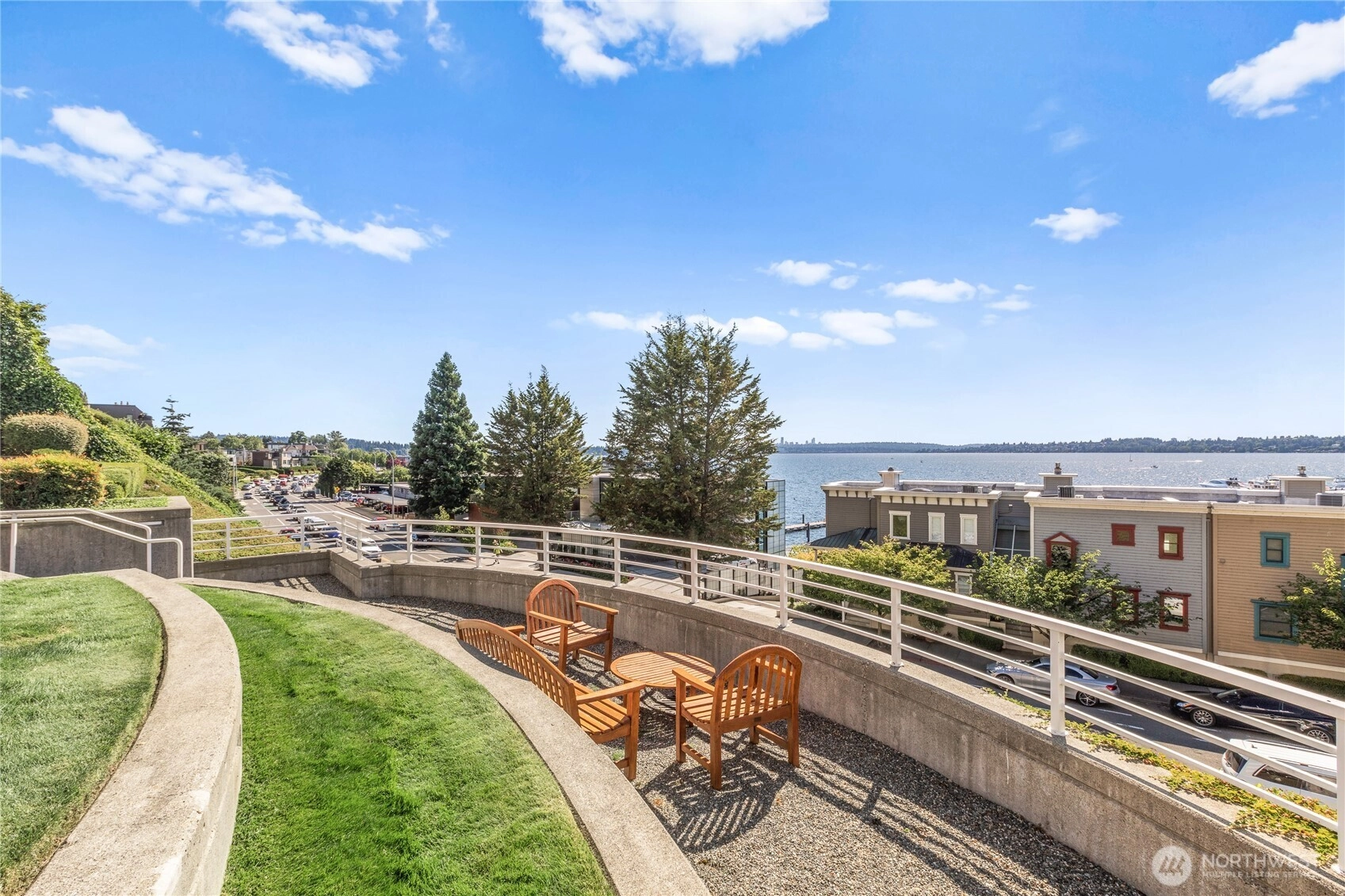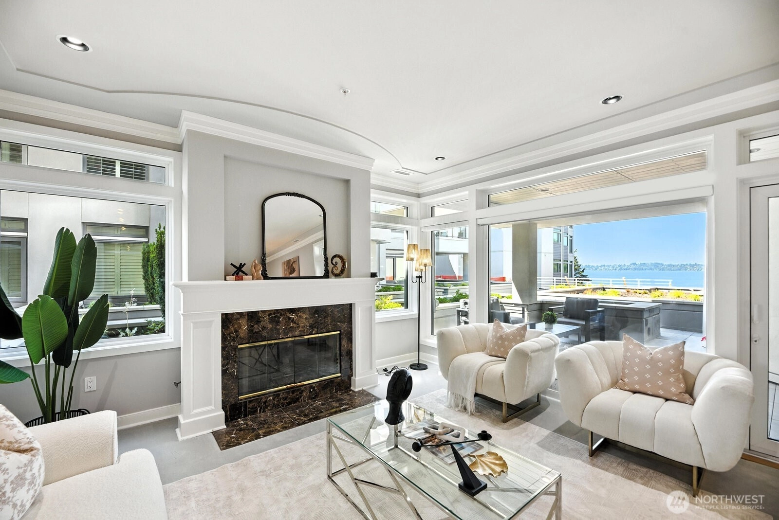 Marina Pointe's exterior renovation is stunning and contemporary. Assessments have been paid in full, leaving the new owner free to modify the interior as they choose. This boutique Gem Condo is home to 24 lucky owners who love being in the heart of downtown Kirkland, with private stairs leading them to the marina, shops, bistros, and more. 2020 Square Feet of level living include a primary suite, office, dining area, living room with fireplace, a large kitchen with island, and a charming nook. An outstanding feature that can't be overlooked is the large front patio, perfect for enjoying the views and incredible sunsets, along with a second patio off the guest bedroom. This secure building will make you feel at home. Simply irresistible!!
