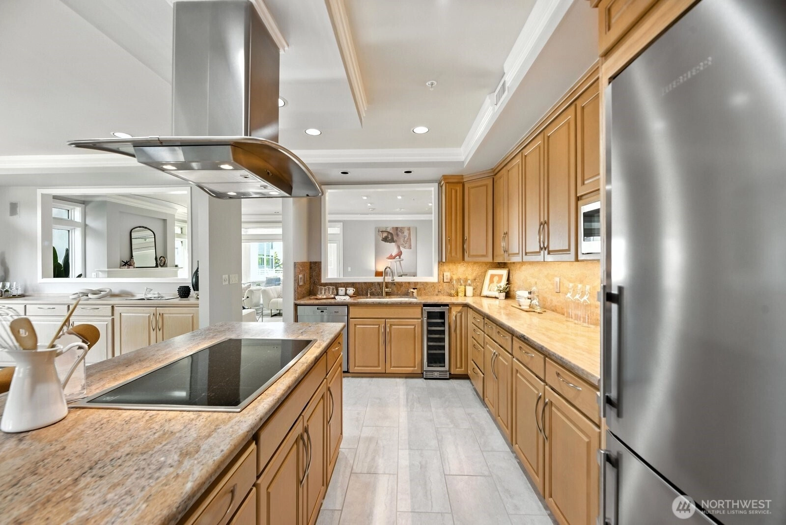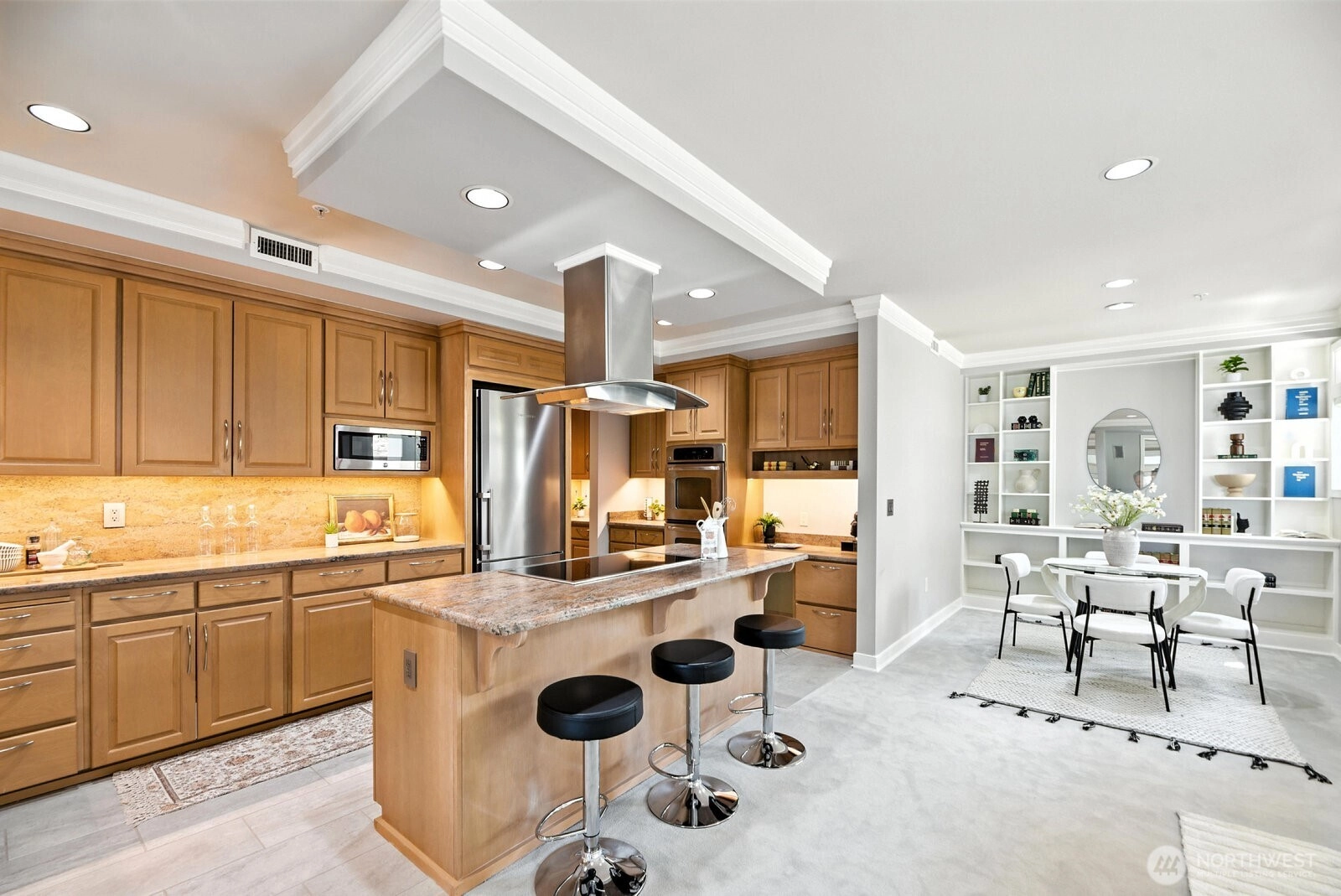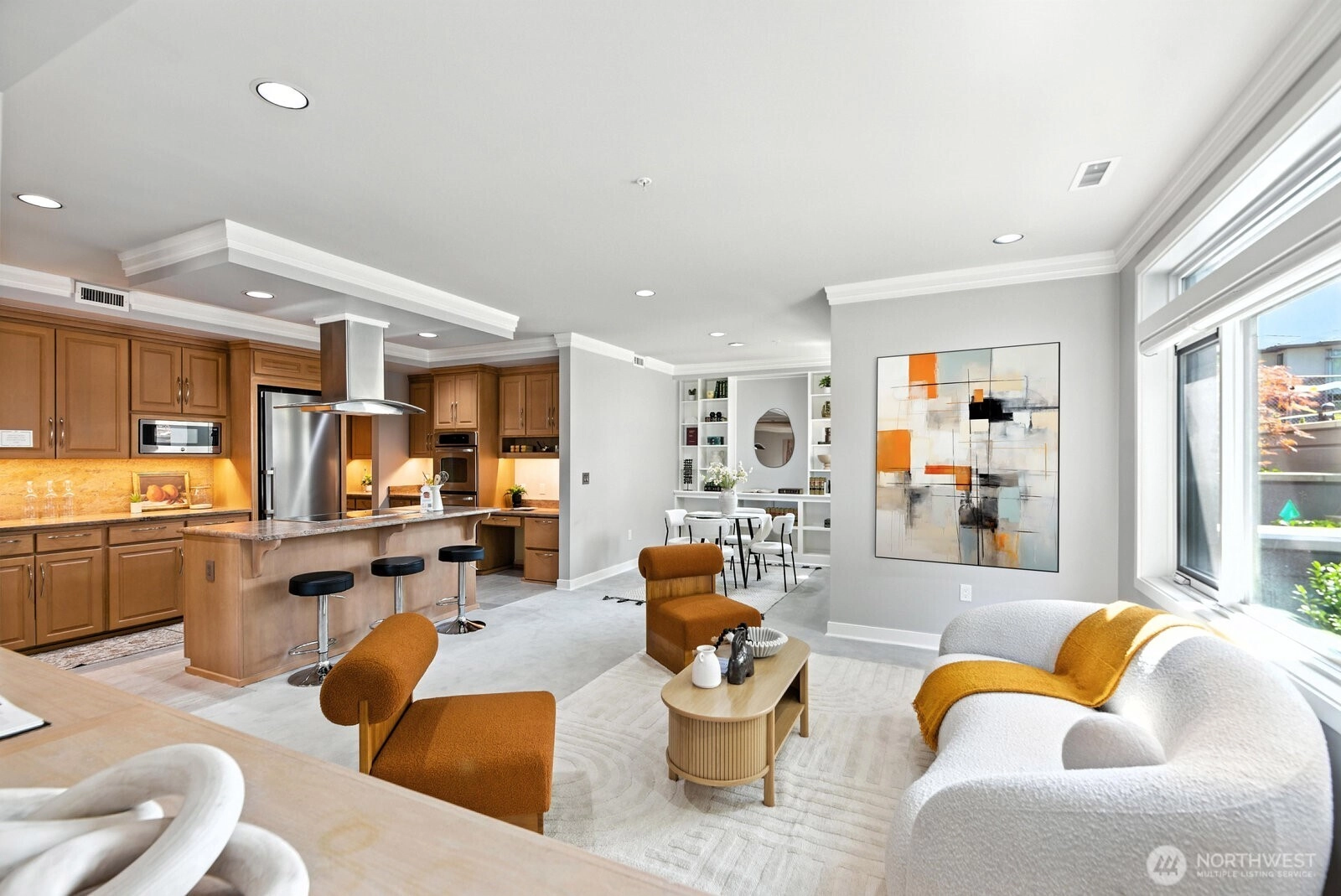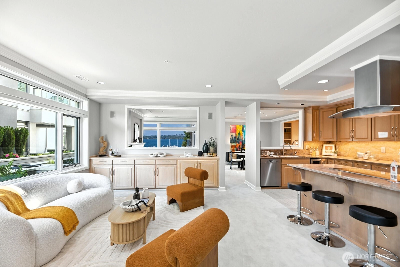 Marina Pointe's exterior renovation is stunning and contemporary. Assessments have been paid in full, leaving the new owner free to modify the interior as they choose. This boutique Gem Condo is home to 24 lucky owners who love being in the heart of downtown Kirkland, with private stairs leading them to the marina, shops, bistros, and more. 2020 Square Feet of level living include a primary suite, office, dining area, living room with fireplace, a large kitchen with island, and a charming nook. An outstanding feature that can't be overlooked is the large front patio, perfect for enjoying the views and incredible sunsets, along with a second patio off the guest bedroom. This secure building will make you feel at home. Simply irresistible!!