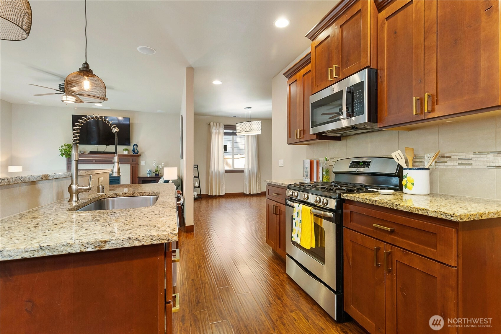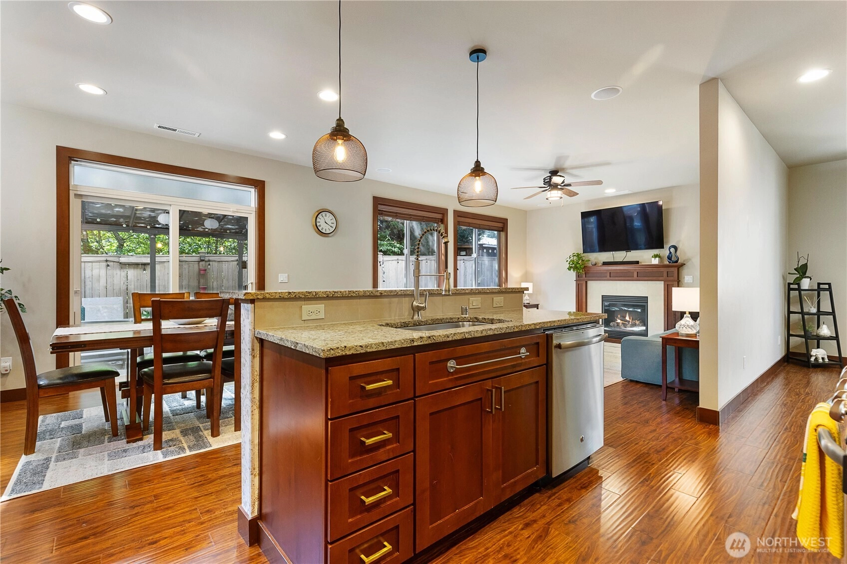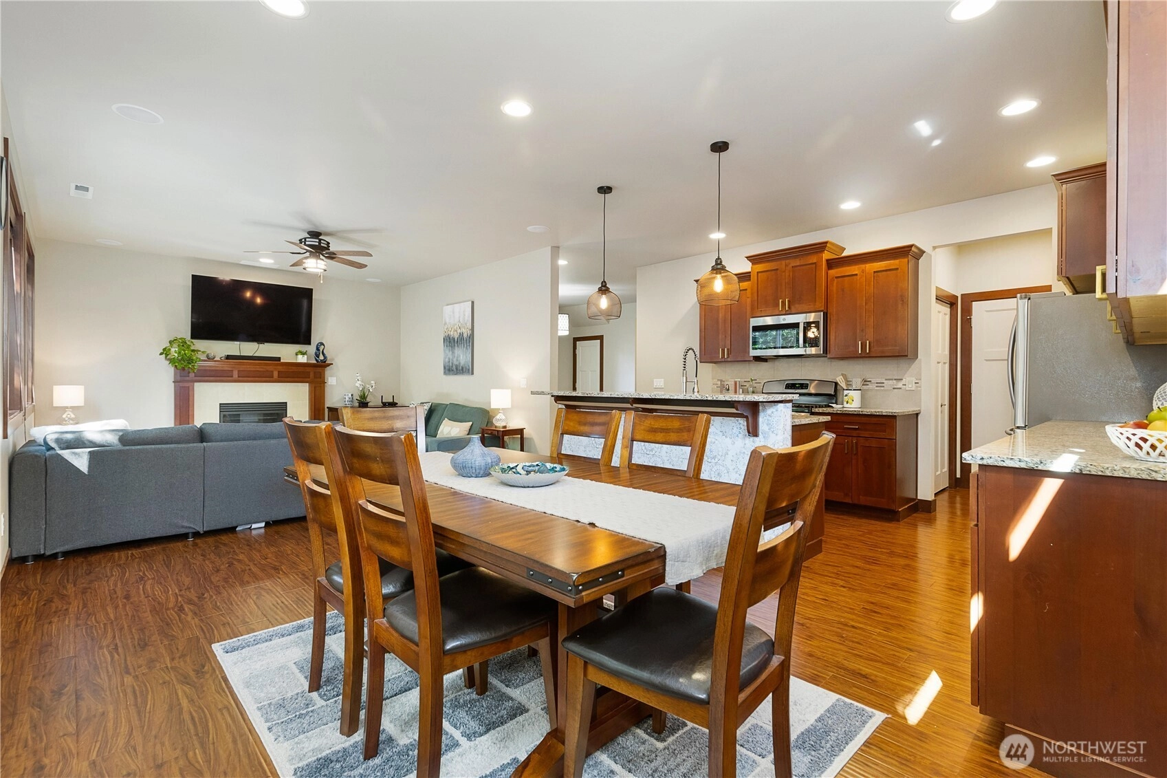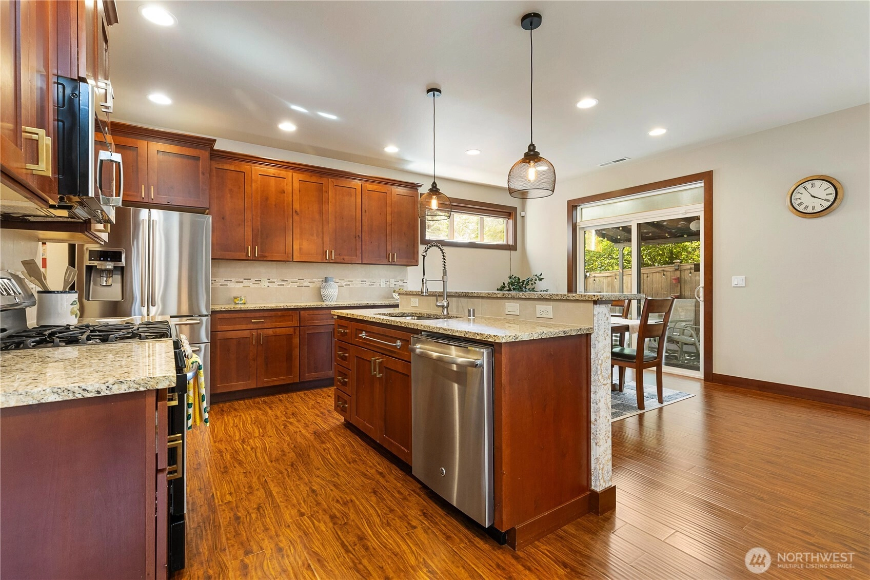Don't miss this beautiful East facing home in the coveted Autumn Crest community in Bothell. Home boasts 4 spacious bedrooms, 2.5 bath & an open concept layout with lots of natural light. Luxurious hardwood floors, faux wood blinds throughout, surround sound in living rm & bdrm. Kitchen features large granite counters, a gas stove, upgraded light fixtures, all stainless steel appliances, mud room w/spacious pantry & dining area that leads to a covered patio outside. Home has tankless water heater, AC and a beautiful backyard that is a gardeners delight! Located in the top-rated Northshore School District and minutes to I-405, I-5, Lynnwood Light Rail station, Canyon Park-Park & Ride, parks & shopping. Home is Pre inspected & move in ready!