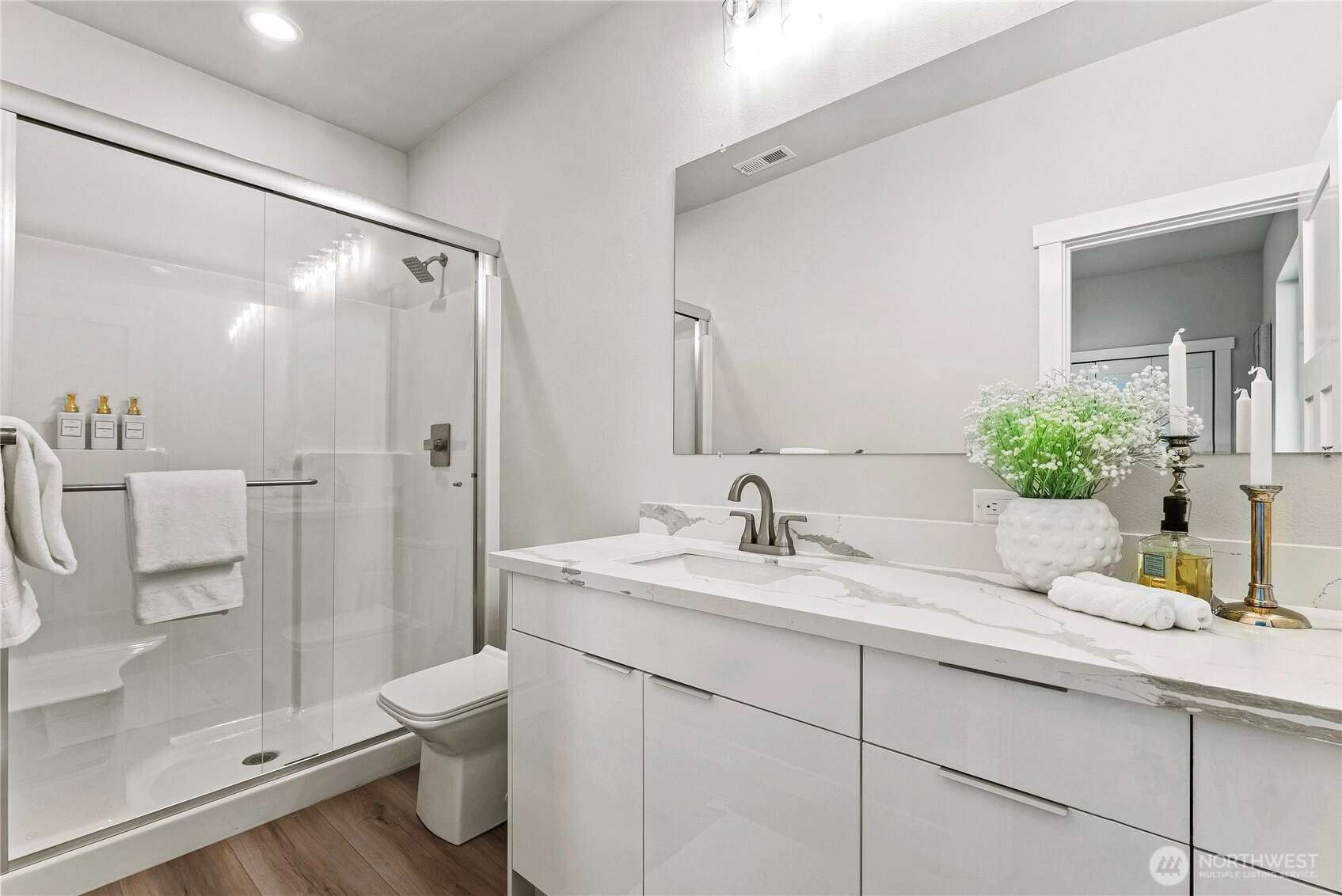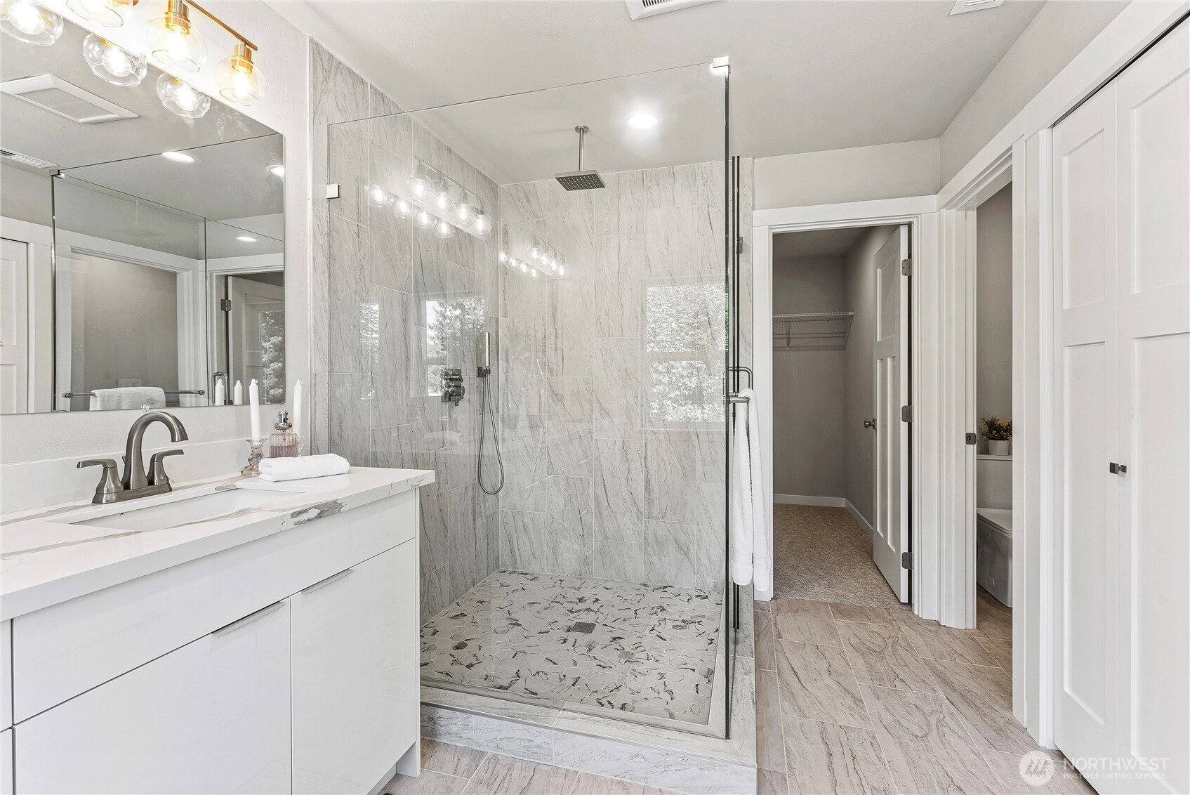 This newly constructed 3,250-square-foot home features high ceilings and an open-concept design that seamlessly blends the kitchen, dining, and living areas, creating a spacious environment perfect for gatherings. The kitchen boasts an island with ample counter space and a pantry. Adjacent to the main living area is a guest suite on the main floor with a full bath. The generously sized primary suite includes a walk-in closet and a private bathroom with a double vanity. Three additional bedrooms are located near a full bathroom and offer easy access to the laundry and storage areas, adding convenience to everyday living. Electric car charging pre-wire included! Buyer to verify all info.