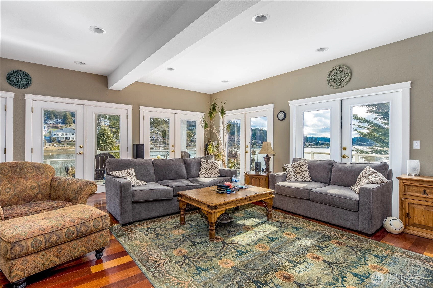 Rare 80' no bank waterfront property, in the heart of Gig Harbor, boasts 6 bedrooms, 3 bathrooms, full finished basement, 5,580sf! Open concept kitchen, gas stove & granite countertops, living room with multiple French doors overlooking the bay, main suite faces the bay, jetted tub, walk-in closet, private balcony, endless Puget Sound views! Beachcombing, paddleboarding, kayaking, fishing, water skiing. Private area away from main roads & busy streets. Detached 6 Car Garage provides ample storage and parking (1,632sf). Gated private entry, no HOA's, new Septic just installed. (Floating dock on title, currently inoperable requires new floats & decking.)