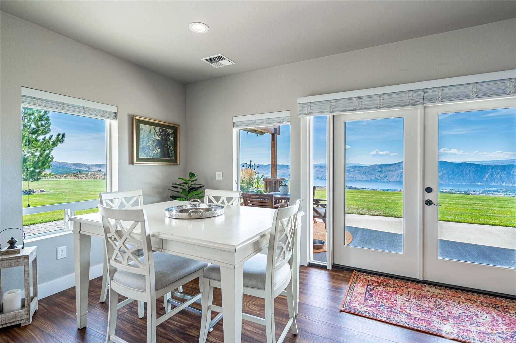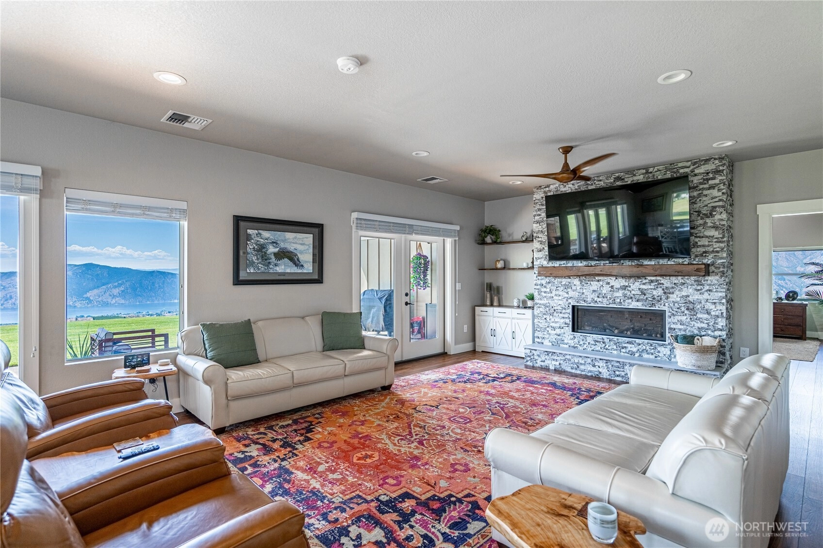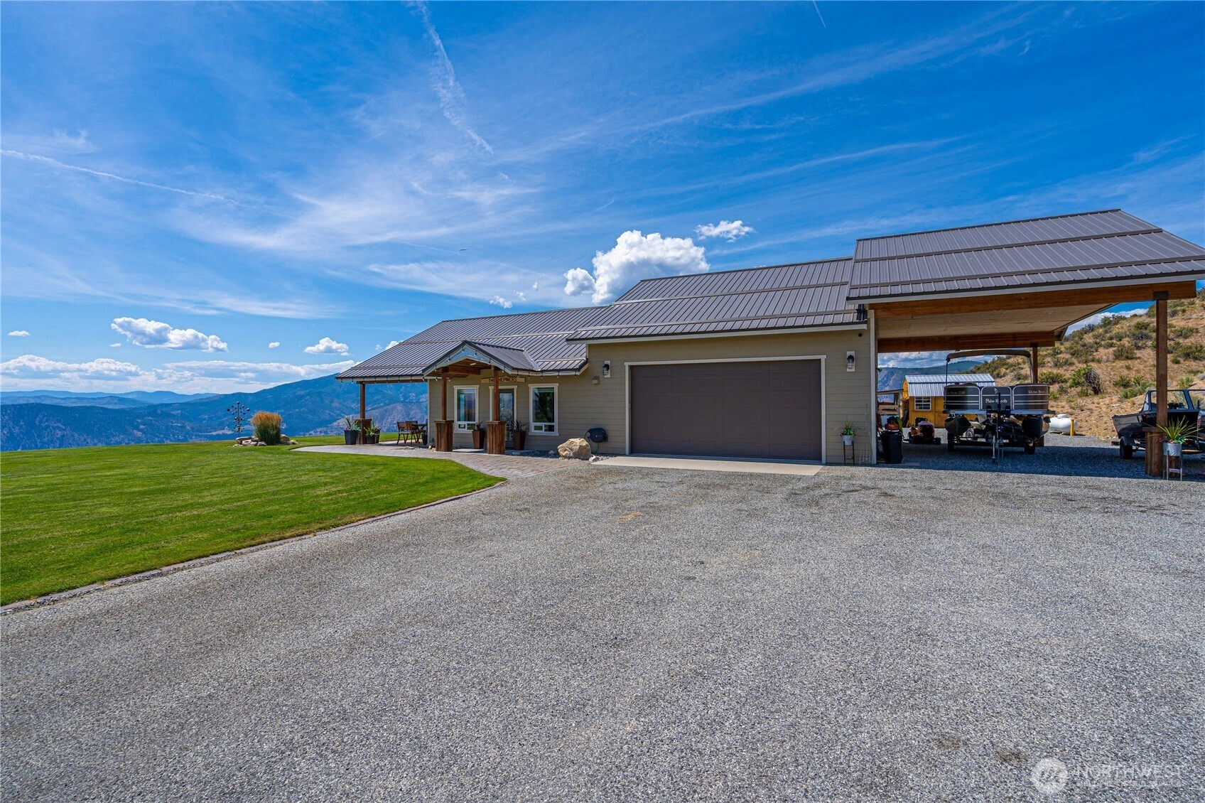 Nothing compares to this location and home overlooking the Lake Chelan Valley just north of Manson with incredible privacy and solitude. Like new one level home features two bedrooms plus a finished arts and craft studio could be a 3rd bedroom. Large primary suite with walk in closet, soaking tub and walk-in tiled shower. New LVP flooring throughout, spacious living and dining areas. An attached tandem garage and 18 x 36 carport for all your RV's. A 600 Amp service and multiple RV hookups with water and septic. The covered patio takes in the expansive views of Lake Chelan & Valley surrounded by a manicured lawn on 20 acres. Experience this captivating property for yourself for an ideal vacation or year around home and ample room for a pool.