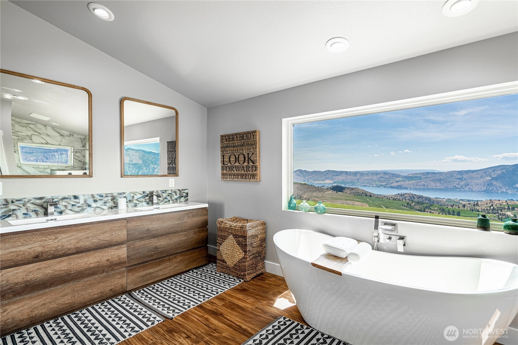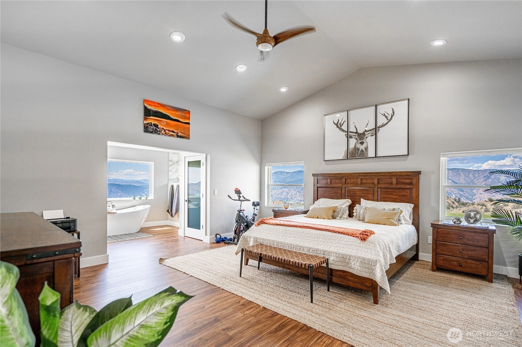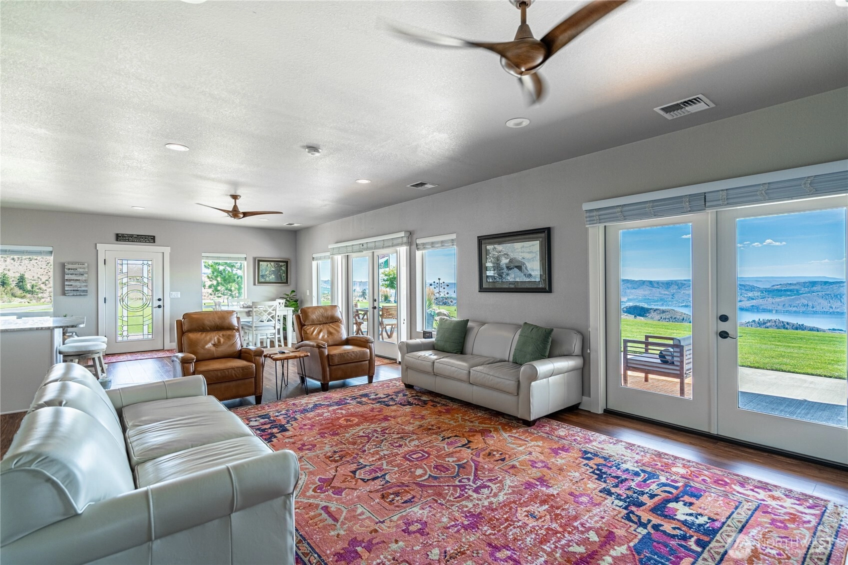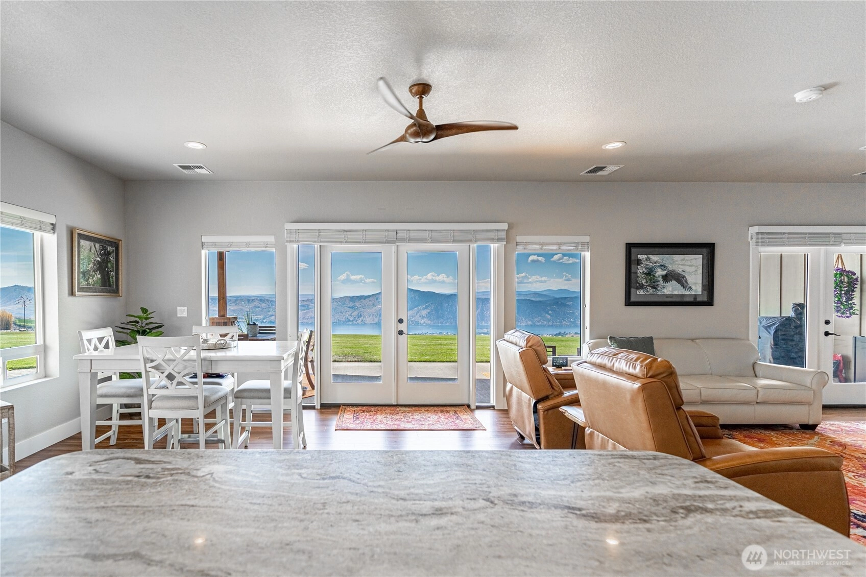 Nothing compares to this location and home overlooking the Lake Chelan Valley just north of Manson with incredible privacy and solitude. Like new one level home features two bedrooms plus a finished arts and craft studio could be a 3rd bedroom. Large primary suite with walk in closet, soaking tub and walk-in tiled shower. New LVP flooring throughout, spacious living and dining areas. An attached tandem garage and 18 x 36 carport for all your RV's. A 600 Amp service and multiple RV hookups with water and septic. The covered patio takes in the expansive views of Lake Chelan & Valley surrounded by a manicured lawn on 20 acres. Experience this captivating property for yourself for an ideal vacation or year around home and ample room for a pool.