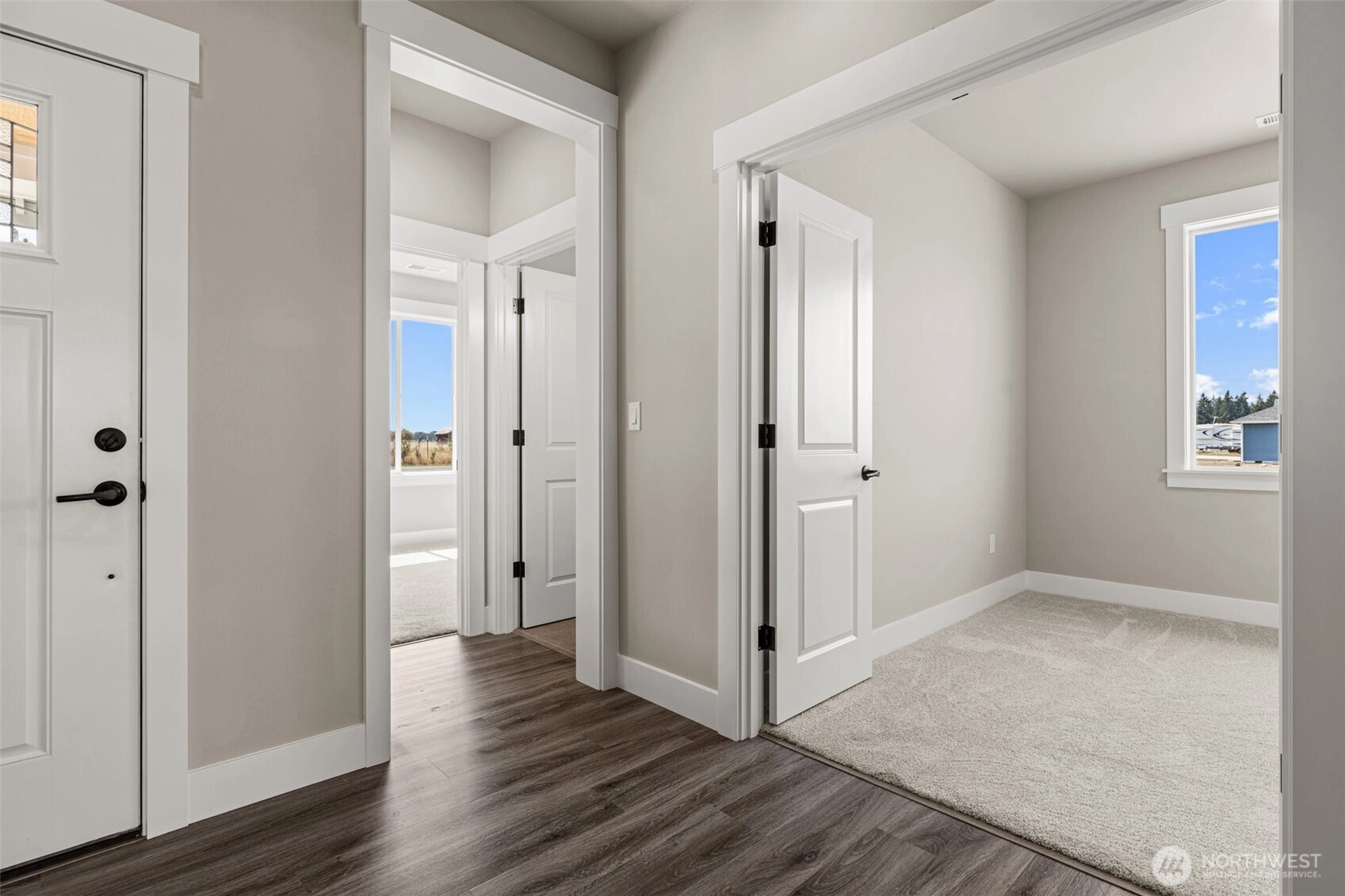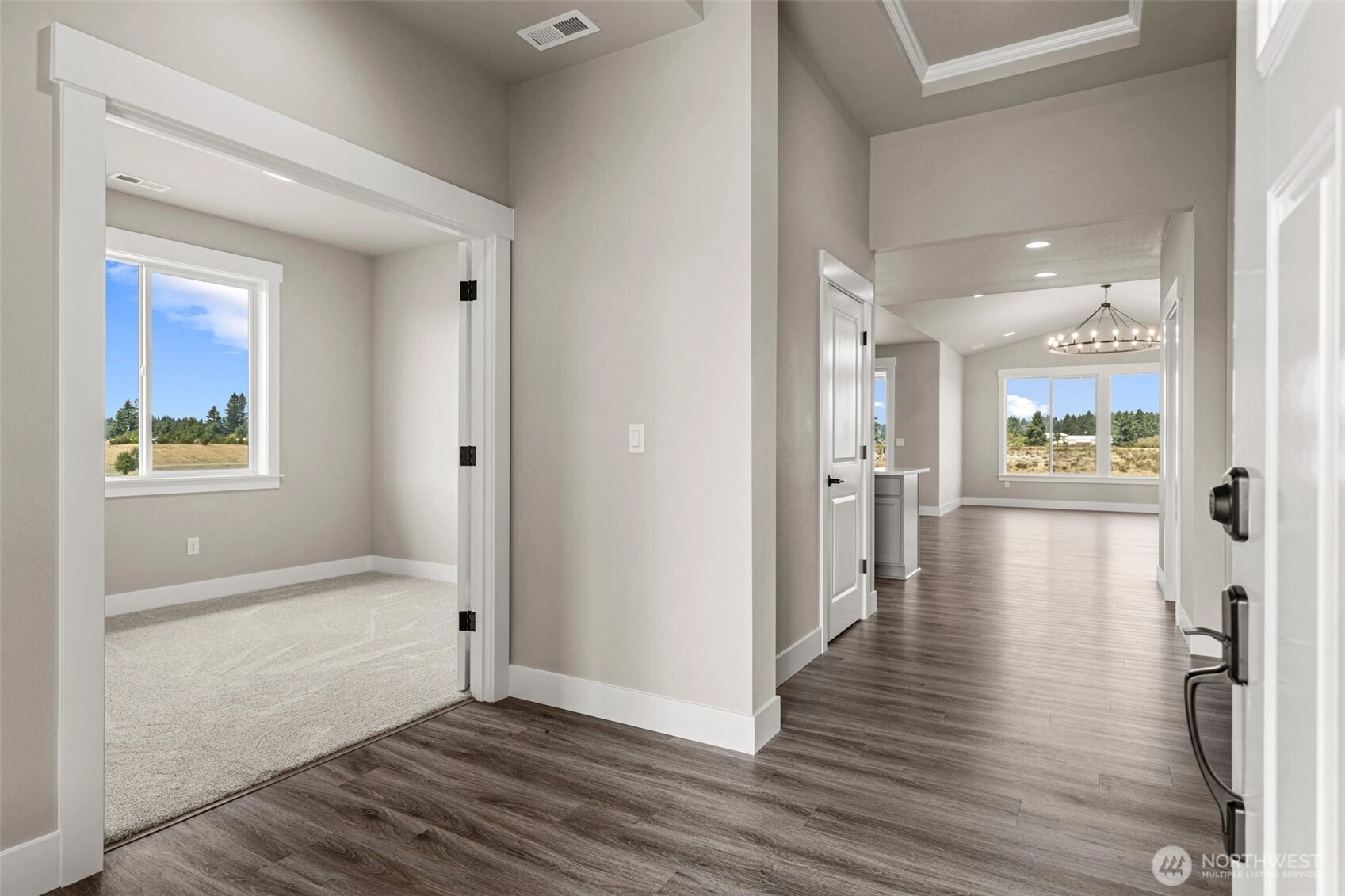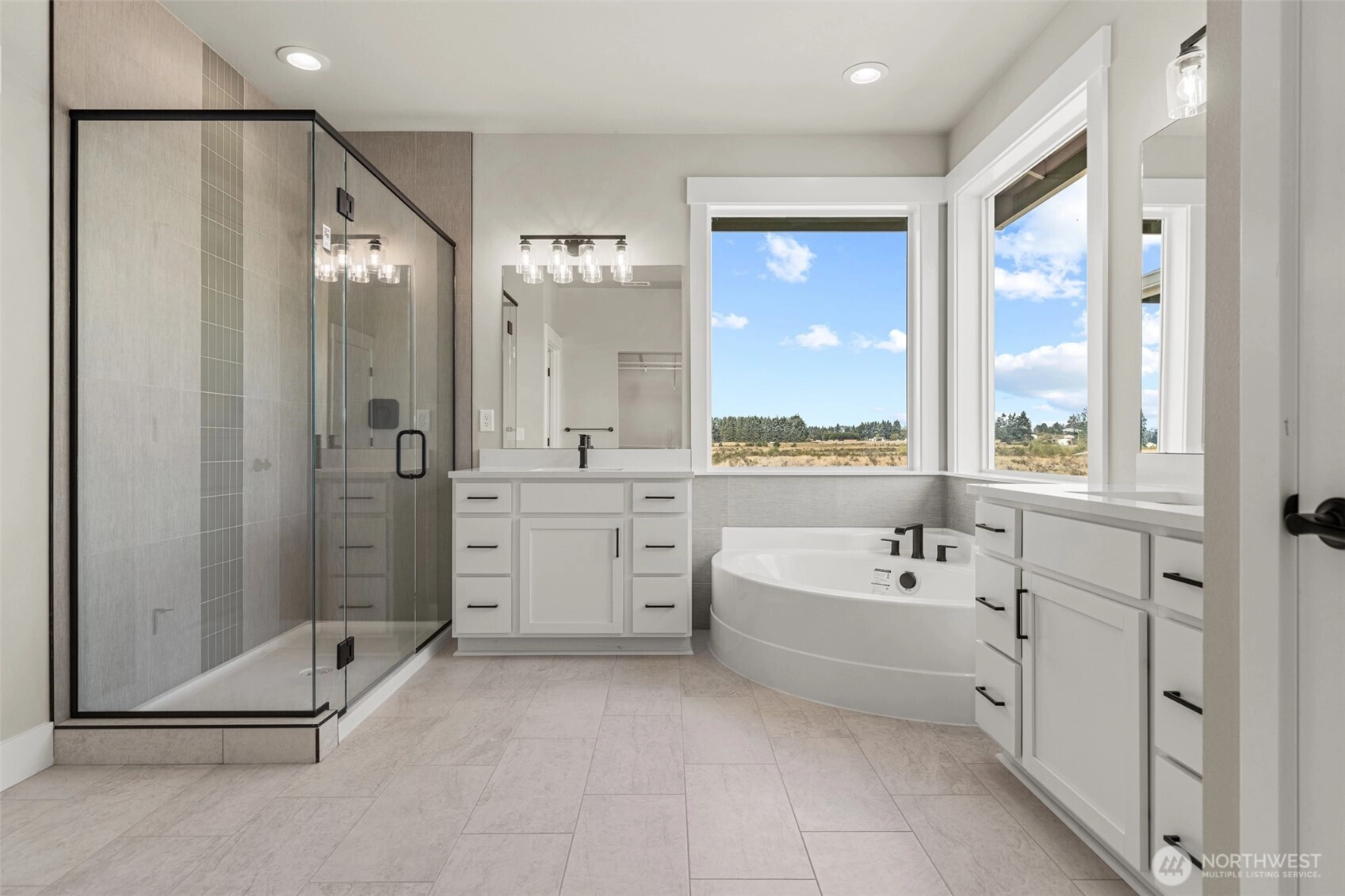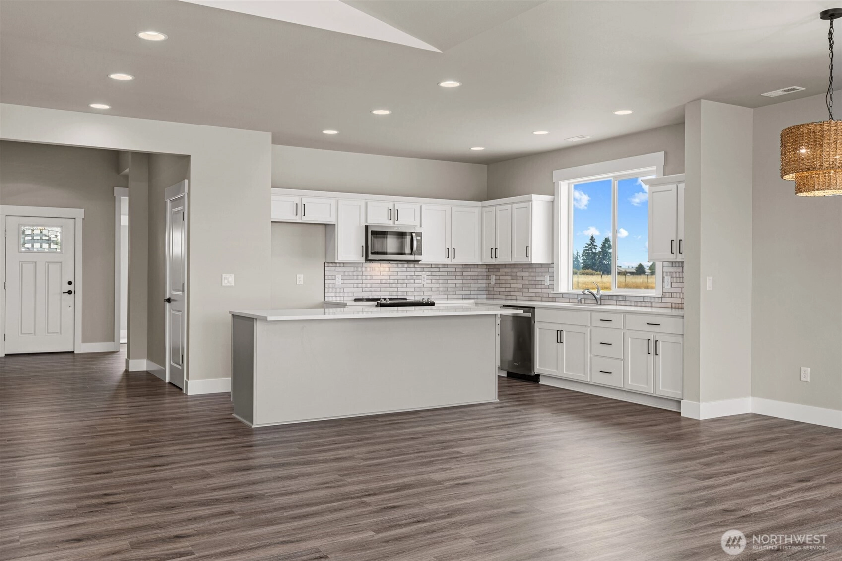 Brand new rambler on nearly 5 acres— MOVE IN READY! This open-concept home features vaulted ceilings, durable LVP flooring, and a sleek linear fireplace. The chef’s kitchen offers quartz countertops, stainless appliances, a spacious island, ample cabinetry, and a walk-in pantry. Dining area opens to a covered outdoor living space. French doors lead to a luxurious primary suite with a 5-piece bath, oversized tile shower, soaking tub, and walk-in closet. Complete with a 3-car fully insulated garage, energy-efficient heat pump with A/C, and high-end finishes throughout—perfect for entertaining, working from home, or simply relaxing.