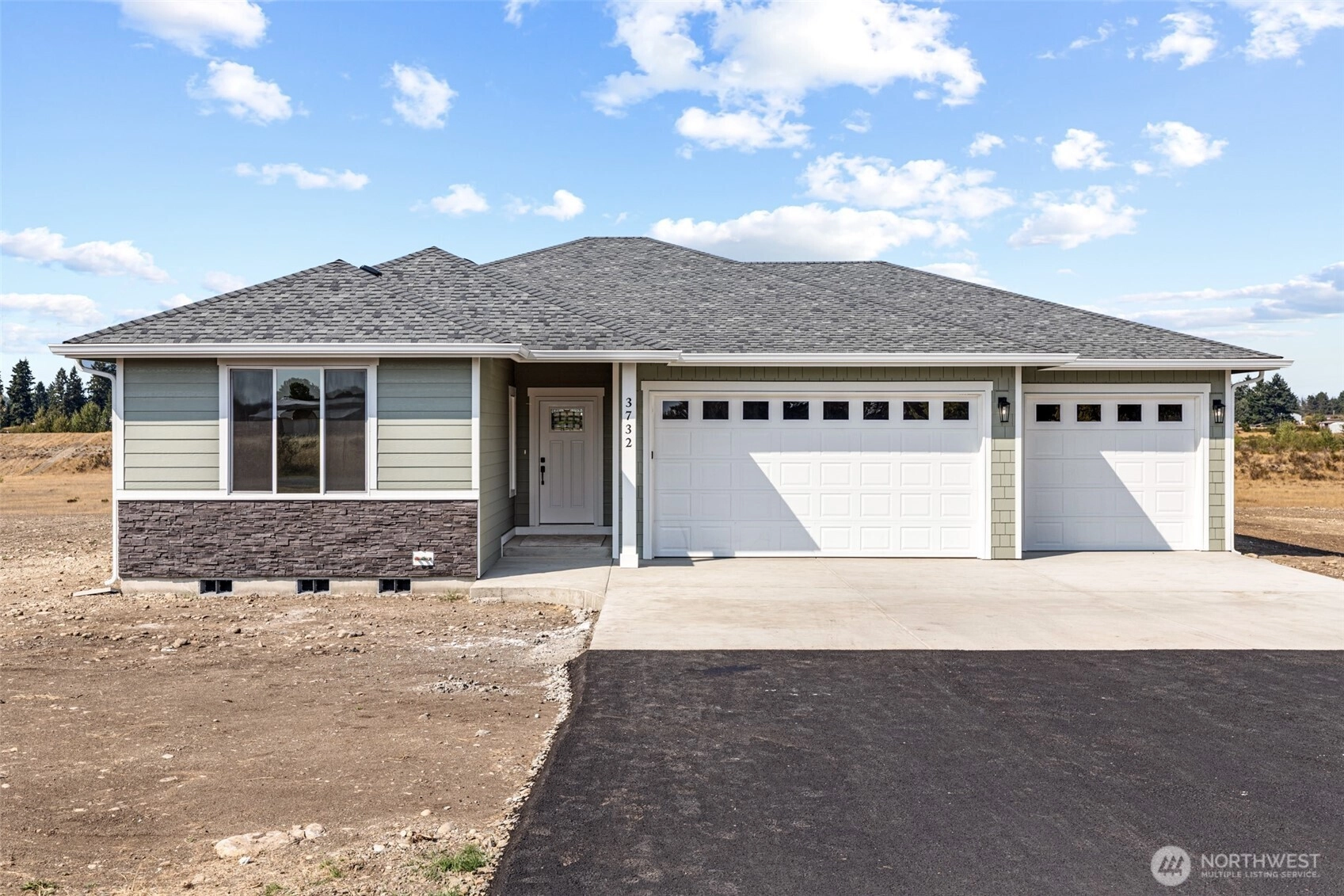 Move in Ready, Fabulous Brand New Tenino Rambler situated on nearly 5 acres surrounded by beautiful pastureland, horses, peace & tranquility plus Mt. Rainier & territorial views. Open concept floor plan, vaulted ceilings, durable LVP flooring & a sleek linear fireplace. Impressive designer Chef’s kitchen w/quartz countertops, stainless appliances, a spacious island, ample cabinetry & walk-in pantry. The light & bright dining area opens to a covered outdoor living space. French doors lead to a luxurious primary suite w/5-piece bath, oversized tile shower, soaking tub & walk-in closet. 3-car fully insulated garage, energy-efficient heat pump w/A/C & high-end finishes throughout—perfect for entertaining, working from home or simply relaxing.